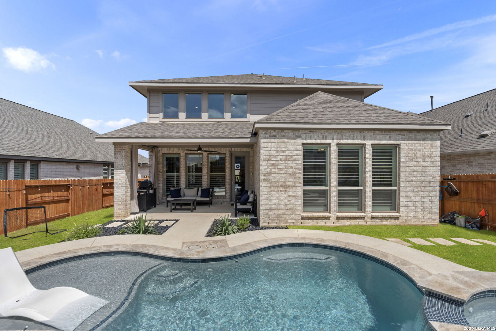 Spectacular Home located in the Veramendi community of New Braunfels, this beautifully designed 4-bedroom, 3.5-bath home offers the perfect blend of comfort, functionality, and resort-style living in one of the area's most desirable neighborhoods with top-rated schools, a playground, walking trails, parks, community pool and a vibrant recreation center just moments away. This isn't just a home its a lifestyle!! This thoughtfully designed floor plan features a spacious primary suite downstairs along with a private guest suite with its own bathroom and dedicated study-ideal for multigenerational living, working from home, or hosting visitors with ease. Loads of extras and upgrades including: Water Softener, reverse osmosis system, gas cooking. Escape the stress in the relaxing primary bath with large soaking tub and separate walk in shower. Upstairs, two additional bedrooms and a large game room create the perfect retreat for family, friends, and guests! At the heart of the home is a stunning gourmet kitchen featuring an oversized island, abundant counter space, and an open-concept layout that flows seamlessly into the living and dining areas-perfect for entertaining or everyday living. Step outside to your private backyard oasis complete with an in-ground pool and relaxing spa, making this home the ultimate escape for cooling off during warm Texas summers and enjoying year-round outdoor living. With its flexible layout, elegant entertaining spaces, and resort-style backyard, this home truly offers all-inclusive living in one of New Braunfels' most desirable communities- Veramendi!! Perry Homes 10 year builder warranty is transferrable to new owners. Open House April 3rd & 4th 1-3pm.