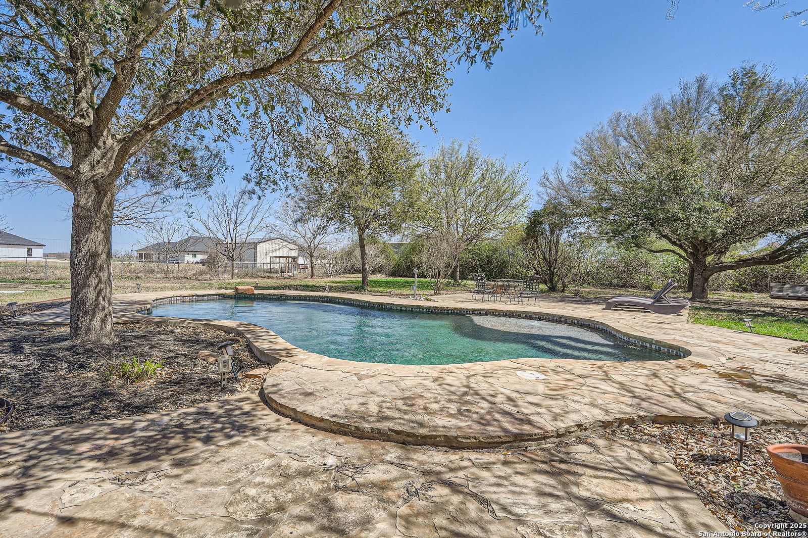 Don't miss your opportunity to own this gorgeous home on the outskirts of the historic city of Castroville, TX! Pride of ownership shows inside and out on this meticulously kept and move-in ready home. This stunning home sits on nearly an acre of land and is filled with mature trees giving the home lots of privacy. The backyard is perfect for relaxing and entertaining your friends/family with a gorgeous outdoor living area and the sparkling swimming pool. Enjoy the cool Texas nights on your screened-in porch or under the custom-built gazebo. Full RV Hookups (water, electric, sewer). This beautiful open concept home has too many upgrades to list but some major ones include all new siding, windows and HVAC system. The flex room can be used as an office or media room. Enjoy country living at its finest with the conveniences of the city less than 15 minutes away. Located in the highly sought after Medina Valley Independent School District. Come check out this little slice of paradise soon because it will not last long!!!