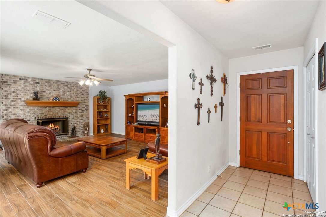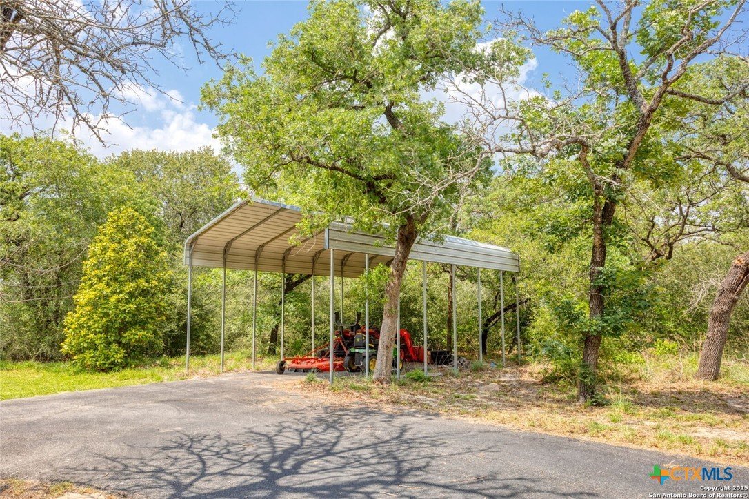 Come Discover this Beautifully Wooded Country Haven: 10 Acres, 2,640 square foot Brick Home, Pool, 50'x30' Workshop, Private Water Well! Conveniently located 20 minutes to the amenities of Seguin, under 1 hour to San Antonio, and just over 1 hour to Austin. Mature trees shade the acreage, and offer pleasant views throughout this rural retreat. A gated entry welcomes you, and the heavy asphalt paved driveway + circular drive + parking area allow for excellent access ... and play space for young ones! Whether you're looking for your own private oasis or the perfect place to entertain, this home is designed to host your lifestyle. With a Refreshing Pool as the centerpiece, you'll appreciate the generous living & dining spaces and comfortable bedrooms. Abundant storage is afforded in the substantial utility room w/sink, and walk-in master closet - and don't miss the great built-in desk in the breakfast/kitchen area! The expansive living room features a brick fireplace, and wood-tile flooring brings beauty to both the living room & family room. Imagine the possibilities for the 50'x30' Workshop/Outbuilding on slab w/electric + 30'x12' attached carport! Additional 10 acres next door is also available.