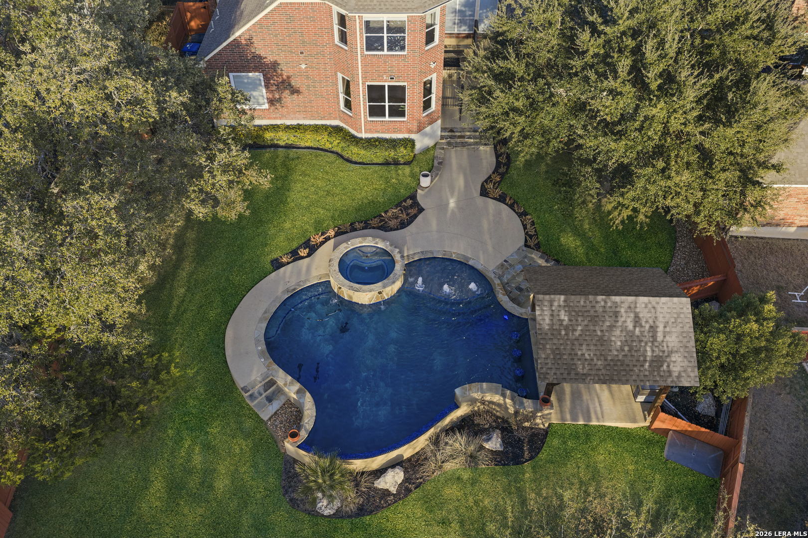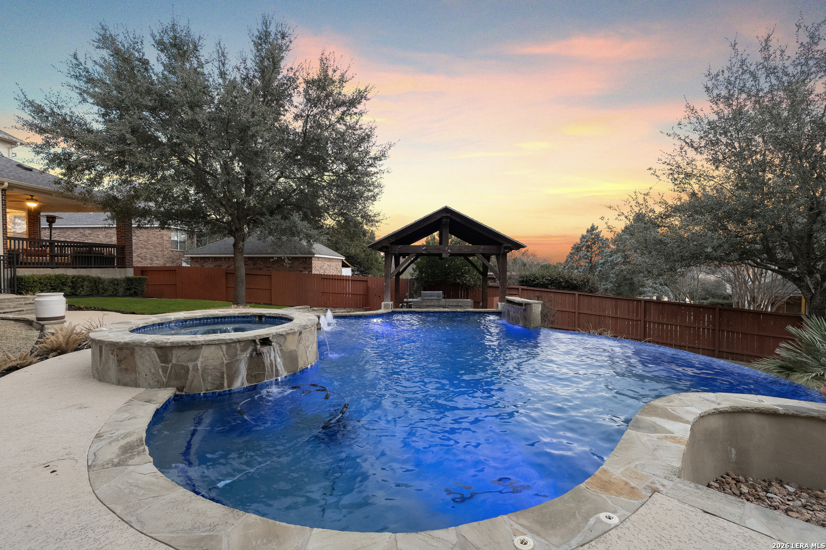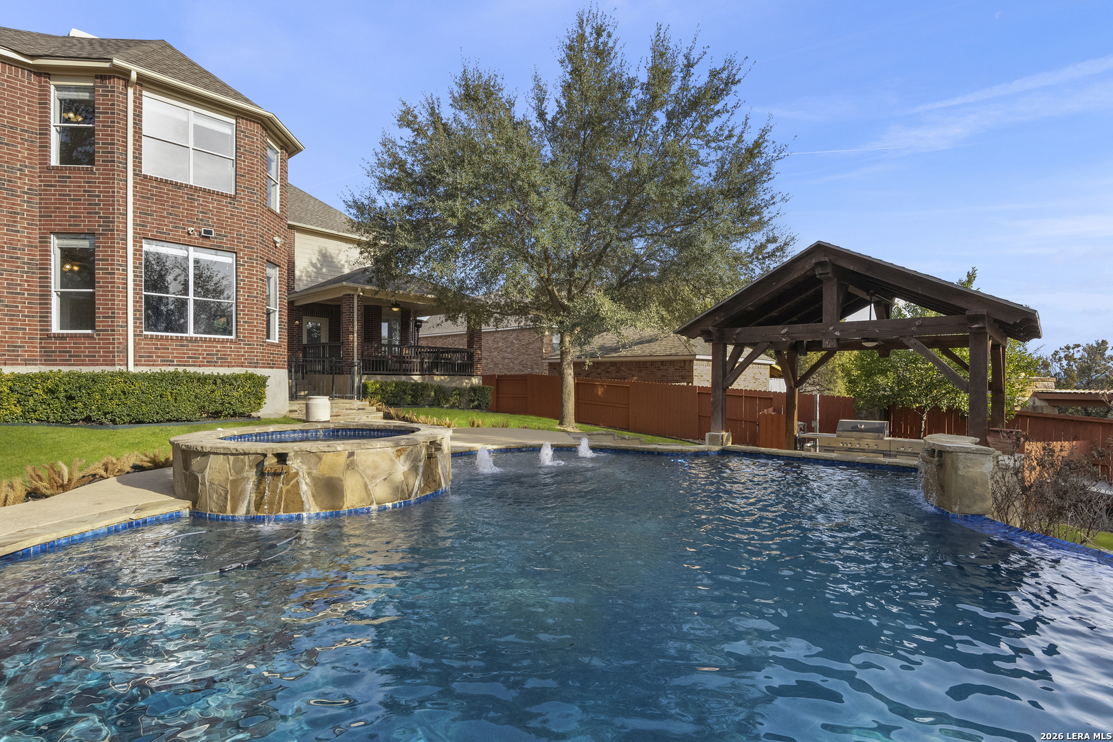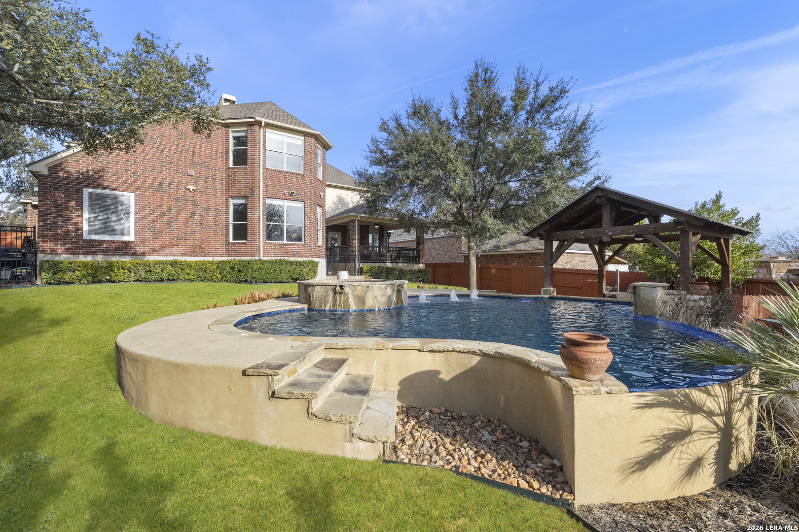 OPEN HOUSE SATURDAY FEB 7, 12PM-2PM. Set within the gated Enclave at Vineyard, this expansive 4,578 sq ft home offers grand scale, thoughtful updates, and a resort style backyard with pool on a 0.32 acre lot. A dramatic foyer with a double sided staircase welcomes guests, with a formal dining room on one side and a private study on the other. Fresh interior paint throughout enhances the home's move in ready appeal. The updated kitchen overlooks the main living area, where a fireplace and soaring two story ceilings create an open, light filled space ideal for everyday living and entertaining. The primary suite is conveniently located on the main level. Upstairs, four generously sized secondary bedrooms and a spacious game room provide flexible living space for family and guests. The backyard is designed for outdoor enjoyment, featuring a covered patio, fire pit, pavilion, and a beautiful pool. An oversized 2.5 car garage is complemented by two additional covered parking spaces, while the attic layout offers potential for future finish out and added square footage of approx 360 sq ft. Home features newer systems including HVACs replaced in 2021 and 2025, water heaters 2025. Vineyard residents enjoy lively HOA events and a popular neighborhood swim team. Ideally located near Stone Oak conveniences with easy access to Loop 1604, just minutes from La Cantera, The Rim, and the Salado Creek Greenway trail system. Zoned to highly regarded NEISD schools, including Vineyard Ranch Elementary, Lopez Middle School, and Ronald Reagan High School. 18919 La Verita presents a rare opportunity to enjoy space, privacy, and community in one of North Central San Antonio's most sought-after neighborhoods.