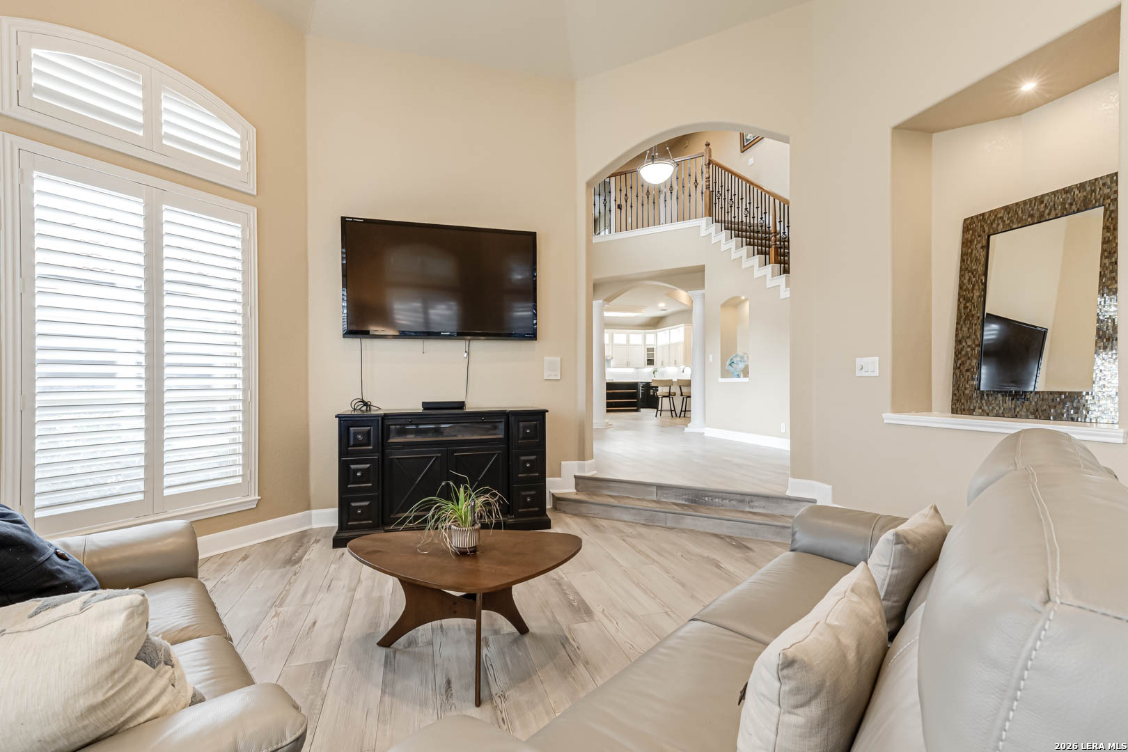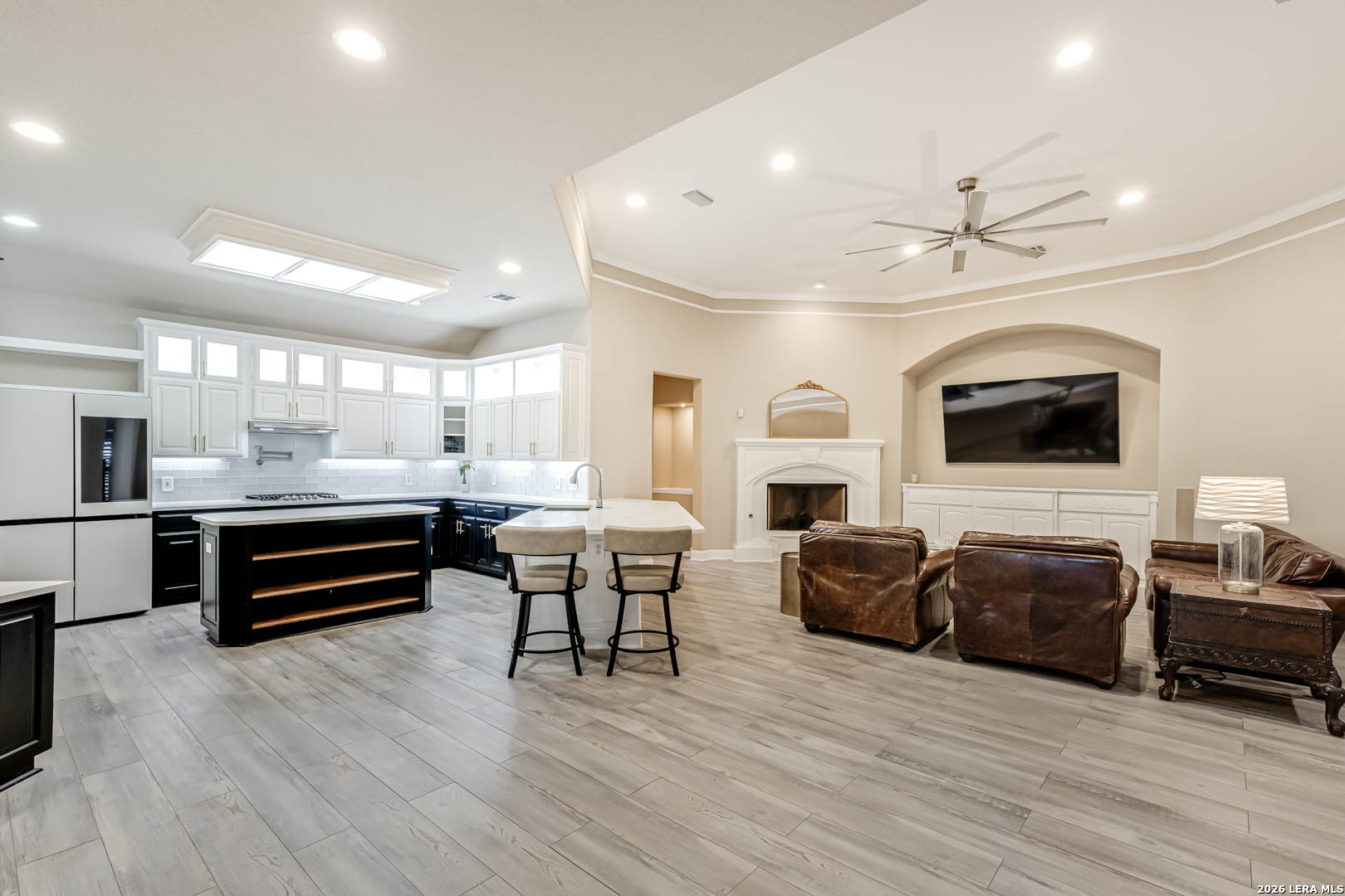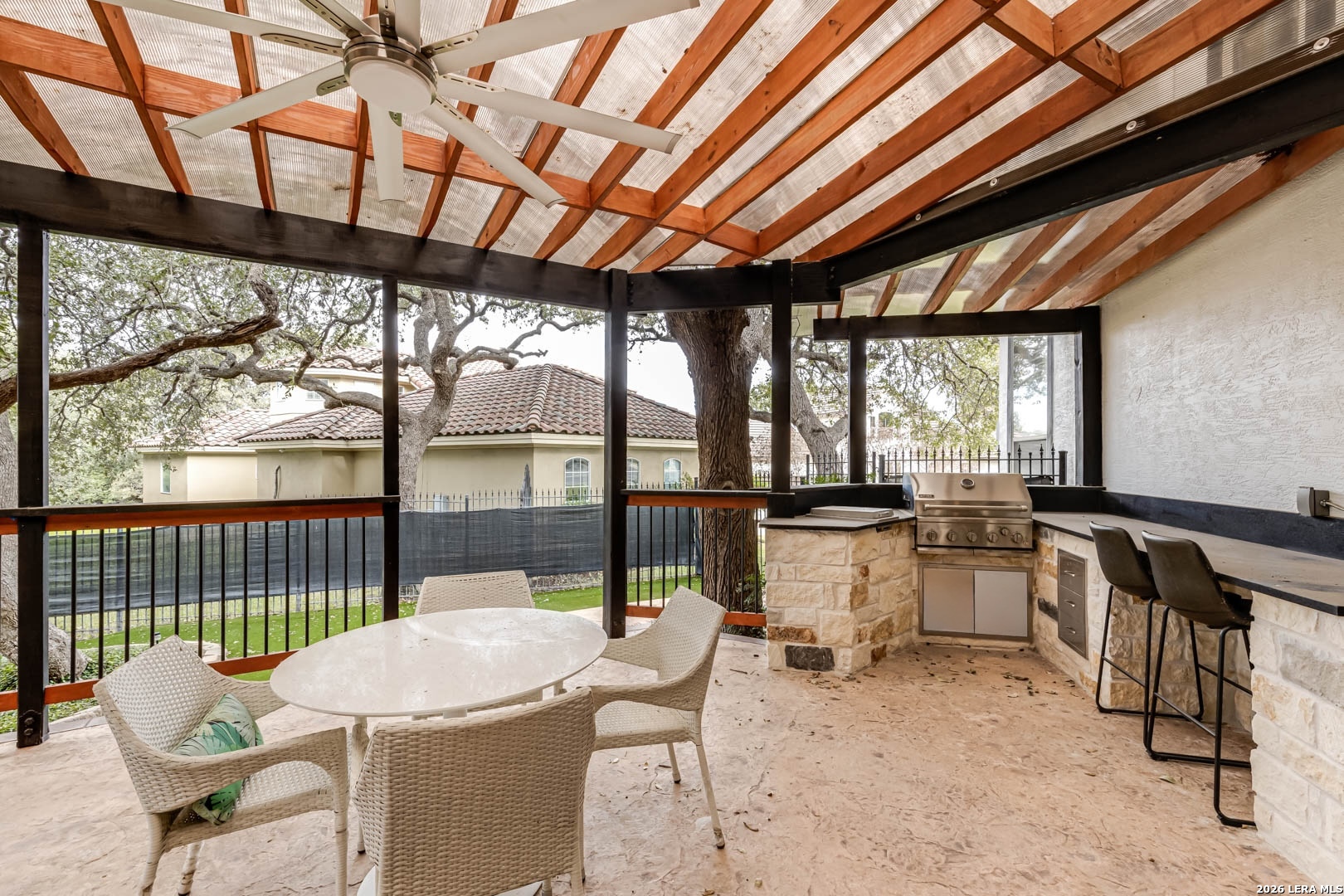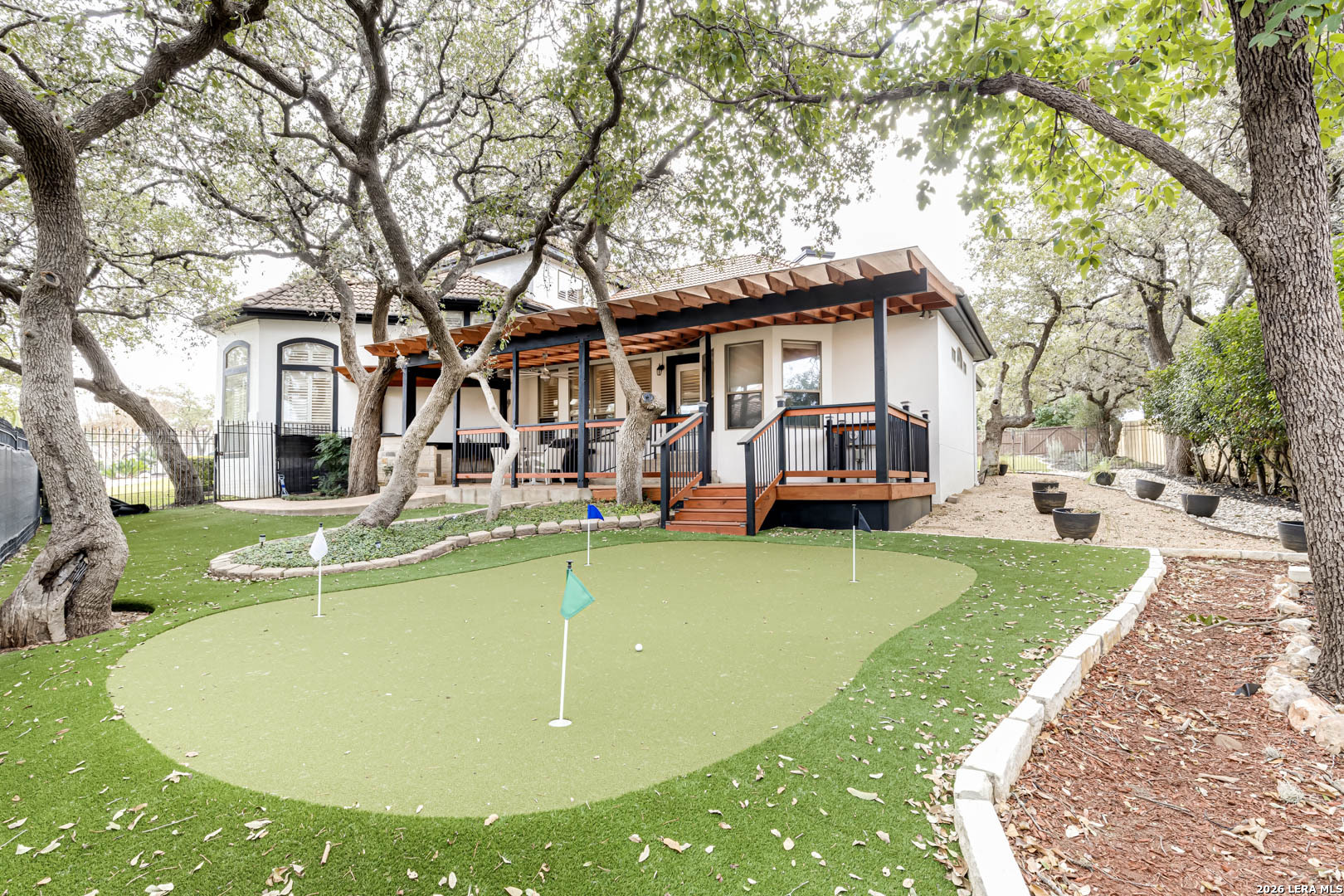 This custom-built Mediterranean-style home offers 3,155 square feet of well-designed living. Located on a cul-de-sac, with direct course access just a short golf cart ride away, 18930 Calle Cierra is ready to be your next home. Step inside to 20-foot ceilings, where you'll feel an immediate sense of openness, complemented by new flooring and fresh interior paint throughout the home. Nearly every surface has been refreshed, including new interior and exterior paint, new flooring throughout, updated kitchen countertops, back-lit custom cabinetry, new appliances, a newly added gas range, and modern hardware. The open concept living room features dramatic ceiling height and connects seamlessly to the kitchen and dining areas. The primary suite truly feels retreat-like, complete with a private seating area, new custom his-and-hers closets, dual vanities, and a separate soaking tub and walk-in shower. A flexible secondary living space provides versatility for an office, additional dining area, or multipurpose use. Outside, an extended, covered patio creates an ideal outdoor living space, fully equipped with a built-in kitchen, grill, and griddle, perfect for entertaining year-round. Designed for low-maintenance luxury, the property features xeriscaping in both the front and back yards. Additionally, a private putting green for at-home practice has recently been installed. A two-car garage with built-in shelving adds convenient storage Located minutes from major shopping, dining, and easy access to 1604, this home blends privacy, convenience, and resort-style living. Country club membership is optional, allowing you to enjoy the lifestyle as you please. You're invited to come check it out in person! Open House SATURDAY (01/31) from 12-3pm.