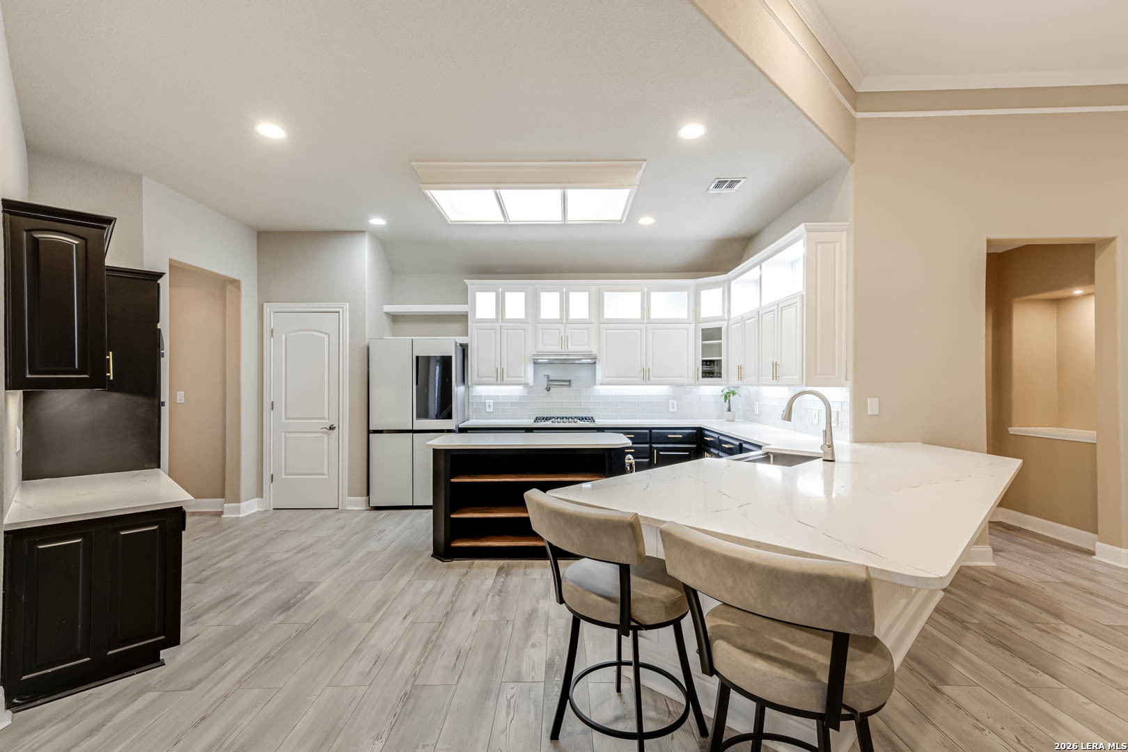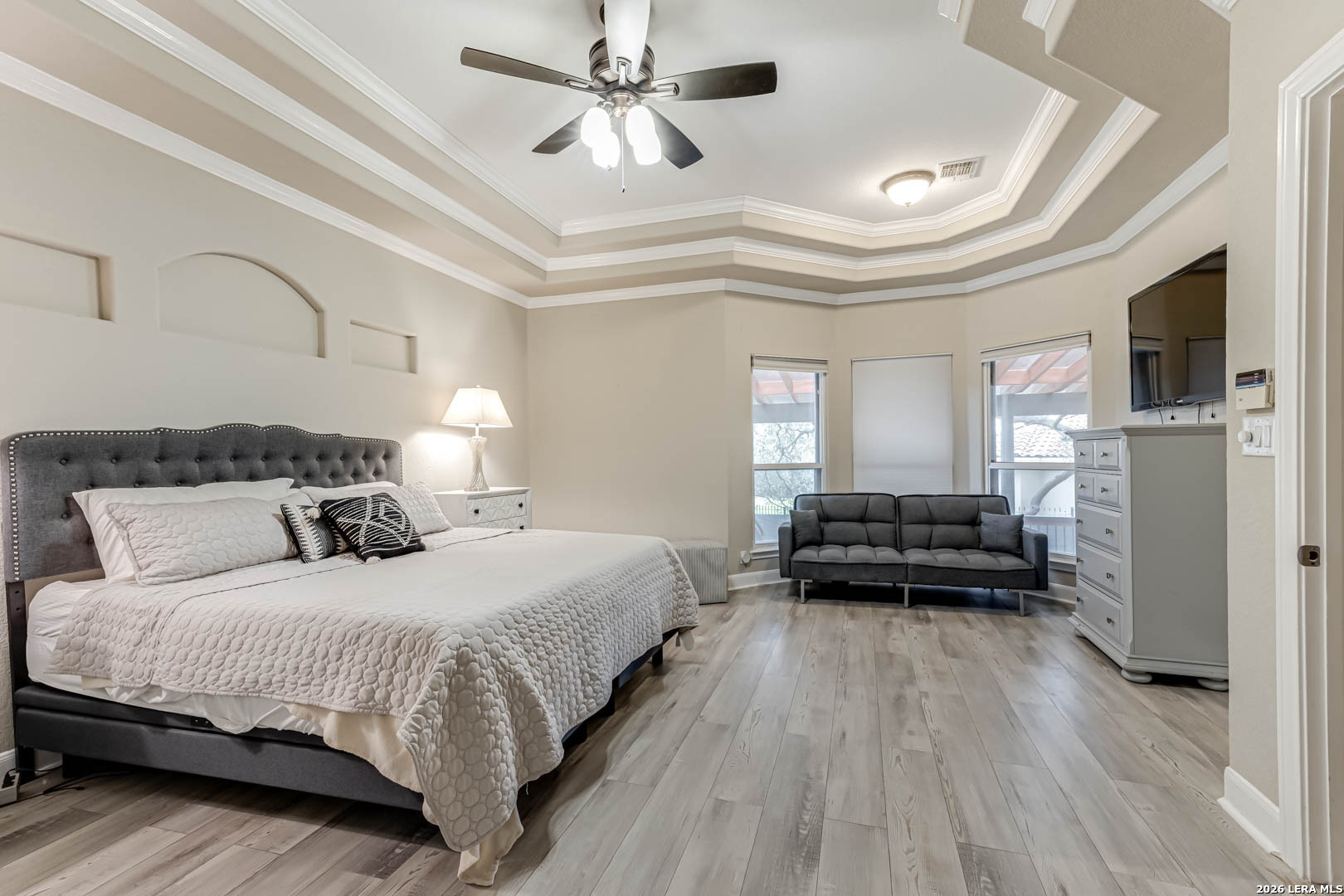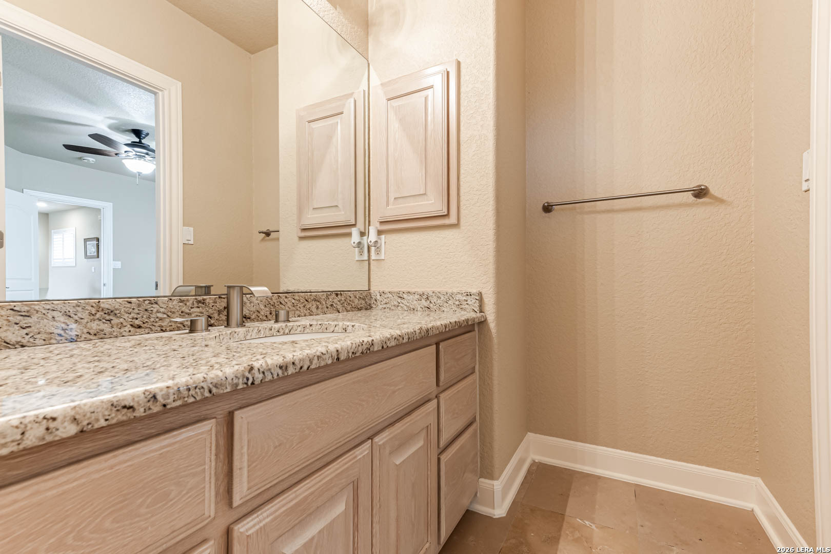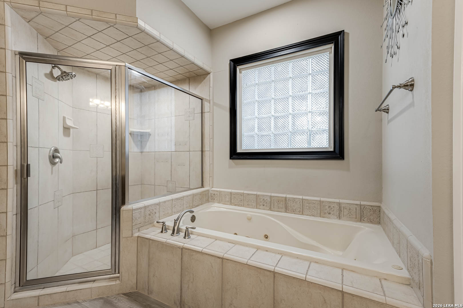 This custom-built Mediterranean-style home offers 3,155 square feet of well-designed living. Located on a cul-de-sac, with direct course access just a short golf cart ride away, 18930 Calle Cierra is ready to be your next home. Step inside to 20-foot ceilings, where you'll feel an immediate sense of openness, complemented by new flooring and fresh interior paint throughout the home. Nearly every surface has been refreshed, including new interior and exterior paint, new flooring throughout, updated kitchen countertops, back-lit custom cabinetry, new appliances, a newly added gas range, and modern hardware. The open concept living room features dramatic ceiling height and connects seamlessly to the kitchen and dining areas. The primary suite truly feels retreat-like, complete with a private seating area, new custom his-and-hers closets, dual vanities, and a separate soaking tub and walk-in shower. A flexible secondary living space provides versatility for an office, additional dining area, or multipurpose use. Outside, an extended, covered patio creates an ideal outdoor living space, fully equipped with a built-in kitchen, grill, and griddle, perfect for entertaining year-round. Designed for low-maintenance luxury, the property features xeriscaping in both the front and back yards. Additionally, a private putting green for at-home practice has recently been installed. A two-car garage with built-in shelving adds convenient storage Located minutes from major shopping, dining, and easy access to 1604, this home blends privacy, convenience, and resort-style living. Country club membership is optional, allowing you to enjoy the lifestyle as you please. You're invited to come check it out in person! Open House SATURDAY (01/31) from 12-3pm.