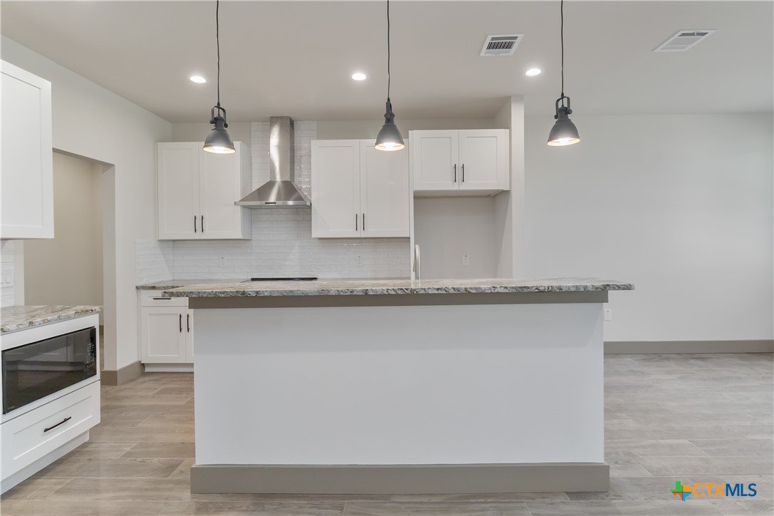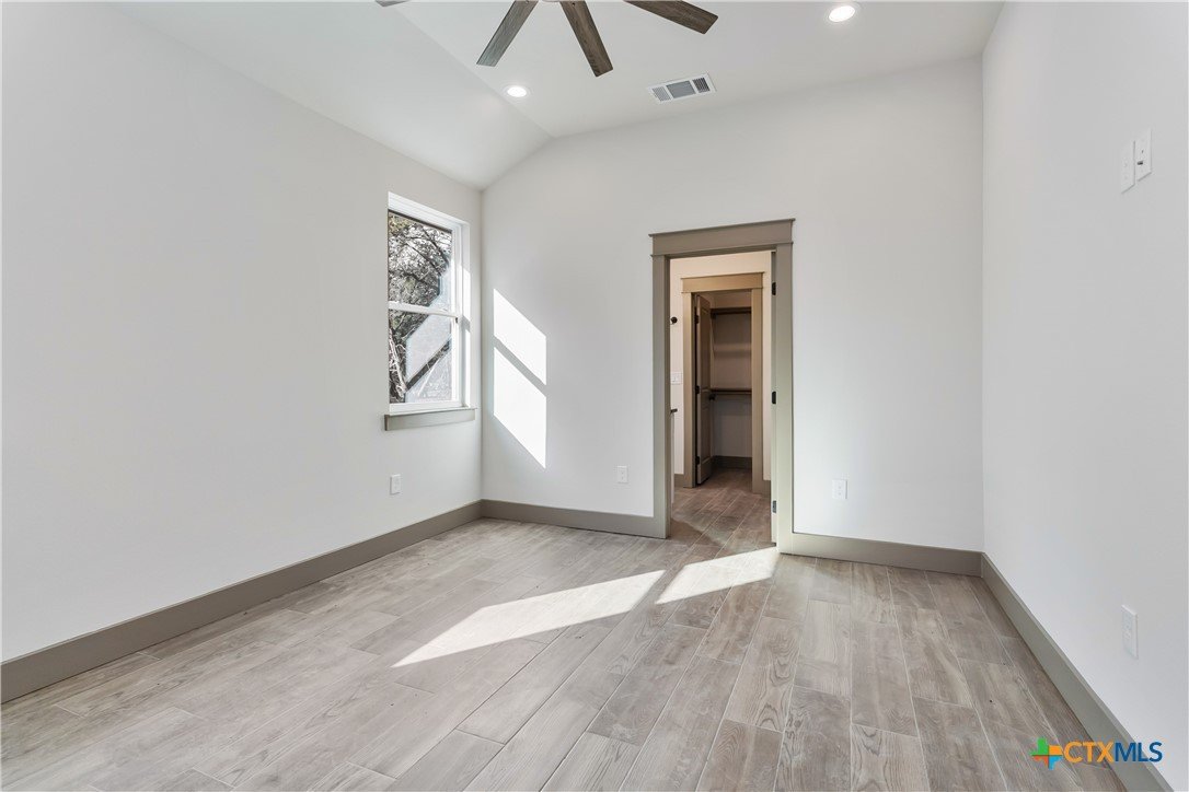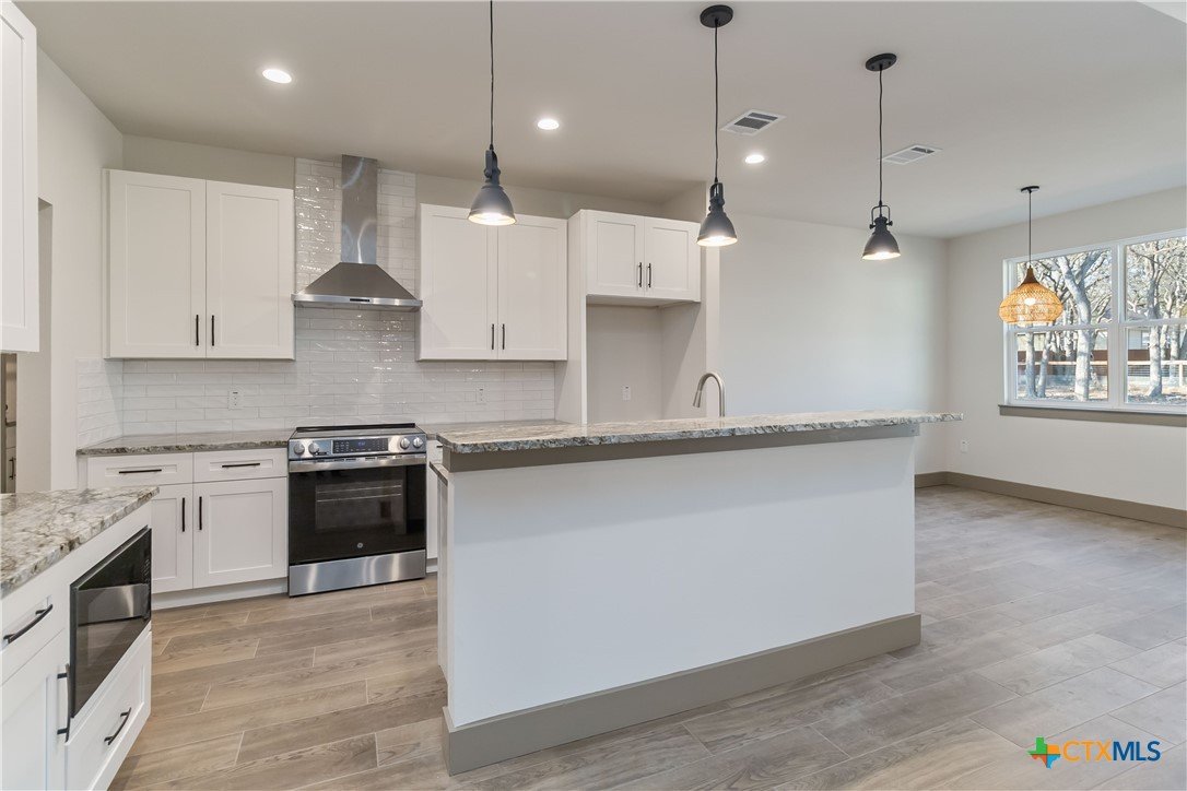 Quality craftsmanship meets Hill Country charm in this beautifully designed one-story home on Summertime Circle in Wimberley. Thoughtfully built with attention to detail, this home offers an open-concept layout anchored by a striking wood-burning fireplace with floor-to-ceiling stone accent. The kitchen blends function and style with a Viking vent hood, microwave built into the lower cabinetry, soft-close cabinets, granite countertops, and custom trim work throughout. A dedicated dining area flows seamlessly into the main living space, creating an ideal setup for both everyday living and entertaining. The private primary suite features a spacious walk-in closet with built-in shelving and a well-appointed ensuite bath complete with dual vanities, a custom-tiled walk-in shower, and frameless glass enclosure. Additional highlights include a well-equipped laundry room with extra cabinetry and granite countertop workspace, attached garage with opener, water softener loop, and quality finishes throughout the home. The covered back patio overlooks a spacious backyard, offering room to relax and enjoy the peaceful surroundings. The board-and-batten exterior and soft, natural color palette create a cohesive design that feels warm and earthy from the inside out. Located just minutes from Downtown Wimberley and within easy reach of San Marcos, Austin, and Canyon Lake, this home offers the serenity of a dark-sky community with the convenience of nearby amenities.