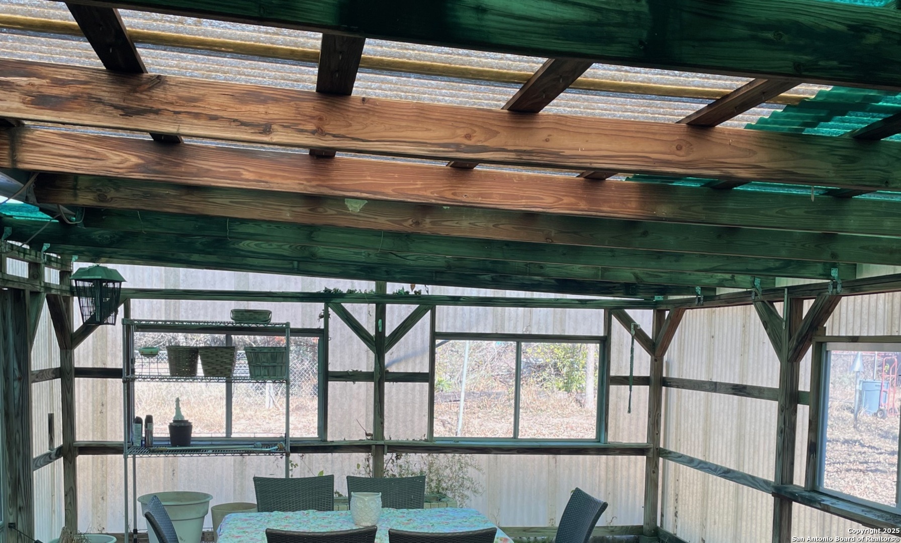 No HOA! Potential Commercial opportunity. Rare opportunity to own 9.81 unrestricted acres featuring two homes, ideal for multi-generational living, rental income, or a private retreat. The main residence is a charming 3-bedroom, 2-bath stone home offering two spacious living areas, a large utility room, and is truly move-in ready. Enjoy outdoor living on the 16' x 25' covered back porch, perfect for relaxing or entertaining. Recent upgrade includes a new AC system installed in 2023. Double-pane windows throughout. Property also features a 3,000-gallon concrete cistern with well house. Two car garage with additional ample parking and a circle drive. The acreage is well-equipped with a large 20' x 52' barn and a 36' x 36' workshop/outbuilding, providing ample space for equipment, hobbies, or livestock. In addition, the property includes a 2015 double-wide manufactured home with a spacious living area, a hall office nook, 3 bedrooms and 3 bathrooms, and a large covered deck, offering excellent flexibility and income potential. Peaceful country living with room to roam, yet endless possibilities-this is a must-see property!