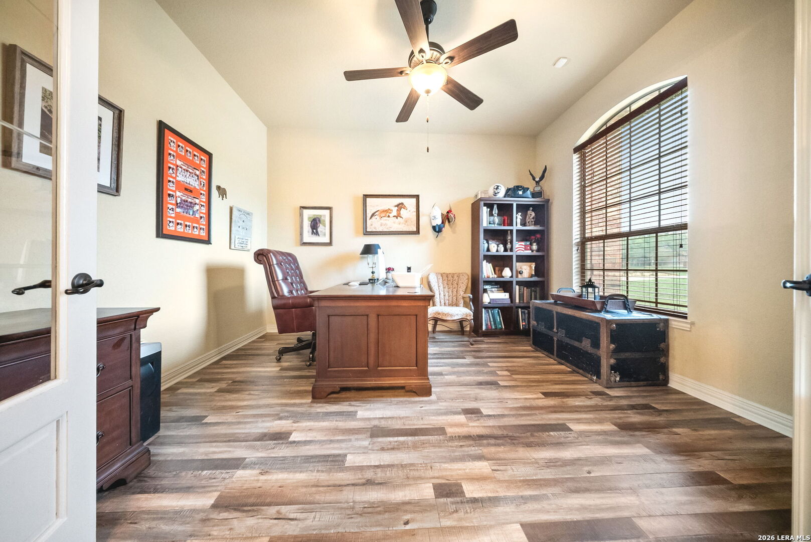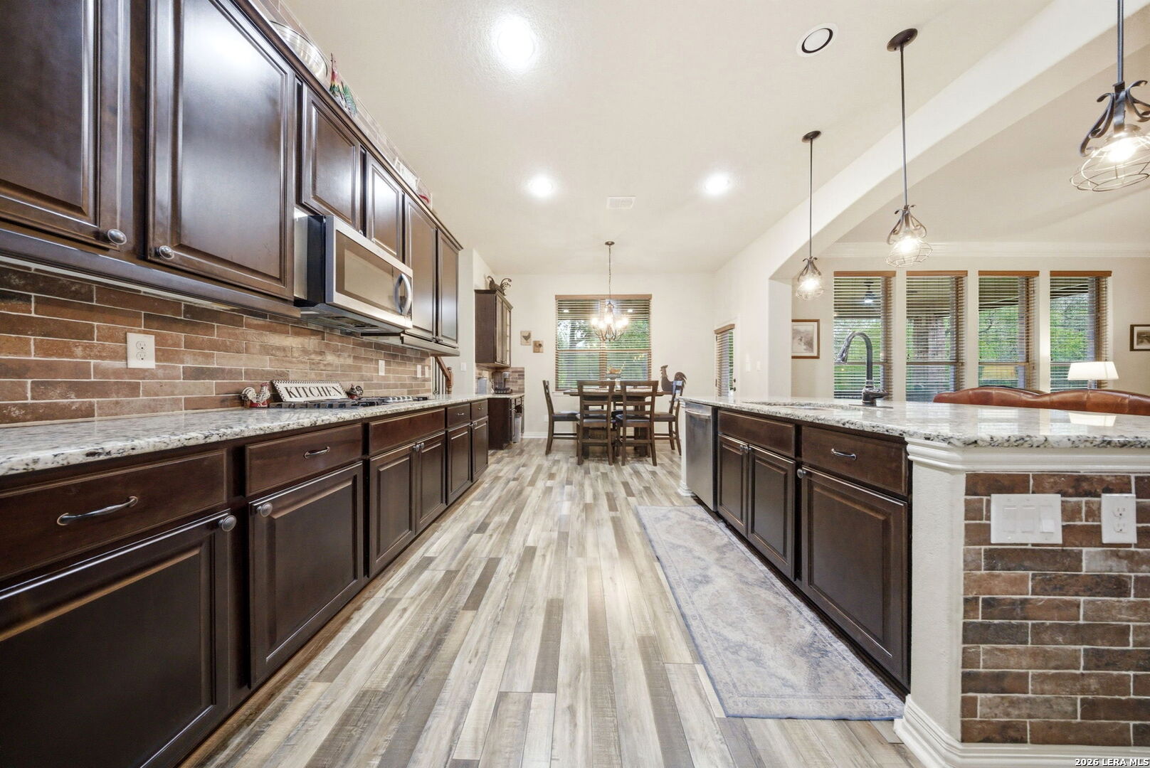 Situated on 1.22 acres, in one of Garden Ridge's most sought-after neighborhoods, this property offers the rare advantage of never having a neighbor to the right! Built in 2012 and meticulously maintained, the spaces include high ceilings, an open concept kitchen and living area, large primary suite with adjoining bath and walk in closet, three additional bedrooms, a dedicated office, media room and a well appointed bonus room complete with its own half bath and closet. The expansive covered patio is fully plumbed for a future outdoor kitchen with both gas and water connections already in place. The irrigation system and full surround gutters with LeafGuard protection offer low maintenance and more time to enjoy. Notable features include a brand new AC system installed in 2025, tankless gas hot water heater, water softener, and in-wall pest control system. Gas powered features included cooktop, fireplace, and heating. Whole-home central vacuum and aerobic septic system, which comes with a transferable maintenance contract, paid in full by the seller through 2027. Location, privacy and quality. This home has it all!