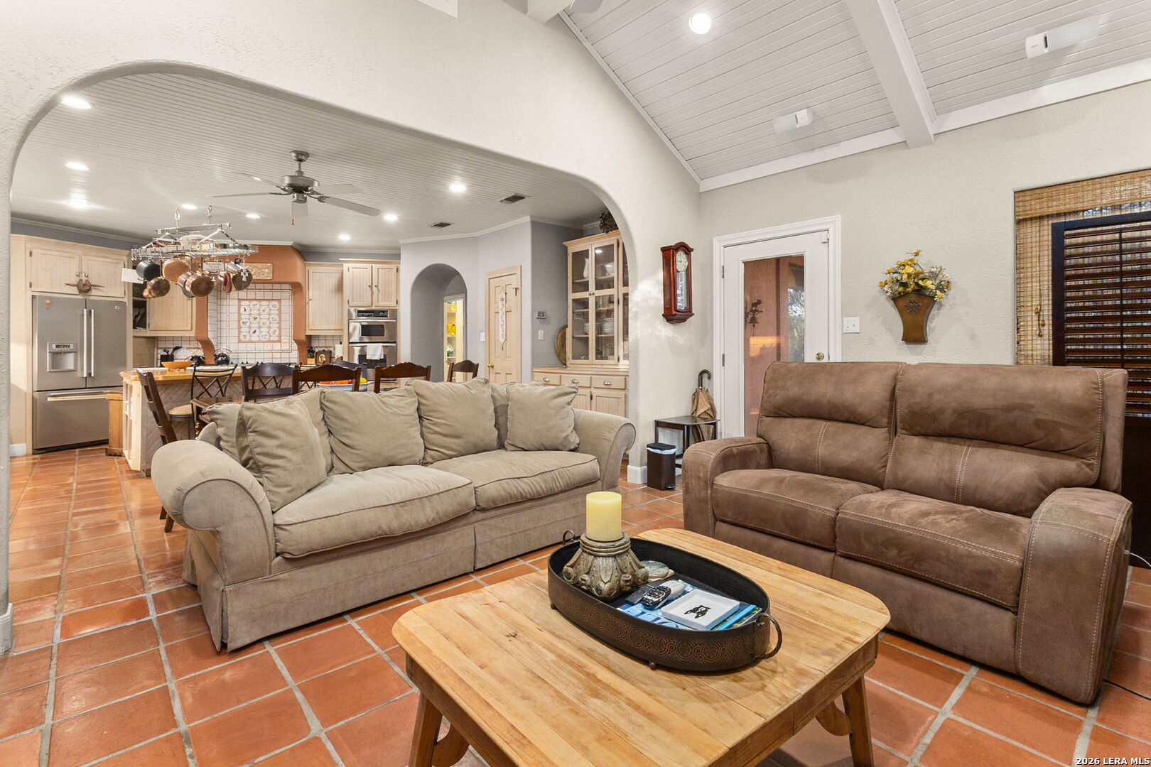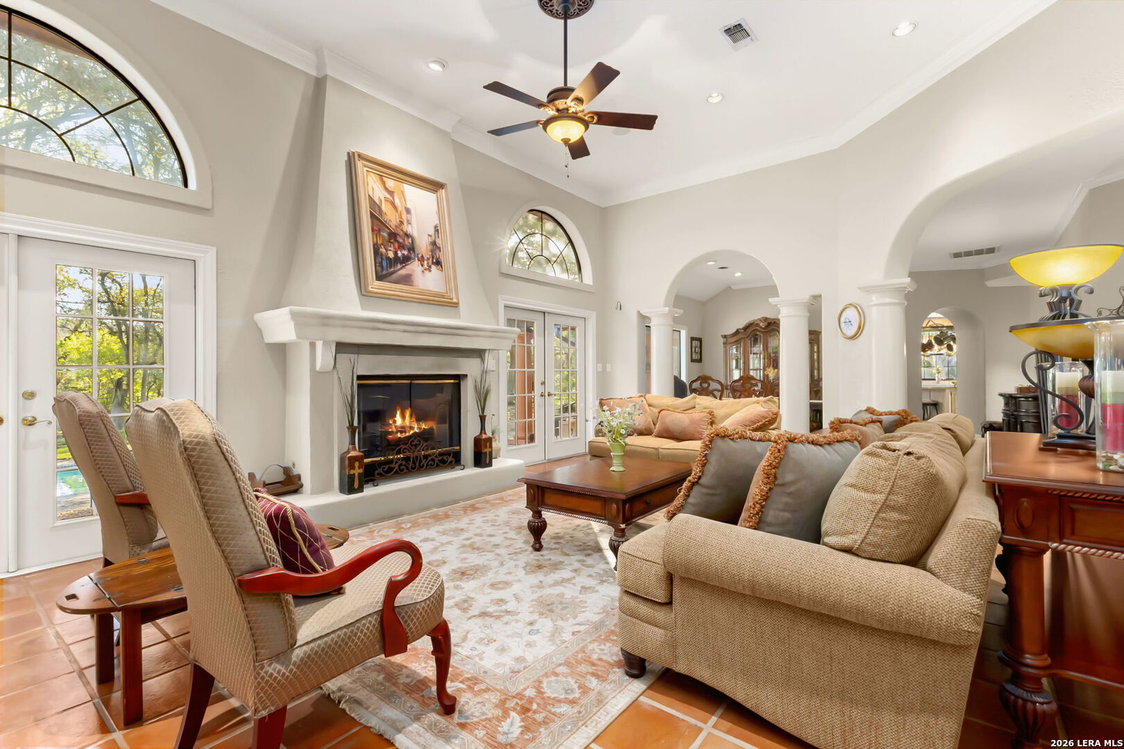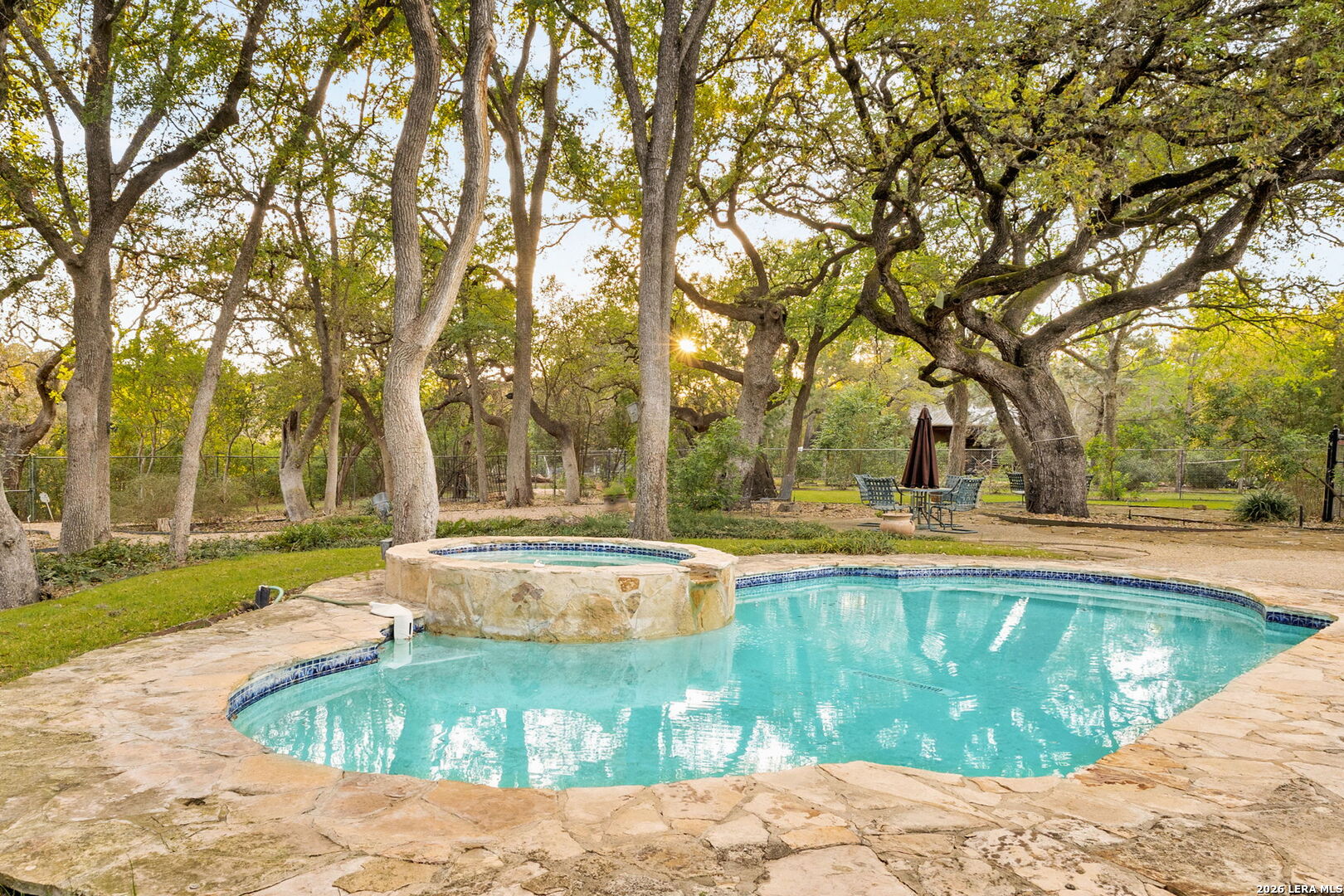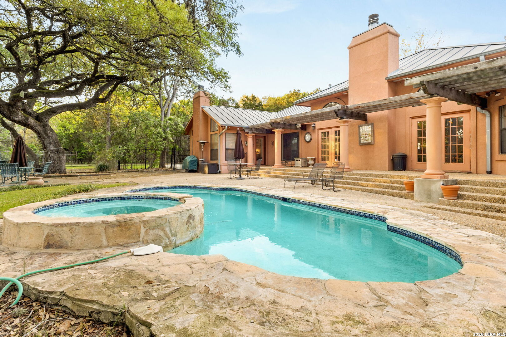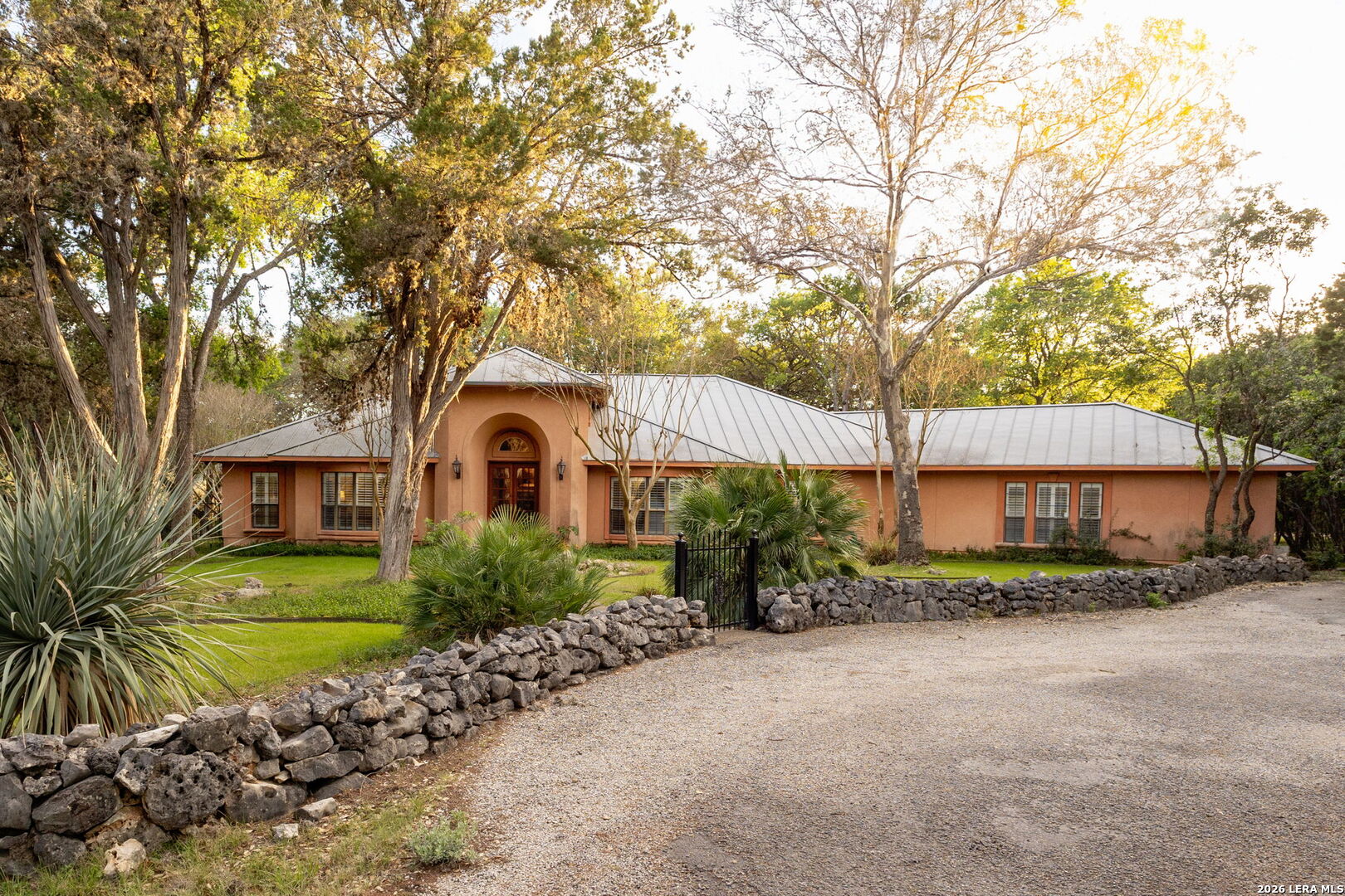 Set within the gated Riada community, this rare Guadalupe Riverfront estate offers an exceptional opportunity in one of New Braunfels' most exclusive neighborhoods. Privately positioned on over 7 acres, the property is framed by mature oak trees and thoughtfully elevated above the river, capturing both stunning natural surroundings and added privacy. The single-story home features an open-concept layout designed for effortless living and entertaining, with light-filled spaces that connect seamlessly to the outdoors. Enjoy a resort-style pool and spa overlooking the peaceful landscape, creating the perfect setting for relaxation or entertaining. With usable acreage, private river access, and a setting that feels worlds away-yet just minutes from town-this is a truly special Hill Country retreat.