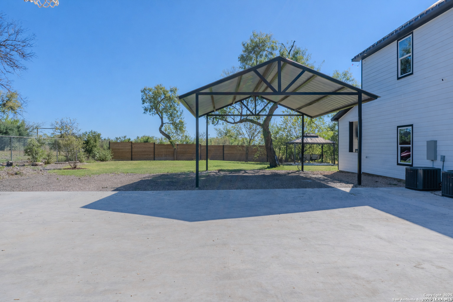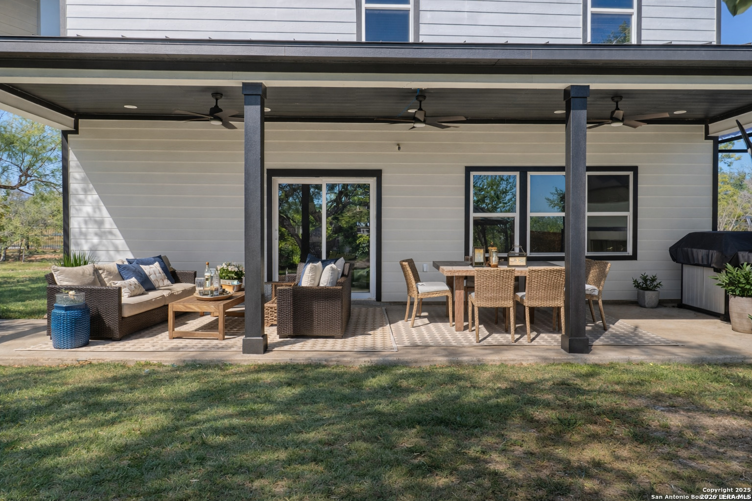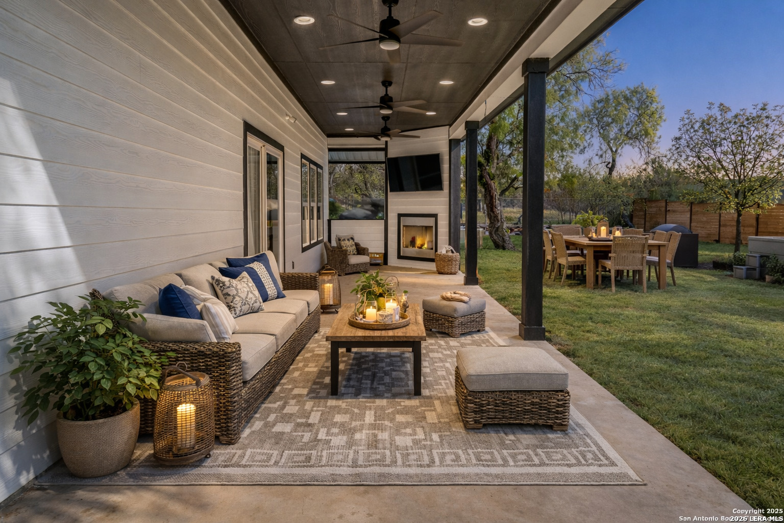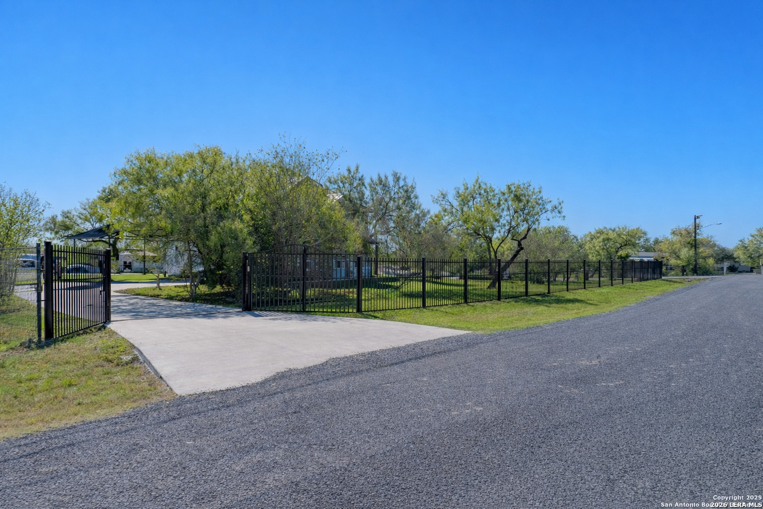 REFINED COUNTRY LIVING - SPACE, STYLE, AND SERENITY COMBINED. The morning breeze carries the quiet rhythm of country life, and beyond the electric gate, a modern Texas retreat welcomes your home. Built in 2022, over 3400 square feet, and set on nearly an acre at a prime Castroville corner, this custom two-story residence pairs sleek contemporary design with timeless Hill Country craftsmanship, crowned by a durable metal roof that enhances both beauty and longevity. A private drive and covered carport create a graceful approach, leading to a stone facade that exudes sophistication. Step inside to soaring 20-foot ceilings, sunlight that dances across porcelain tile floors, and an open-concept layout ideal for entertaining or everyday comfort. The chef's kitchen is a showpiece, black granite counters, custom white cabinetry, designer lighting, and a central island that anchors the space. The main-level primary suite provides an elegant retreat, while a versatile secondary bedroom nearby easily serves as an office, nursery, or guest quarters. Upstairs, four spacious bedrooms include a private suite for added flexibility. Outdoors, unwind beneath an expansive covered patio where morning coffee and Texas sunsets feel equally at home. Here, luxury meets serenity, only minutes from schools, dining, and the conveniences of San Antonio. Extras, sprinkle system front and back and above-ground pool. House located in POA community.