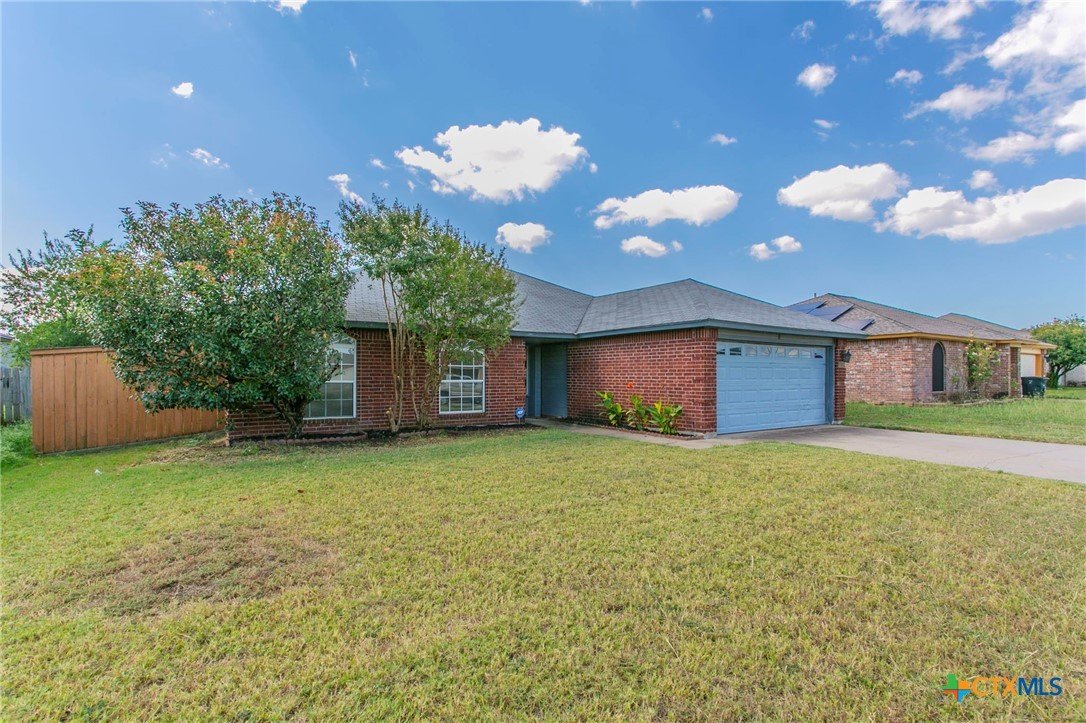 Welcome to this charming 4-bedroom, 2-bathroom home located just minutes from I-35, offering easy access to shopping, dining, and commuting routes. Inside, you'll find a spacious living room with a cozy fireplace that seamlessly flows into the dining area—perfect for entertaining or family gatherings. The kitchen features a pantry and a clear view of the dining space, creating an open and functional layout. The primary suite is thoughtfully positioned on the opposite side of the home from the secondary bedrooms, offering added privacy. The ensuite includes dual sinks, a walk-in closet, and a tub/shower combo. The secondary full bathroom also features a convenient tub/shower combo. Step outside to enjoy the covered back porch, a fenced backyard ideal for pets or play, and a handy storage shed for your tools or hobbies. Don’t miss the opportunity to make this well-located, family-friendly home yours! Discounted rate options and no lender fee future refinancing may be available for qualified buyers of this home.