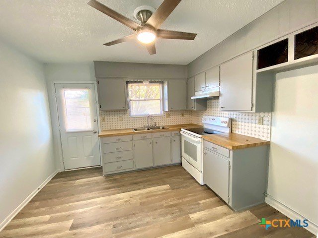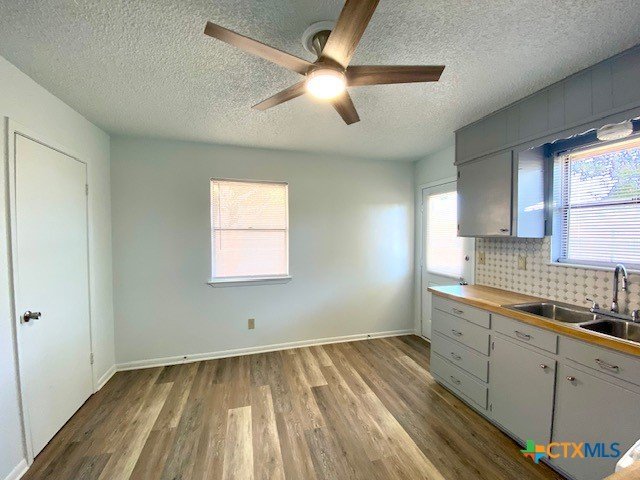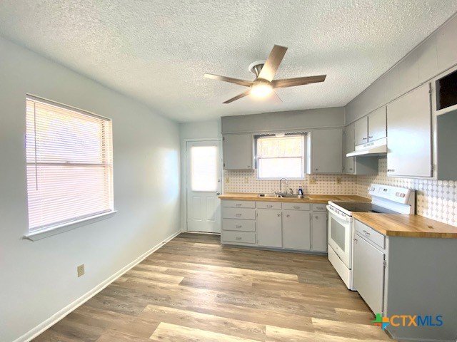 This lucrative investment opportunity is located in Copperas Cove within a quiet residential neighborhood near Martin Walker Elementary School. Each unit features 2 bedrooms, 1 bath, and an eat-in kitchen with pantry, and both boast an excellent rental history—Unit 1 was leased for 21 years before recently being vacated and remodeled, while Unit 2 has been tenant-occupied since 2017. Recent updates to Unit 1 include new vinyl flooring throughout, fresh neutral interior paint (including ceilings), four new ceiling fans with remotes, a new hallway light fixture, tiled kitchen backsplash, repainted cabinets, a replaced vent hood, and a fully renovated bathroom with a modern vanity, fog-free mirror, new fixtures, and hardware. Additional improvements include new seamless front gutters and a professionally inspected roof (March 2025, bill on file). Each side has a large, fenced backyard with its own storage shed and separate driveway for easy parking. The front-loader washer and dryer in Unit 1 convey, and a one-year home warranty is included for the new owner or investor.