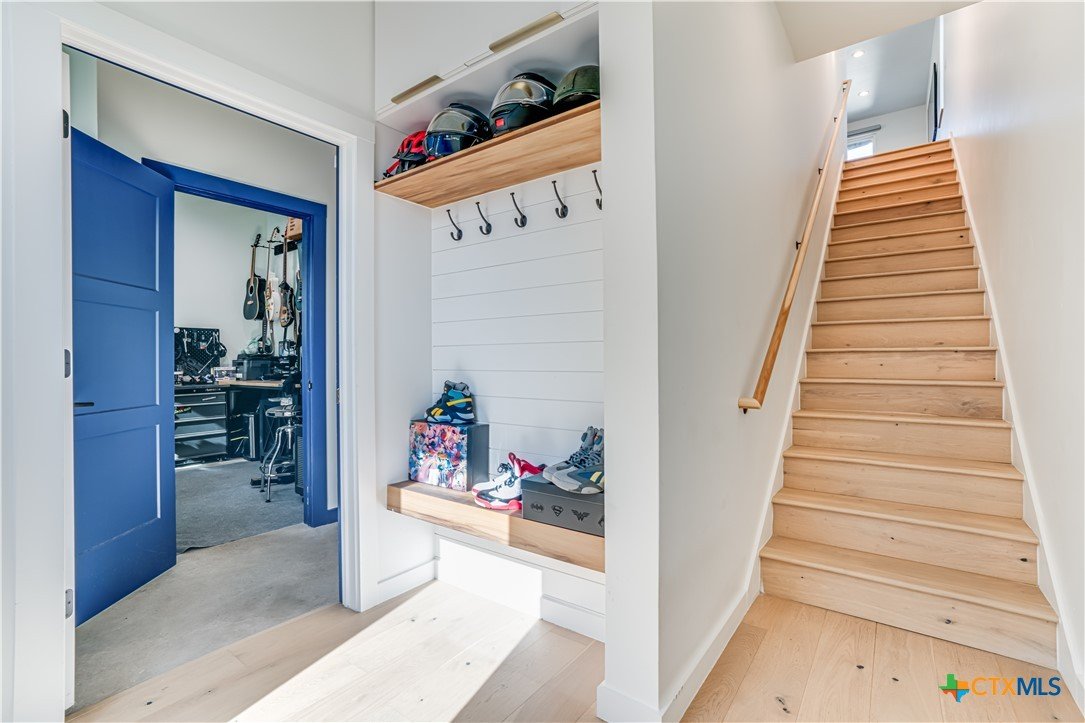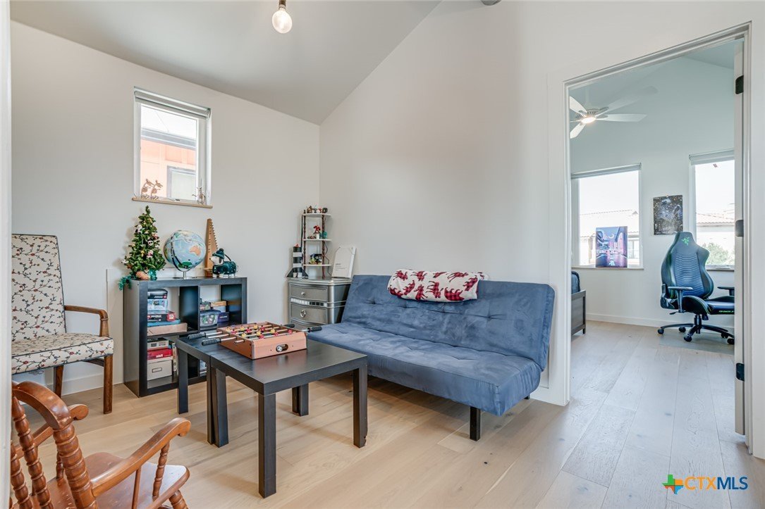 Exceptional Live-Work Townhome in Lively Lane! Discover the perfect blend of functionality and charm with this unique townhome, designed for modern urban living. Situated in the heart of San Marcos' newest and most exclusive community, Lively Lane, this property seamlessly combines commercial and residential spaces for unparalleled convenience. Commercial Space: The first floor features 1,017 square feet of fully finished commercial space, offering endless possibilities for your business or creative endeavors (currently leased at $1,500). Residential Comfort: The main living area boasts an open floor plan with a generous primary bedroom complete with an ensuite bath. Additional amenities include a dedicated laundry/utility room, ensuring practical living. Upper Level Retreat: Upstairs, enjoy a cozy reading nook and two additional bedrooms, each featuring vaulted ceilings and ample storage space. Outdoor Living: The unit also includes a private fenced rear garden, a large balcony, a custom-designed storage/bike shed, and a welcoming planter for those with a green thumb. Community & Sustainability: Embrace contemporary urban living in Lively Lane, a vibrant neighborhood known for its commitment to sustainability and a strong sense of community. This modern townhome offers a unique opportunity to live and work in a space crafted with quality and style. Experience the best of both worlds in this inviting and versatile townhome, perfectly situated in a dynamic and community-focused environment.