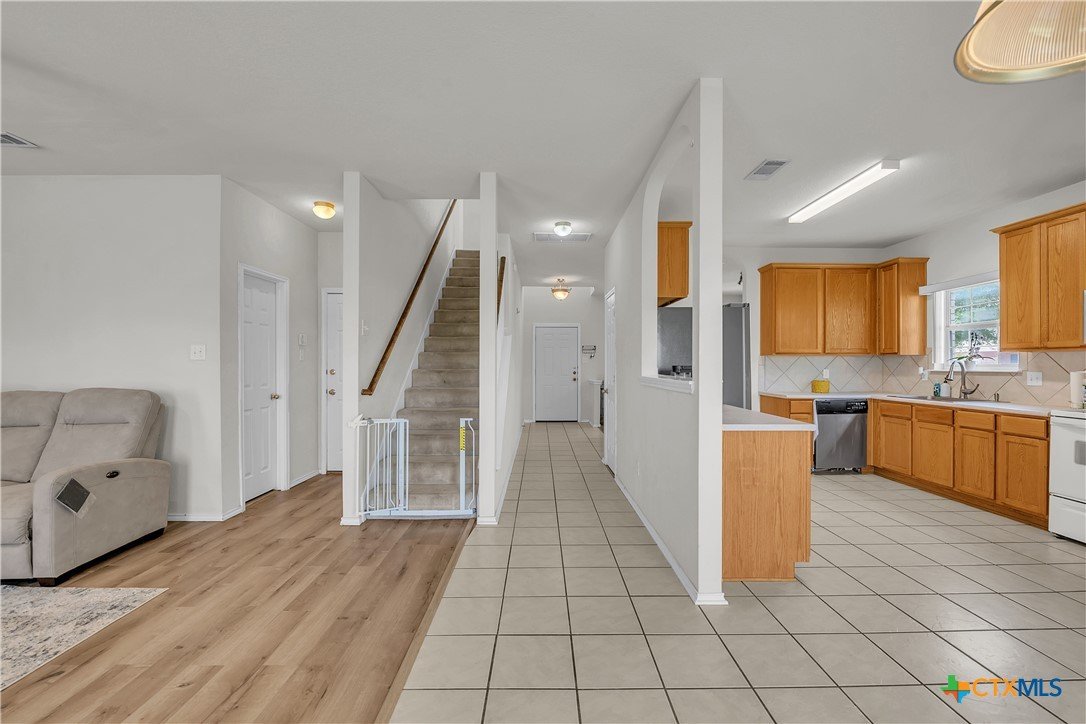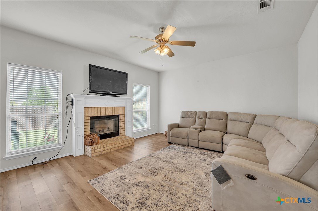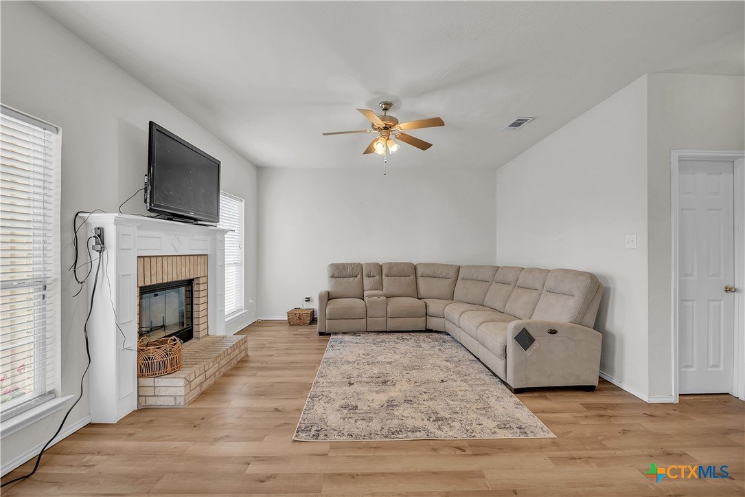 Welcome to your next home—just minutes from shopping, dining, and Fort Cavazos. This beautiful 3-bedroom, 2.5-bathroom home offers comfort, space, and convenience for everyday living. Step inside to find a bright and inviting layout featuring tile flooring in the kitchen, a cozy wood-burning fireplace, and luxury vinyl plank and carpet throughout the rest of the home. The heart of the home is a generously sized kitchen with ample counter space and a separate formal dining area—perfect for hosting or dinners. The massive primary suite is a true retreat, complete with a walk-in closet, double vanities, a relaxing soaking tub, and a separate shower. Two additional bedrooms provide plenty of space for guests, kids, or a home office. Enjoy outdoor living year-round on the covered patio, and enjoy the comfort of a fully fenced backyard with a wood privacy fence. Whether you're settling in long-term or looking for a move-in ready home with quick access to town and base, this one has it all.