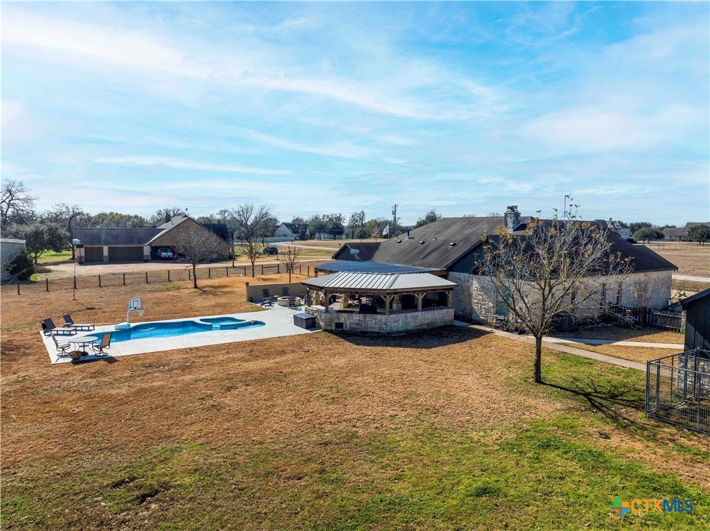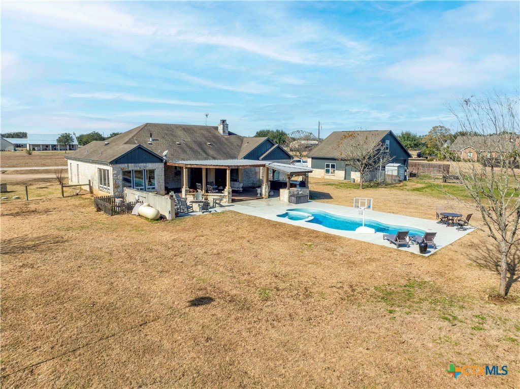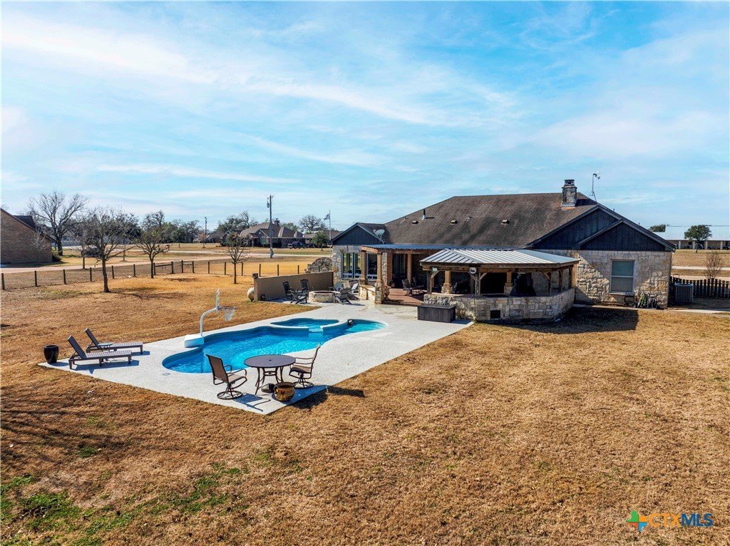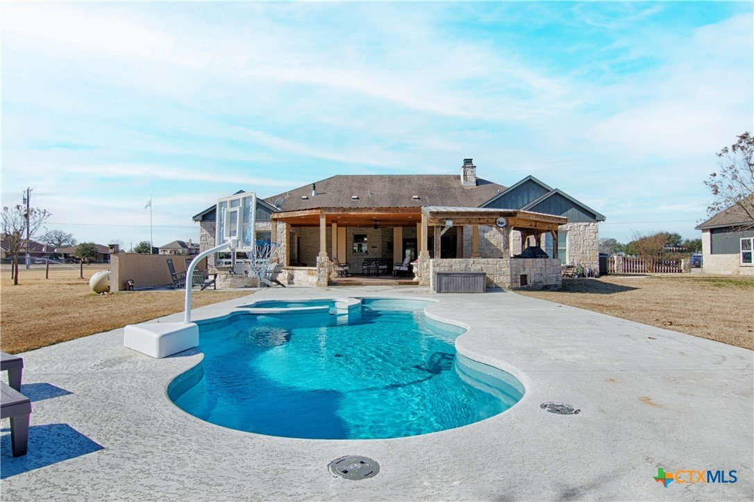 Discover luxury living in this remarkable 4-bedroom, 4-bathroom residence that seamlessly blends comfort with sophistication. The heart of the home features an elegant stone fireplace and a kitchen complete with stunning granite countertops throughout. Entertainment options abound with a sparkling in-ground pool, custom fire pit, and a gourmet outdoor kitchen complete with BBQ pit and smoker. The spacious three-car garage includes a separate apartment above, perfect for guests or rental potential. The primary suite offers a bonus space for ultimate flexibility. Relax on the covered porch while taking in the peaceful surroundings. This thoughtfully designed home provides the perfect balance of indoor comfort and outdoor living.