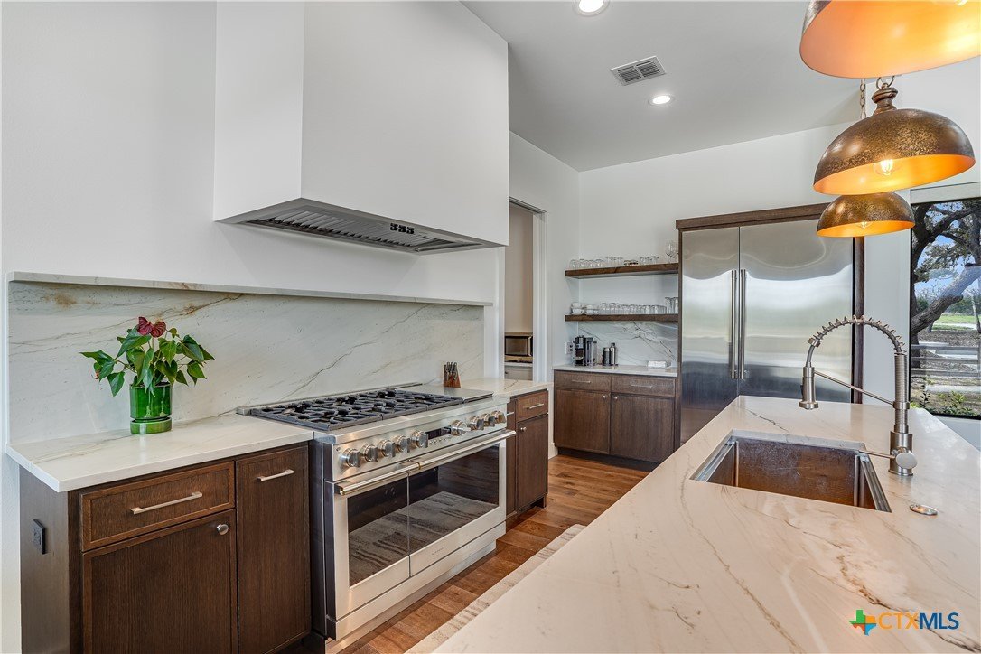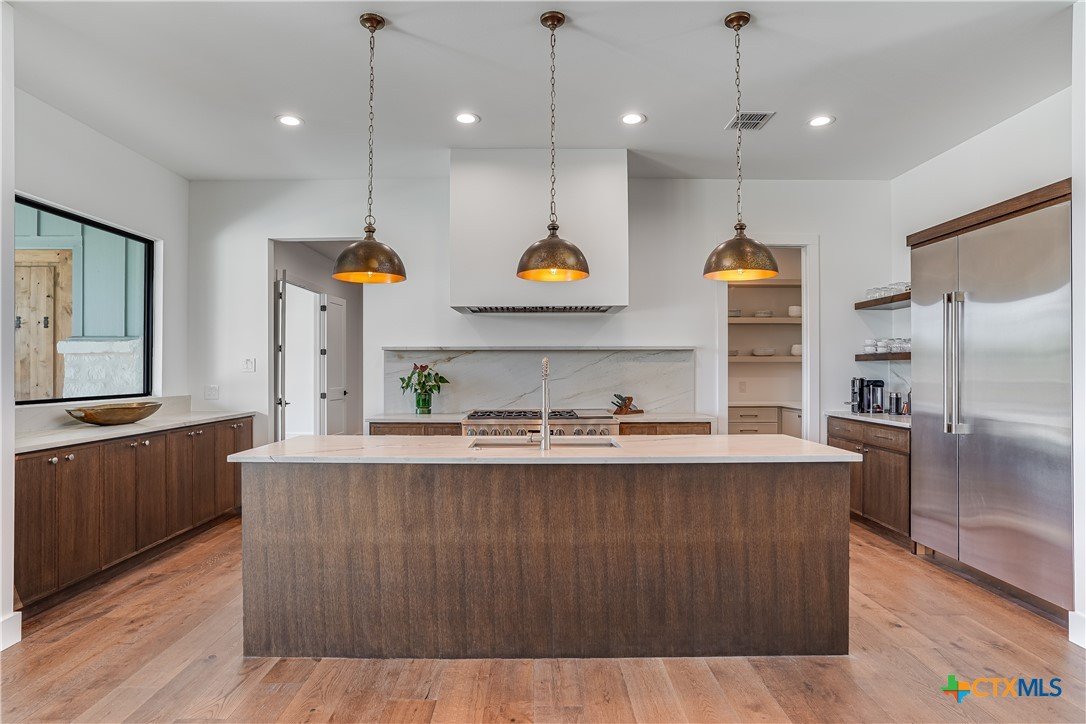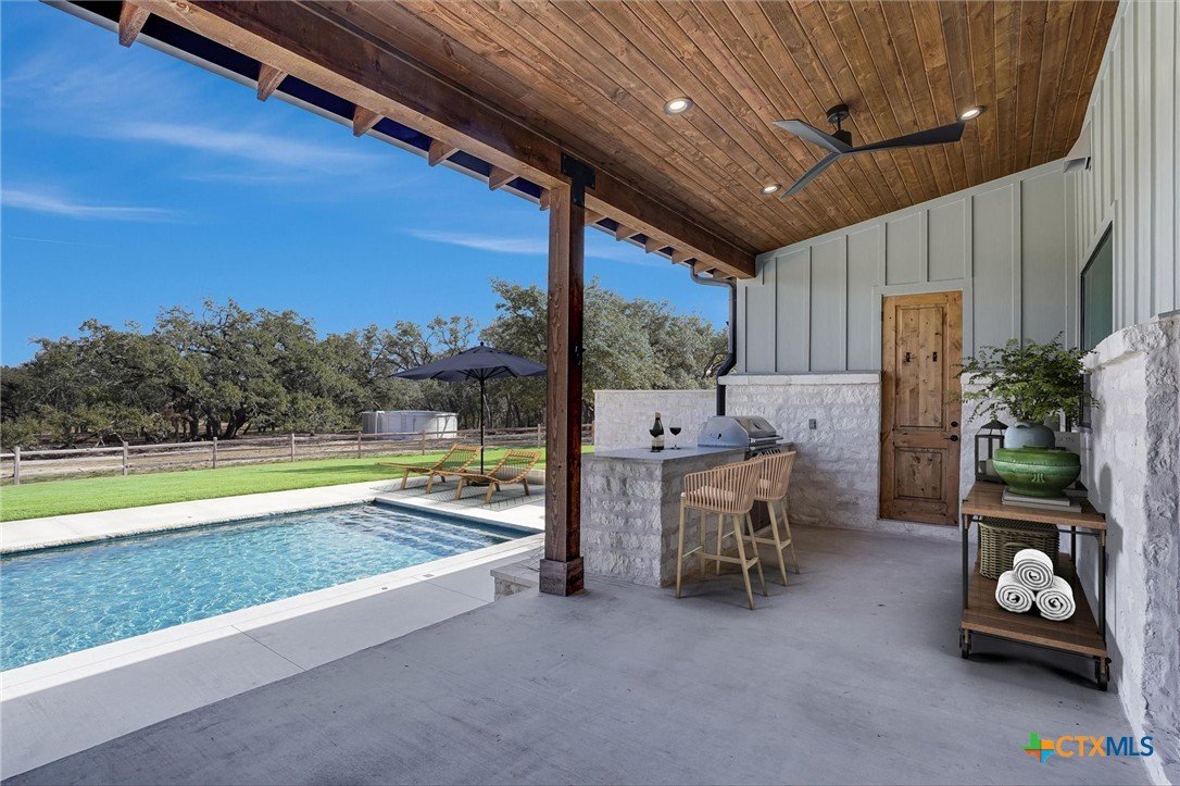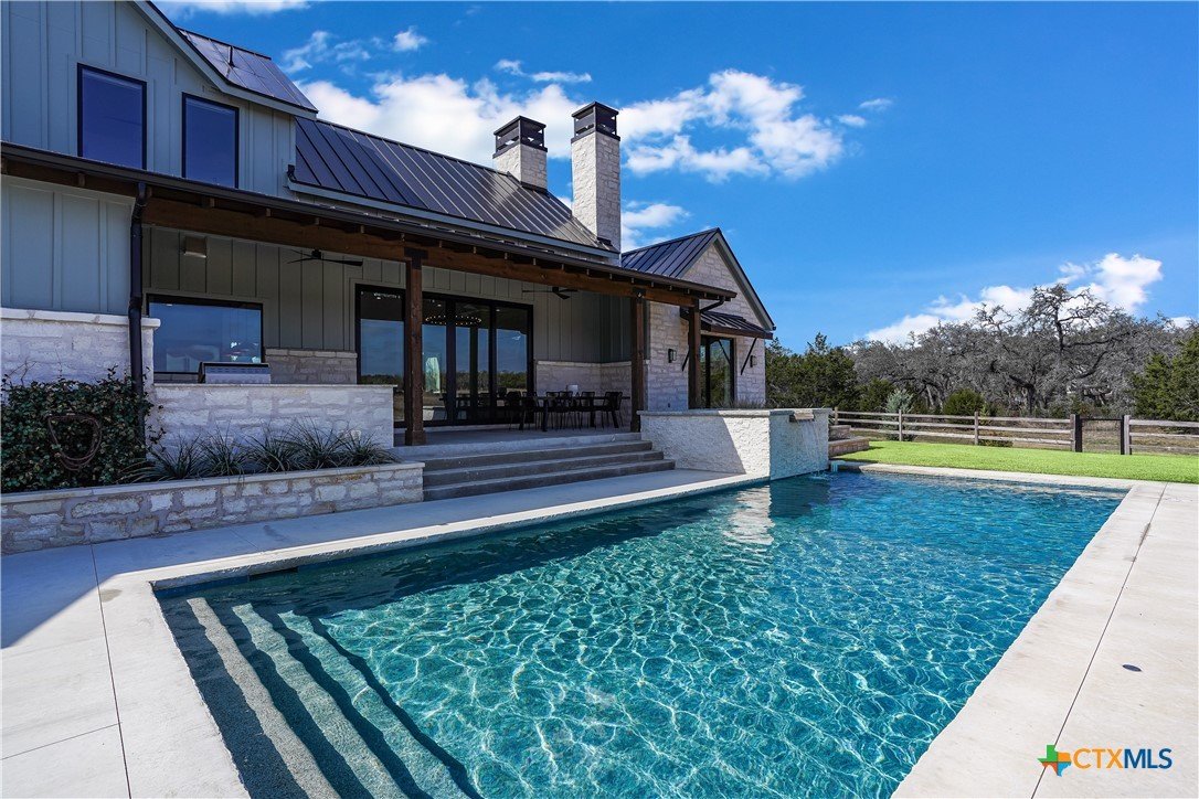 Welcome to your newly built dream retreat in the heart of Wimberley, Texas! Nestled on over 6 acres of lush, tree-covered land, this stunning property offers the perfect blend of seclusion, natural beauty, and modern luxury. Located in the highly sought-after Wimberley community and within the desirable WISD school district, this home is ideal for families and nature lovers alike. Step inside this charming 4-bedroom, 3 full bath, and 2 half bath home, where rich wood floors and a thoughtfully designed layout create a warm and inviting ambiance. The open-concept design ensures both comfort and functionality, while the spacious game room provides the perfect space for entertaining. A dedicated office offers a quiet and inspiring environment for remote work or creative pursuits. The chef’s kitchen is a culinary masterpiece, featuring a GE Monogram 48” stainless steel range, built-in refrigerator, butler’s pantry, and ample storage. The primary suite is a serene retreat, boasting a wood-burning fireplace, picturesque views of the pool and back acreage, and a spa-like bath complete with a soaking tub, double vanity, and walk-in shower. A large walk-in closet conveniently connects to the laundry room for ultimate convenience. For entertainment, the game room is the perfect escape, ideal for enjoying your favorite movies or sports, complete with a wet bar. Venture outdoors to discover your private oasis. A sparkling pool and spa, complete with an outdoor kitchen and dedicated half bath, invite you to unwind on warm Texas days. Towering trees provide shade and privacy, creating the perfect setting for gatherings, stargazing, and peaceful relaxation. This property also includes: 30,000-gallon rainwater system; Sprinkler system for lush landscaping; and Agricultural exemption for lower taxes. Beyond your doorstep, Wimberley offers a vibrant arts scene, charming shops, and renowned dining. Plus, with easy access to both Austin & San Antonio airports, travel is effortless.