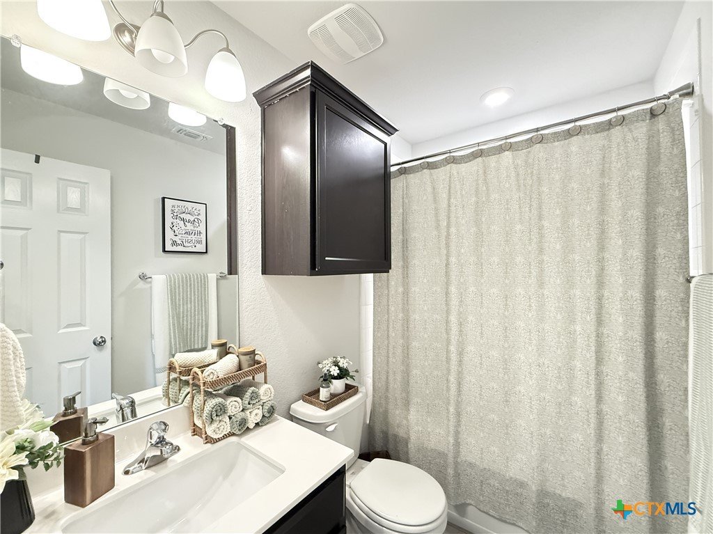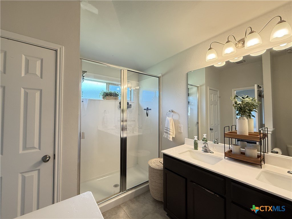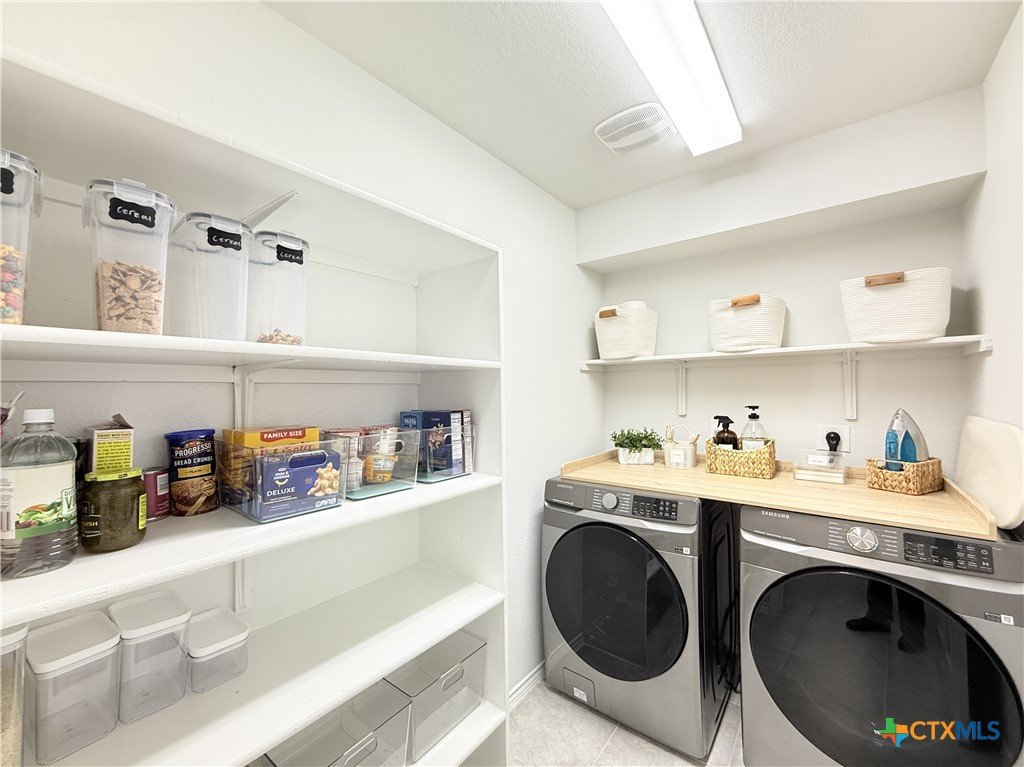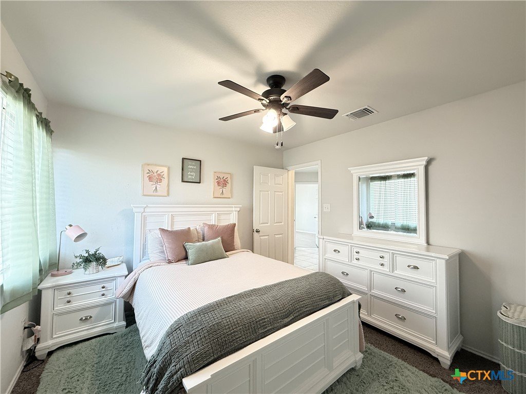 A Rare Discovery!! Unearth many offers before you find one comparable to this D.R. Horton built home nestled in sought-after Creekside Hills. This model-home look-alike in perfect condition awaits a new owner. The well-designed floorplan boasts carefully curated spaces and fun and functional features while presenting an open layout that invites family interaction. Upon entry the tiled foyer opens to the generously scaled living room where elegant elliptical arches transition to the kitchen and dining area without confinement. The kitchen is a culinary delight, equipped with crisp, white cabinets, granite-topped counters, and stainless-steel appliances. A twinset of windows pump natural light into the dining area and captures a view of the backyard. The atrium door leads to the covered patio-an inviting family hang-out spot- and the oversized backyard that offers ample space for little ones and fur babies to roam. You will appreciate the privacy: no roof tops behind your back fence, just an eye-pleasing view of lush greenery and treetops! The primary suite is positioned to the rear of the home for welcomed privacy and exudes an ambiance of tranquility. The beautifully appointed primary bath features an extra-large shower, linen closet, and a dual sink vanity. The two minor bedrooms have generous closet space and ceiling fans for added comfort and sharing a full-size bath. The interior utility room pulls double duty as a voluminous pantry. The dual car sized garage is equipped with pull-down attic access stairs. Extra amenities include Faux-wood blinds dressed windows, security system with exterior cameras, and a welcoming wrap-around front porch.