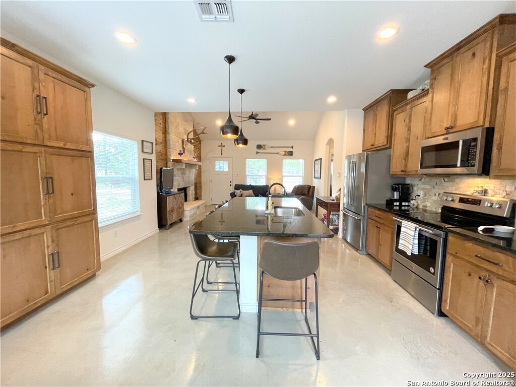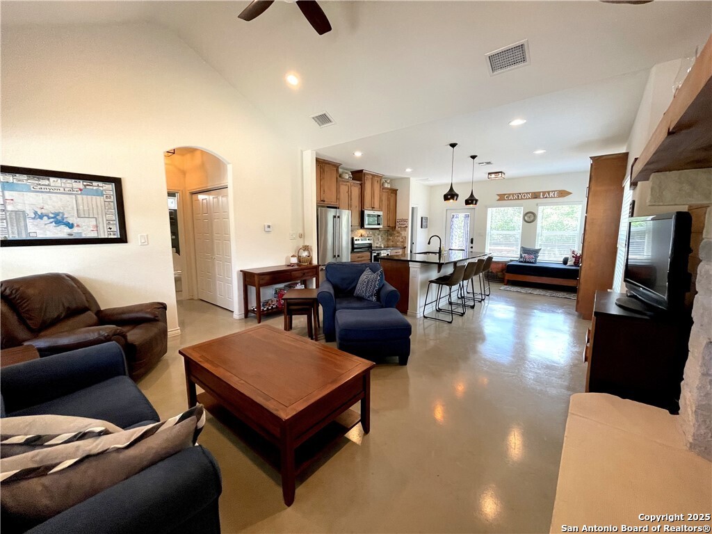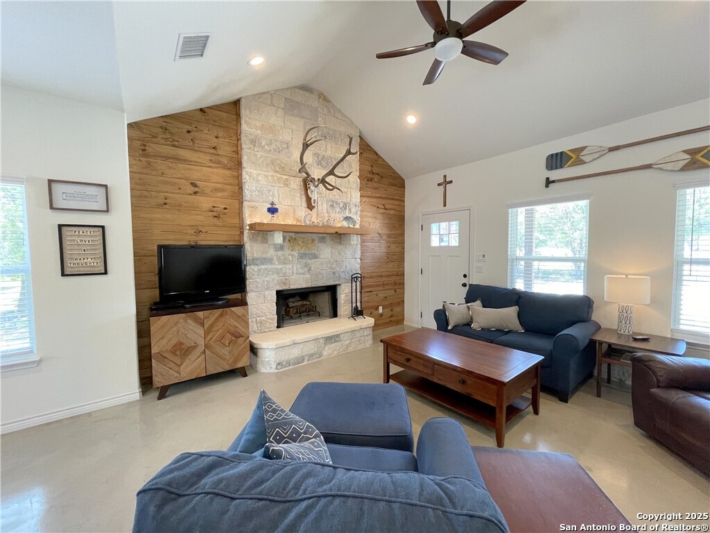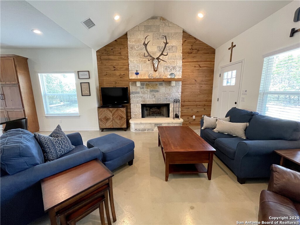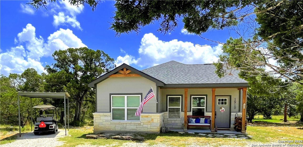 Havenbrook custom-built 2 bedroom, 2 bath home situated on a double lot with plenty of space for parking, a boat, or an RV. The property includes a 25'x32' metal boat cover with an 8'x10' storage room and an additional 8'x10' metal carport, and is located just 1.5 miles from two boat ramps. Inside you'll find stained concrete floors throughout, 42-inch custom cabinets, granite counters, stainless steel appliances, a stone fireplace, tile bathrooms, shiplap accents, vaulted ceilings, and a new deck overlooking the wooded surroundings where you can watch the wildlife. The home is very energy-efficient and easy to maintain, offering a low-stress lake lifestyle. Additional features include a newer roof, a 300-gallon water holding tank with a pressure pump, and above-ground utilities. Fully furnished, this property offers comfort, convenience, and quick access to the lake.