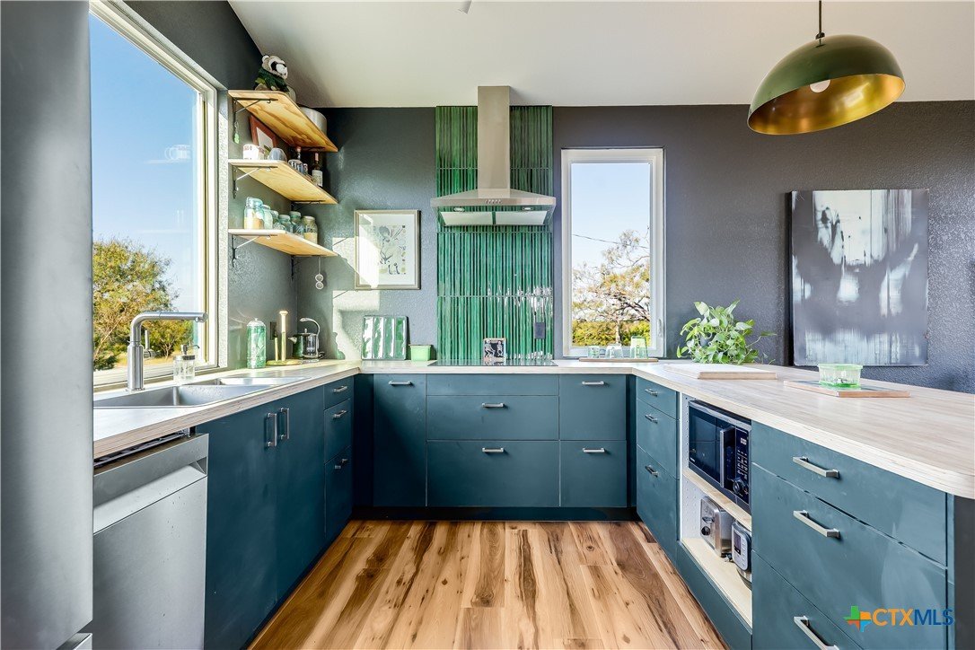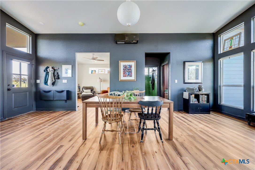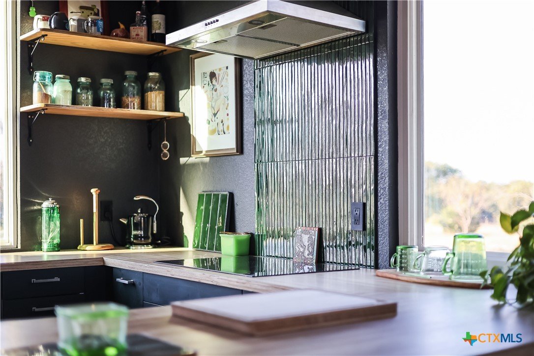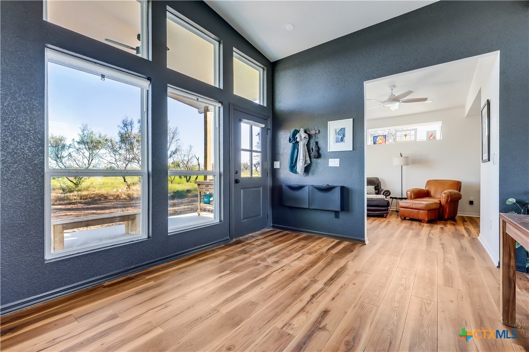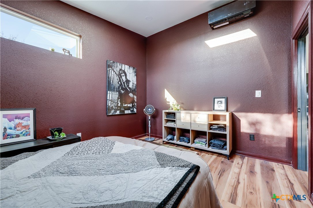 BRAND NEW-Modern 2 Bed GETAWAY!! Hill Country Views on 5 ACRES**UNRESTRICTED**INCLUDES MINERAL RIGHTS**Comfortable open floorplan with plenty of flexibility. Design let's in LOTS of light with strategic locations of windows and skylight. Second bedroom/office is perfect for the extra space you want to work or play! MINIMILIST FEEL to use as country getaway...or scaled down lifestyle to simplify your life and enjoy this gorgeous piece of land. Additional electric meter installed for potential structures in the future. 2 Mini-Splits (25k/15k BTU's). 3,000 gallon Water Tank. Local watering services cost approximately $200 to refill. Average 100 gallons of useage a month currently. Washer/Dryer connection for stackables in utility closet. 10 minutes from downtown Burnet, 15 minutes from downtown Bertram. Ready for the RIGHT Buyer!