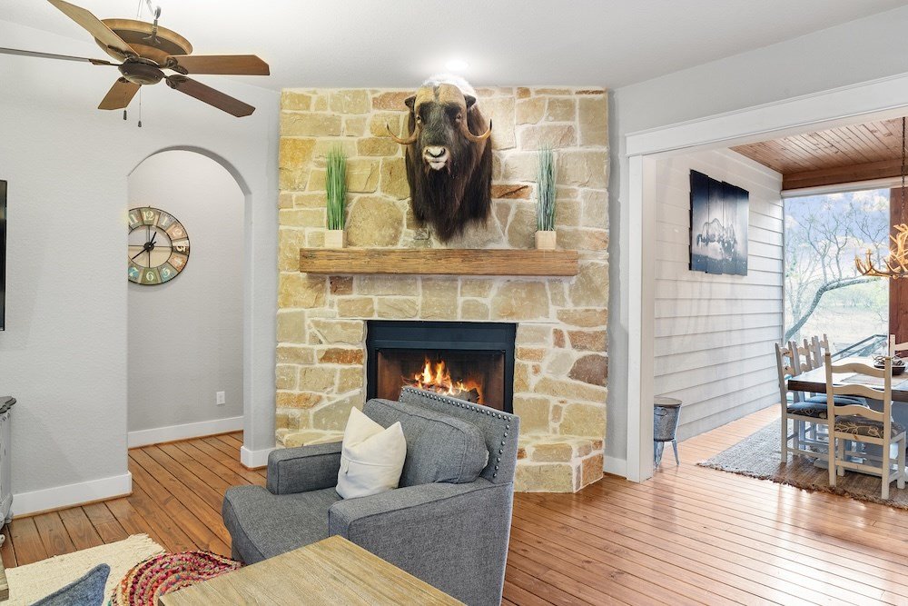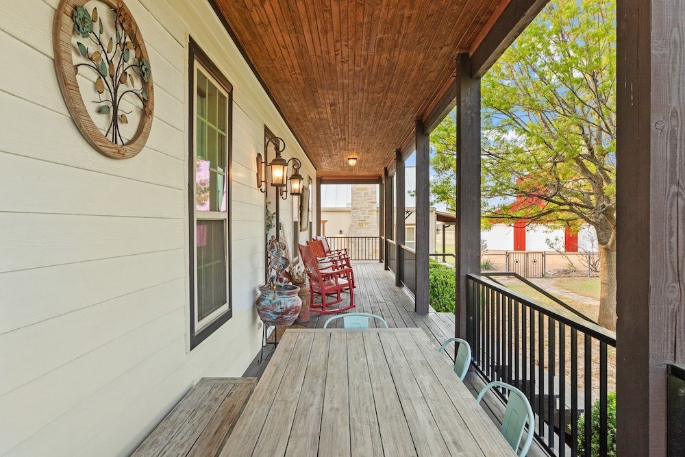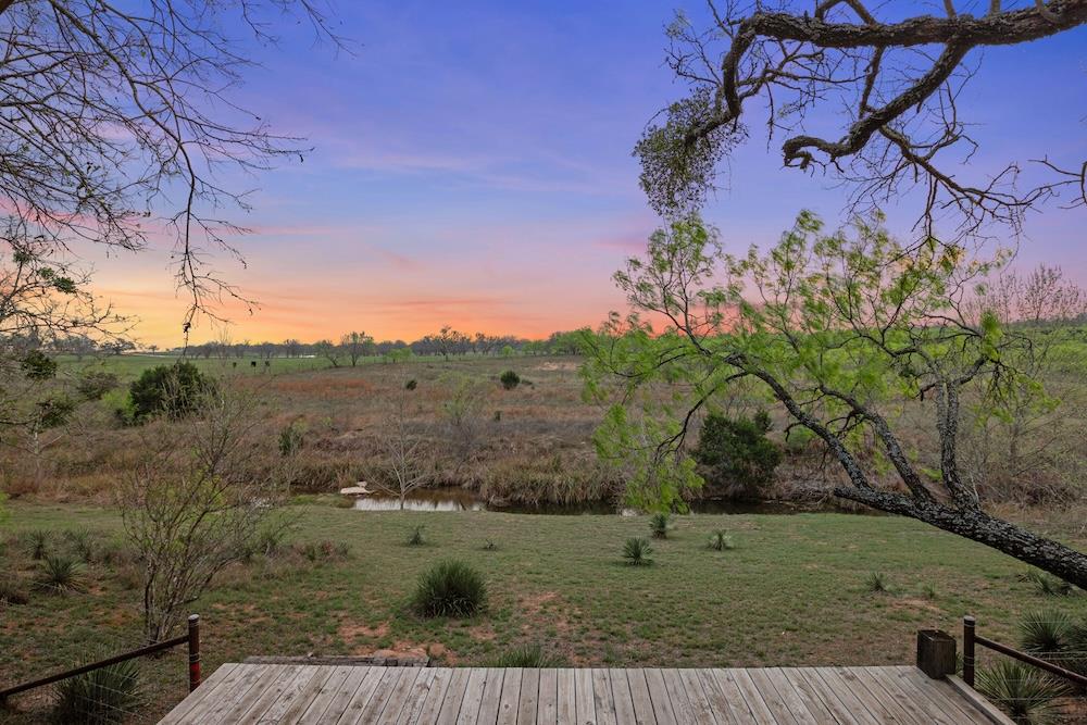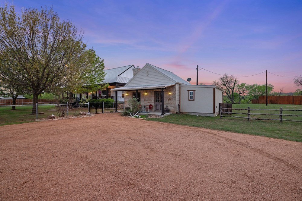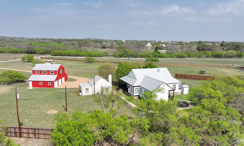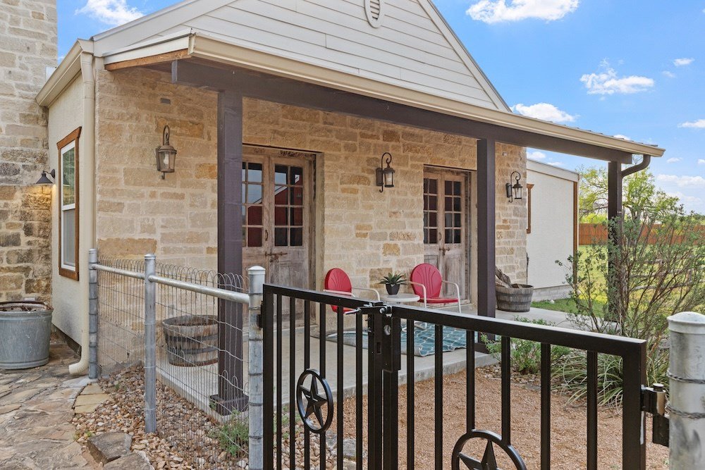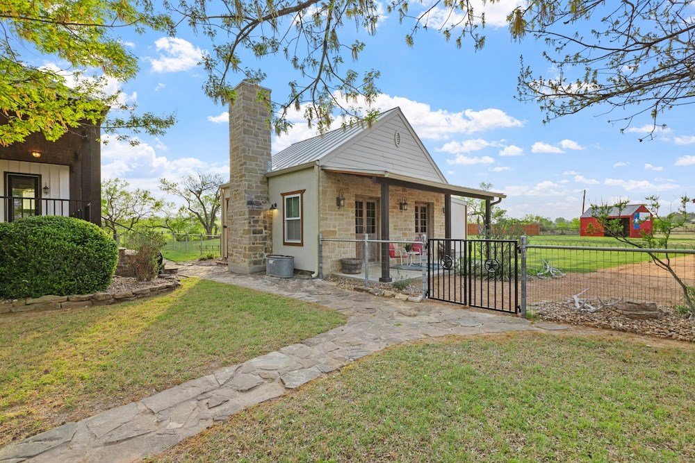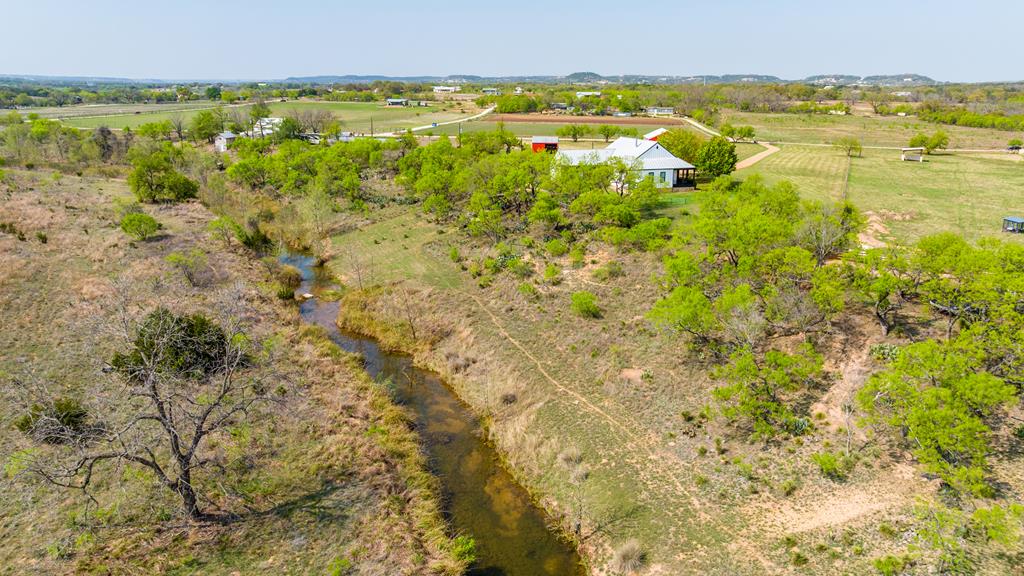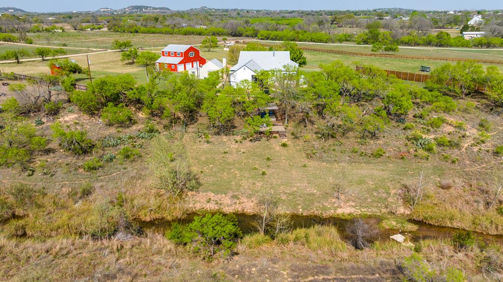 A CREEK RUNS THROUGH IT – Imagine waking up to the gentle sound of flowing water, stepping onto your wraparound porch with coffee in hand, and watching the sunrise over your own piece of Texas Hill Country paradise. This isn't just a dream – it's what life looks like at this stunning 6-acre estate straddling Live Oak Creek. Soaring ceilings and rich hardwood floors set the stage for a space that's both grand, warm and welcoming. The heart of this 4-bedroom / 2.5-bath home is a chef's dream kitchen complete with a Wolf brand 6-burner gas range, huge island perfect for gathering, beautiful countertops and a gorgeous copper farmhouse sink that adds just the right touch of rustic charm. The living area is bright and open and features a big rock fireplace and flows perfectly with the kitchen. You will also love all the storage between the kitchen and large pantry area and a large utility room. Just off the kitchen is a quaint and intimate dining area with character-rich ship-lap ceilings. The perfect space for intimate meals with friends and family turned into late night board games and beverages. Meanwhile, the primary suite will become your private escape and offers a spacious bright bedroom with elongated windows flooding the space with natural light, along with a spa-like bathroom featuring a classic clawfoot tub, double vanities, walk-in shower and roomy walk-in closet. The additional 3 guest rooms are also equally well-appointed making plenty of room for everybody. Plus, there is a home office that could easily be converted to a 5th bedroom. GASTE HAUS (Guest House) – This unique and well thought out guest house greets your guests to a little rustic elegance of their own. The house is roomy and spacious with an open concept floor plan. The living area is spacious and equipped with a beautiful fireplace and exposed beams on the ceiling. You will love the ship-lap walls and wood floors through most of the house along with two (2) more spacious bedrooms and a tastefully done bathroom with a walk-in shower. Not to mention, the cozy covered porch overlooking the gorgeous views. A perfect spot for guests to enjoy a morning cup of coffee or evening beverage of choice. This is the ideal spot for visitors who are staying more than a few days with the option of becoming a short term rental (STR), your own private office, workout area, art studio, you name it! If STR's are what you are searching for than you could even turn the whole place into a bed and breakfast complex if you choose. No matter how you use it this set up offers a lot of versatility. OUTSIDE – This property's 275 + feet of creek frontage on both sides of Live Oak Creek isn't just a feature – it's a lifestyle. Cool off in the creek on hot summer days, unwind in the hot tub under a blanket of stars, or host the ultimate barbecue in your private cabana. The fully fenced property keeps your pets safe while they explore their new paradise. THERE IS MORE – In addition, there is a great sized three (3) bay detached garage/workshop/implement building. Car enthusiast? Artist? Entrepreneur? The three-bay workshop/garage is your blank canvas. With bonus space upstairs that could become anything from a studio apartment to the ultimate storage solution, the possibilities are endless. All this just 4 miles South of Fredericksburg's famous historic Main Street with shops, winery's and restaurants. Also, conveniently located just across the street from both the local airport and Lady Bird Johnson Golf Course and just minutes to the grocery store (H-E-B). Making this a property that has something for everyone. You're close enough to enjoy all the charm of this beloved Hill Country town but far enough to savor your privacy. Country living with city conveniences at your fingertips!