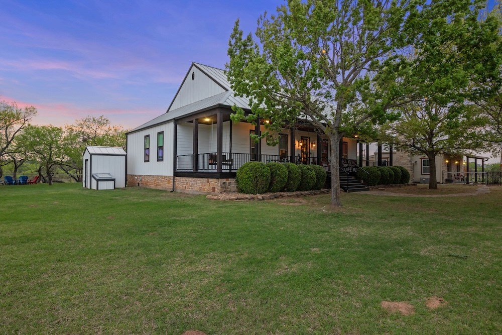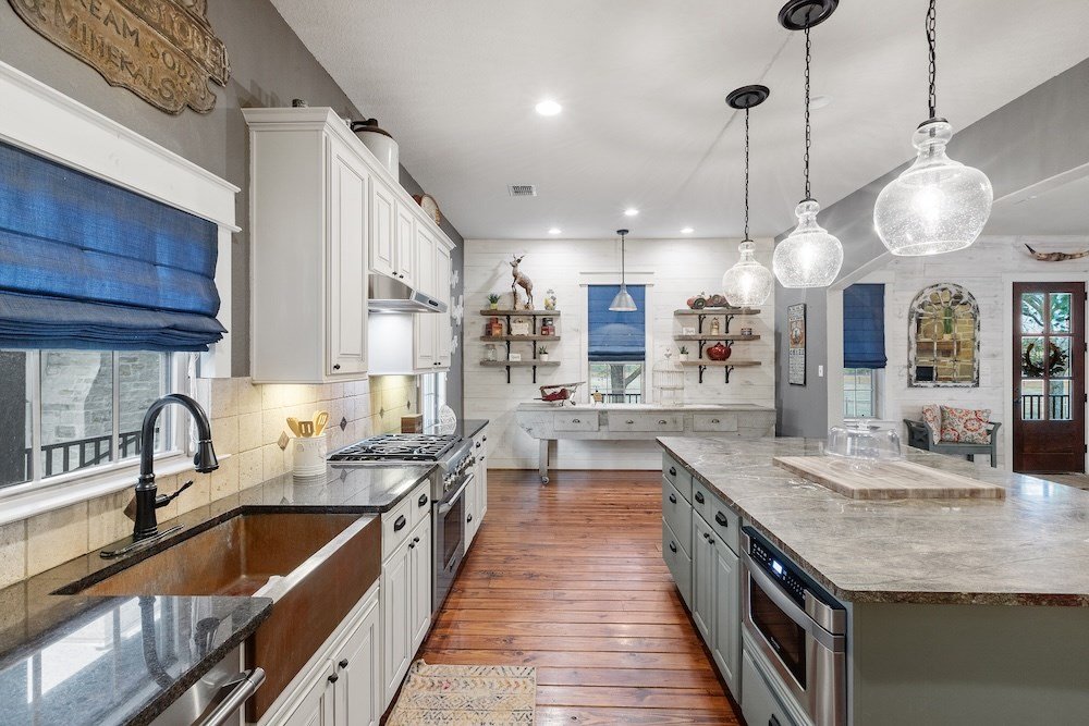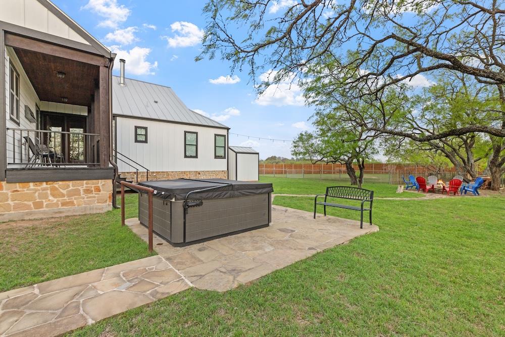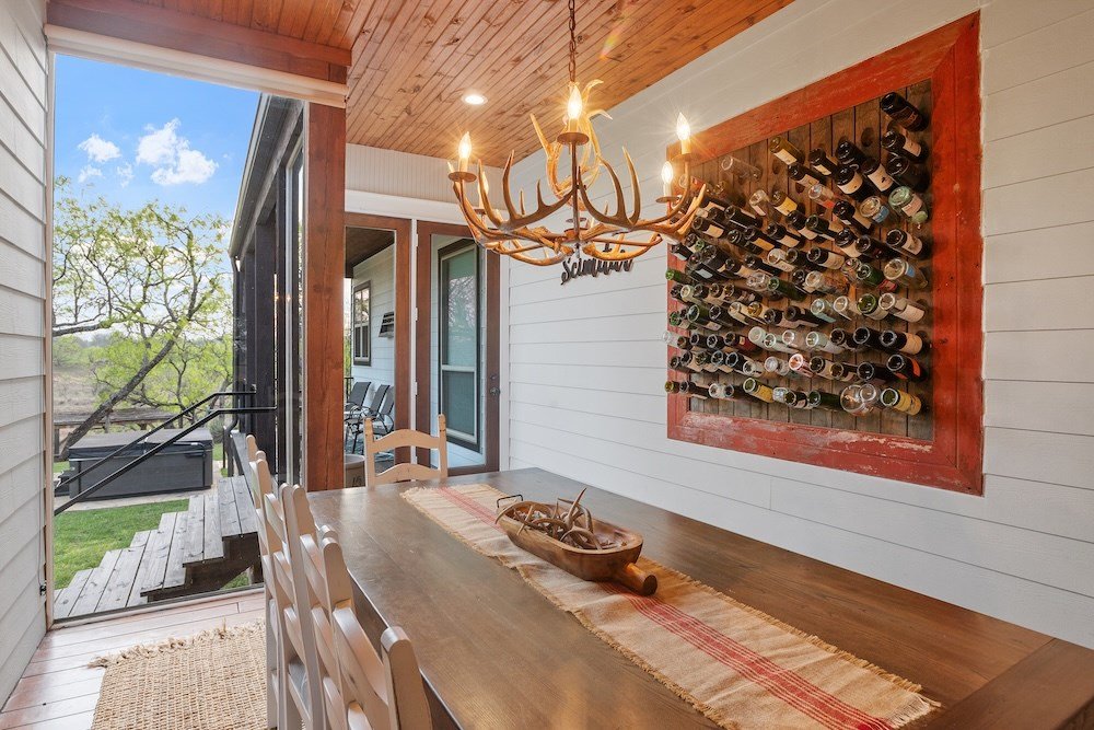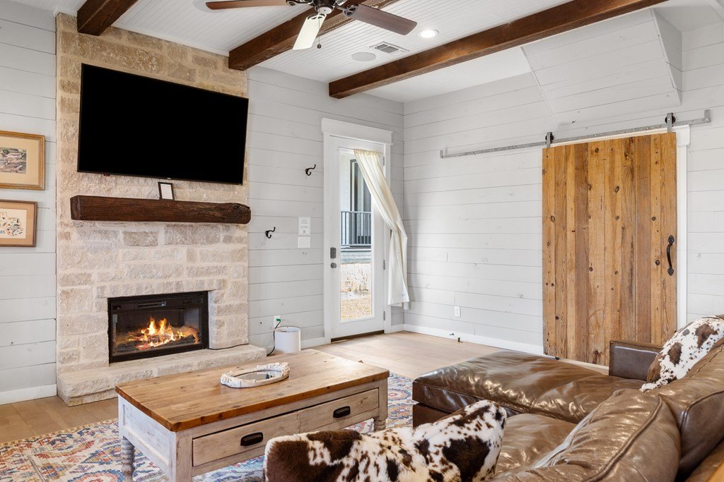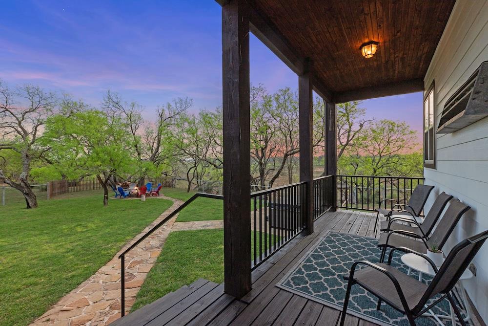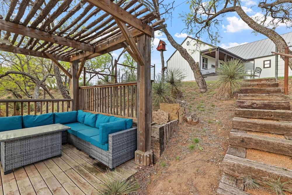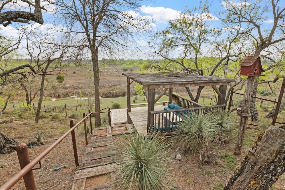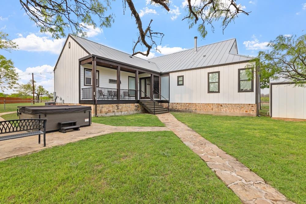 A CREEK RUNS THROUGH IT – Imagine waking up to the gentle sound of flowing water, stepping onto your wraparound porch with coffee in hand, and watching the sunrise over your own piece of Texas Hill Country paradise. This isn't just a dream – it's what life looks like at this stunning 6-acre estate straddling Live Oak Creek. Soaring ceilings and rich hardwood floors set the stage for a space that's both grand, warm and welcoming. The heart of this 4-bedroom / 2.5-bath home is a chef's dream kitchen complete with a Wolf brand 6-burner gas range, huge island perfect for gathering, beautiful countertops and a gorgeous copper farmhouse sink that adds just the right touch of rustic charm. The living area is bright and open and features a big rock fireplace and flows perfectly with the kitchen. You will also love all the storage between the kitchen and large pantry area and a large utility room. Just off the kitchen is a quaint and intimate dining area with character-rich ship-lap ceilings. The perfect space for intimate meals with friends and family turned into late night board games and beverages. Meanwhile, the primary suite will become your private escape and offers a spacious bright bedroom with elongated windows flooding the space with natural light, along with a spa-like bathroom featuring a classic clawfoot tub, double vanities, walk-in shower and roomy walk-in closet. The additional 3 guest rooms are also equally well-appointed making plenty of room for everybody. Plus, there is a home office that could easily be converted to a 5th bedroom. GASTE HAUS (Guest House) – This unique and well thought out guest house greets your guests to a little rustic elegance of their own. The house is roomy and spacious with an open concept floor plan. The living area is spacious and equipped with a beautiful fireplace and exposed beams on the ceiling. You will love the ship-lap walls and wood floors through most of the house along with two (2) more spacious bedrooms and a tastefully done bathroom with a walk-in shower. Not to mention, the cozy covered porch overlooking the gorgeous views. A perfect spot for guests to enjoy a morning cup of coffee or evening beverage of choice. This is the ideal spot for visitors who are staying more than a few days with the option of becoming a short term rental (STR), your own private office, workout area, art studio, you name it! If STR's are what you are searching for than you could even turn the whole place into a bed and breakfast complex if you choose. No matter how you use it this set up offers a lot of versatility. OUTSIDE – This property's 275 + feet of creek frontage on both sides of Live Oak Creek isn't just a feature – it's a lifestyle. Cool off in the creek on hot summer days, unwind in the hot tub under a blanket of stars, or host the ultimate barbecue in your private cabana. The fully fenced property keeps your pets safe while they explore their new paradise. THERE IS MORE – In addition, there is a great sized three (3) bay detached garage/workshop/implement building. Car enthusiast? Artist? Entrepreneur? The three-bay workshop/garage is your blank canvas. With bonus space upstairs that could become anything from a studio apartment to the ultimate storage solution, the possibilities are endless. All this just 4 miles South of Fredericksburg's famous historic Main Street with shops, winery's and restaurants. Also, conveniently located just across the street from both the local airport and Lady Bird Johnson Golf Course and just minutes to the grocery store (H-E-B). Making this a property that has something for everyone. You're close enough to enjoy all the charm of this beloved Hill Country town but far enough to savor your privacy. Country living with city conveniences at your fingertips!