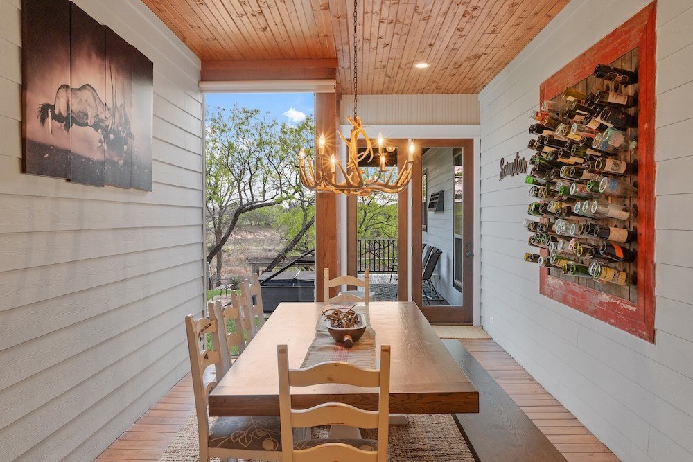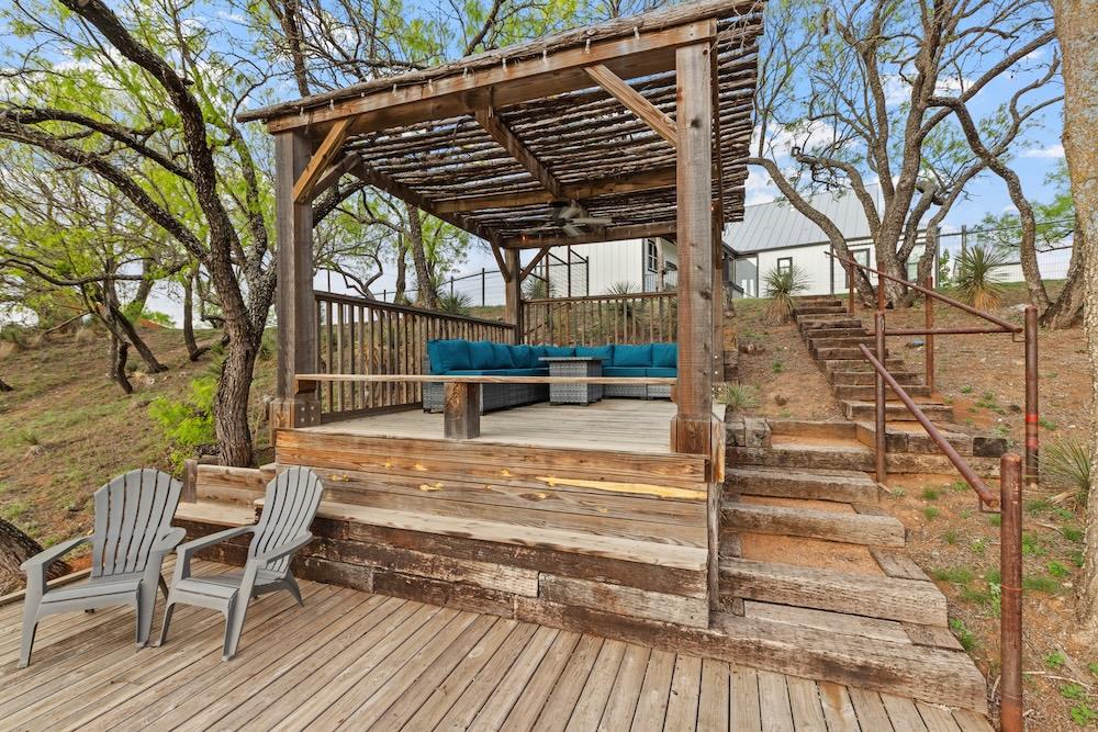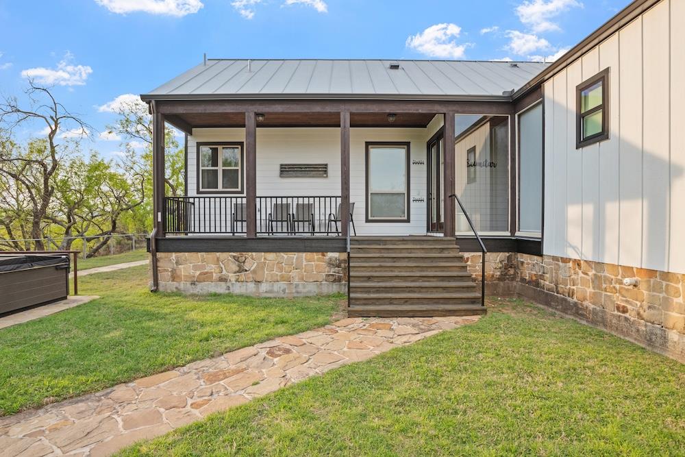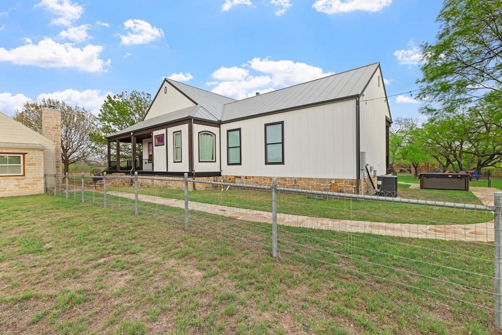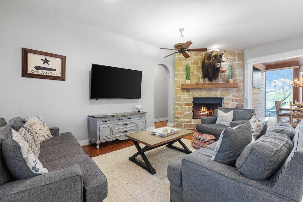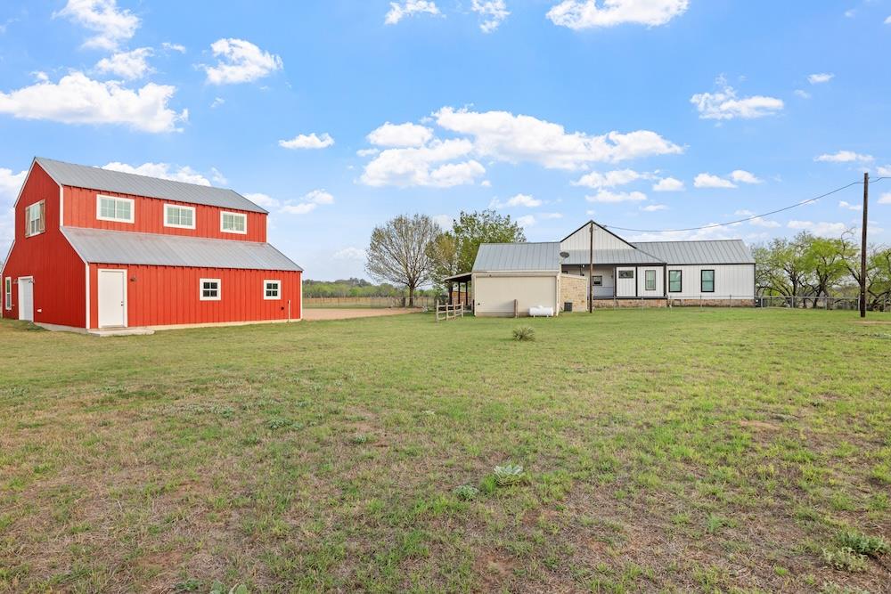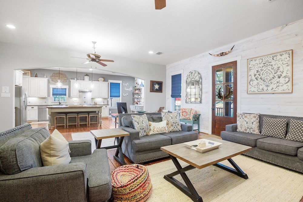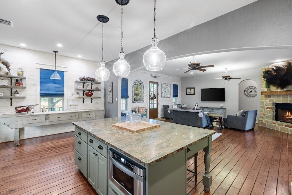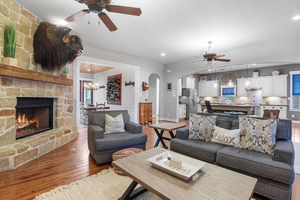 A CREEK RUNS THROUGH IT – Imagine waking up to the gentle sound of flowing water, stepping onto your wraparound porch with coffee in hand, and watching the sunrise over your own piece of Texas Hill Country paradise. This isn't just a dream – it's what life looks like at this stunning 6-acre estate straddling Live Oak Creek. Soaring ceilings and rich hardwood floors set the stage for a space that's both grand, warm and welcoming. The heart of this 4-bedroom / 2.5-bath home is a chef's dream kitchen complete with a Wolf brand 6-burner gas range, huge island perfect for gathering, beautiful countertops and a gorgeous copper farmhouse sink that adds just the right touch of rustic charm. The living area is bright and open and features a big rock fireplace and flows perfectly with the kitchen. You will also love all the storage between the kitchen and large pantry area and a large utility room. Just off the kitchen is a quaint and intimate dining area with character-rich ship-lap ceilings. The perfect space for intimate meals with friends and family turned into late night board games and beverages. Meanwhile, the primary suite will become your private escape and offers a spacious bright bedroom with elongated windows flooding the space with natural light, along with a spa-like bathroom featuring a classic clawfoot tub, double vanities, walk-in shower and roomy walk-in closet. The additional 3 guest rooms are also equally well-appointed making plenty of room for everybody. Plus, there is a home office that could easily be converted to a 5th bedroom. GASTE HAUS (Guest House) – This unique and well thought out guest house greets your guests to a little rustic elegance of their own. The house is roomy and spacious with an open concept floor plan. The living area is spacious and equipped with a beautiful fireplace and exposed beams on the ceiling. You will love the ship-lap walls and wood floors through most of the house along with two (2) more spacious bedrooms and a tastefully done bathroom with a walk-in shower. Not to mention, the cozy covered porch overlooking the gorgeous views. A perfect spot for guests to enjoy a morning cup of coffee or evening beverage of choice. This is the ideal spot for visitors who are staying more than a few days with the option of becoming a short term rental (STR), your own private office, workout area, art studio, you name it! If STR's are what you are searching for than you could even turn the whole place into a bed and breakfast complex if you choose. No matter how you use it this set up offers a lot of versatility. OUTSIDE – This property's 275 + feet of creek frontage on both sides of Live Oak Creek isn't just a feature – it's a lifestyle. Cool off in the creek on hot summer days, unwind in the hot tub under a blanket of stars, or host the ultimate barbecue in your private cabana. The fully fenced property keeps your pets safe while they explore their new paradise. THERE IS MORE – In addition, there is a great sized three (3) bay detached garage/workshop/implement building. Car enthusiast? Artist? Entrepreneur? The three-bay workshop/garage is your blank canvas. With bonus space upstairs that could become anything from a studio apartment to the ultimate storage solution, the possibilities are endless. All this just 4 miles South of Fredericksburg's famous historic Main Street with shops, winery's and restaurants. Also, conveniently located just across the street from both the local airport and Lady Bird Johnson Golf Course and just minutes to the grocery store (H-E-B). Making this a property that has something for everyone. You're close enough to enjoy all the charm of this beloved Hill Country town but far enough to savor your privacy. Country living with city conveniences at your fingertips!