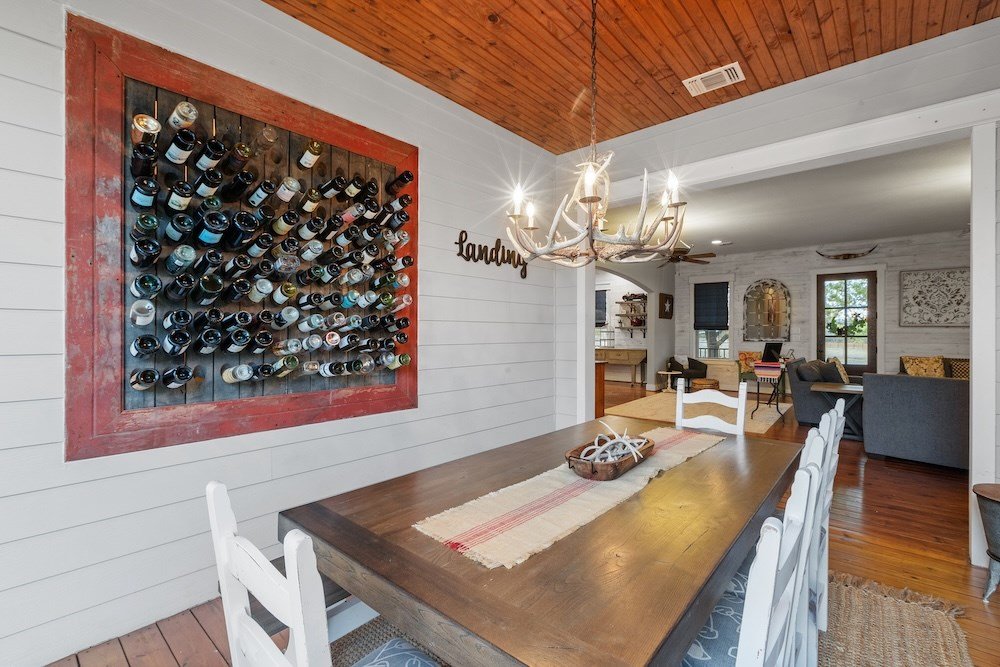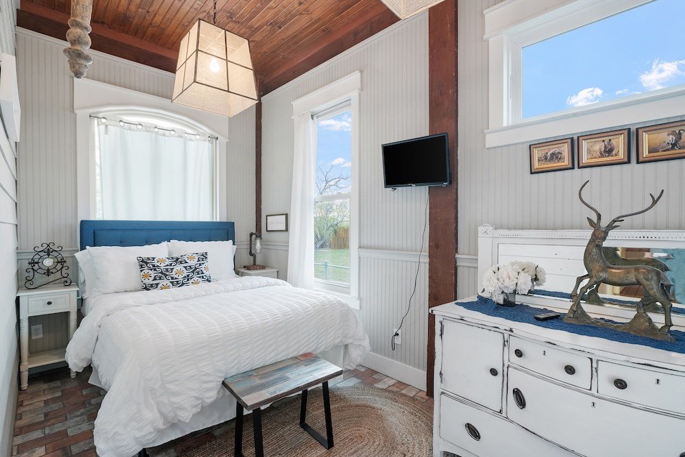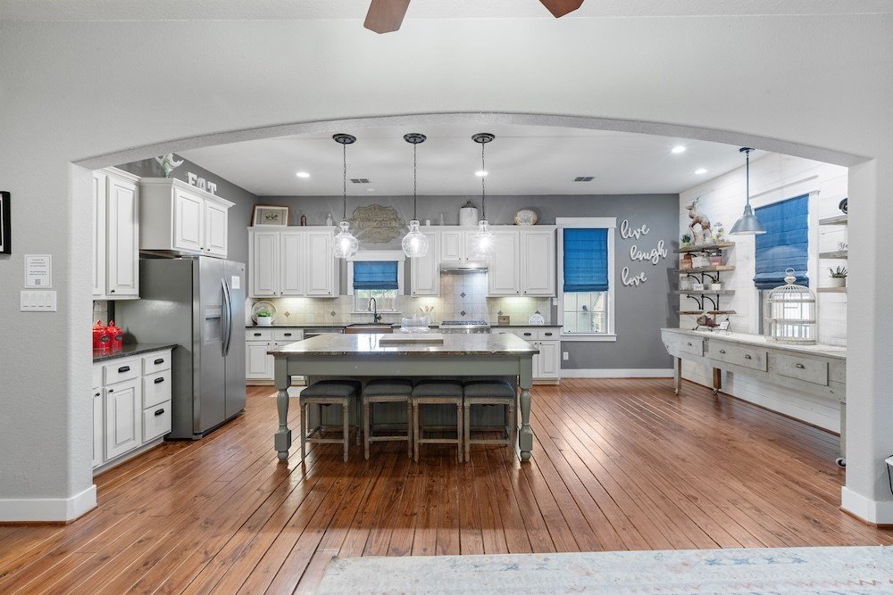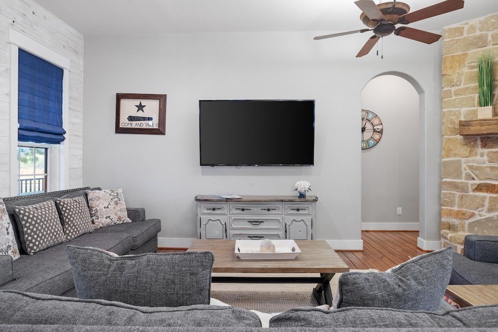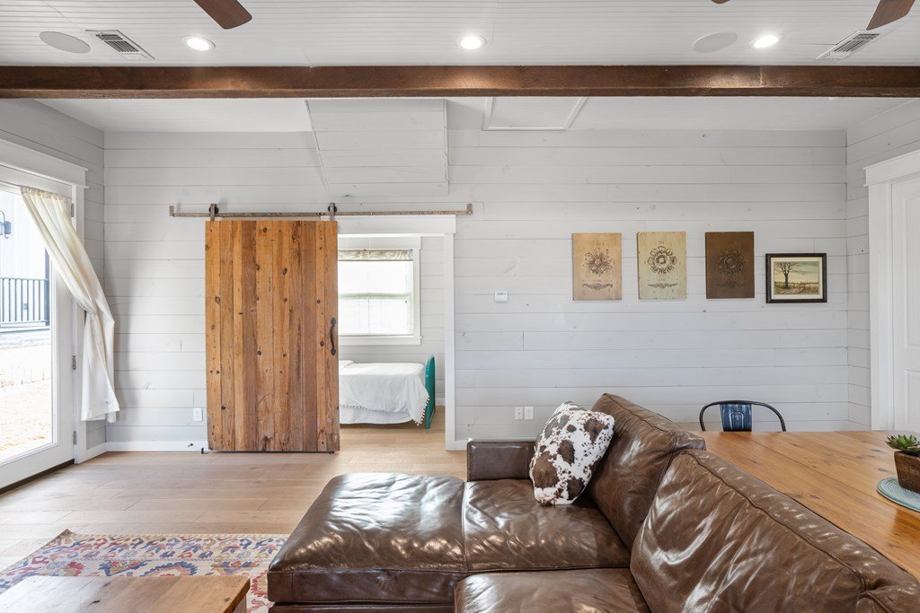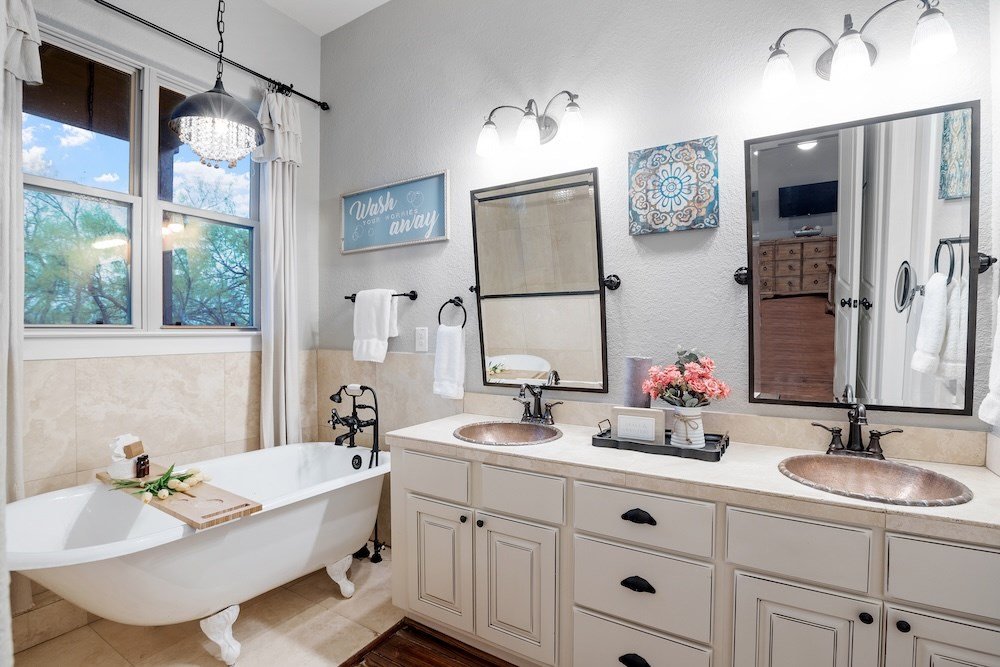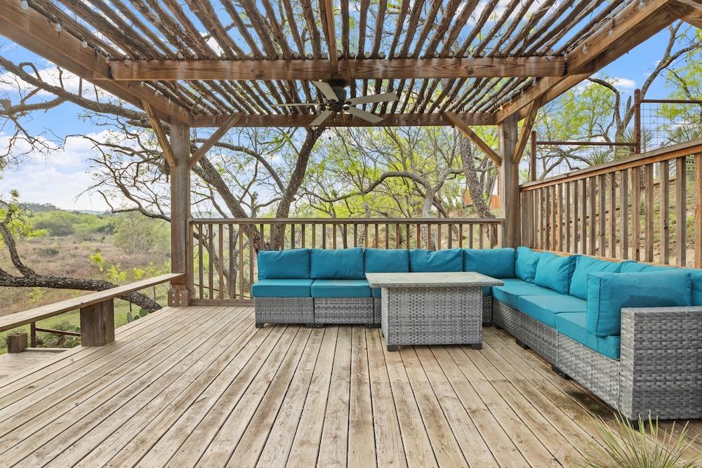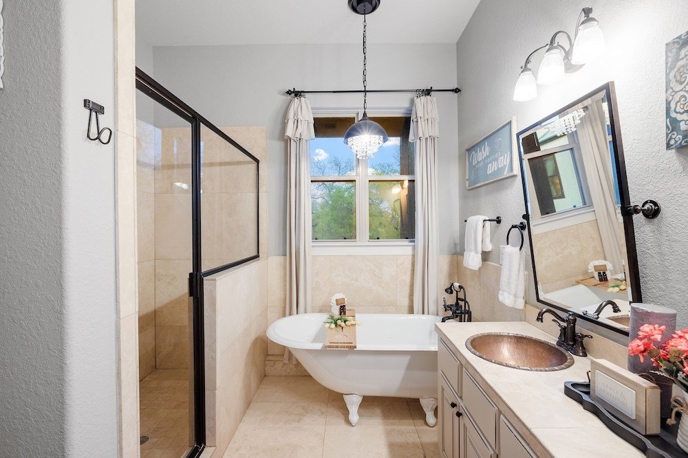 A CREEK RUNS THROUGH IT – Imagine waking up to the gentle sound of flowing water, stepping onto your wraparound porch with coffee in hand, and watching the sunrise over your own piece of Texas Hill Country paradise. This isn't just a dream – it's what life looks like at this stunning 6-acre estate straddling Live Oak Creek. Soaring ceilings and rich hardwood floors set the stage for a space that's both grand, warm and welcoming. The heart of this 4-bedroom / 2.5-bath home is a chef's dream kitchen complete with a Wolf brand 6-burner gas range, huge island perfect for gathering, beautiful countertops and a gorgeous copper farmhouse sink that adds just the right touch of rustic charm. The living area is bright and open and features a big rock fireplace and flows perfectly with the kitchen. You will also love all the storage between the kitchen and large pantry area and a large utility room. Just off the kitchen is a quaint and intimate dining area with character-rich ship-lap ceilings. The perfect space for intimate meals with friends and family turned into late night board games and beverages. Meanwhile, the primary suite will become your private escape and offers a spacious bright bedroom with elongated windows flooding the space with natural light, along with a spa-like bathroom featuring a classic clawfoot tub, double vanities, walk-in shower and roomy walk-in closet. The additional 3 guest rooms are also equally well-appointed making plenty of room for everybody. Plus, there is a home office that could easily be converted to a 5th bedroom. GASTE HAUS (Guest House) – This unique and well thought out guest house greets your guests to a little rustic elegance of their own. The house is roomy and spacious with an open concept floor plan. The living area is spacious and equipped with a beautiful fireplace and exposed beams on the ceiling. You will love the ship-lap walls and wood floors through most of the house along with two (2) more spacious bedrooms and a tastefully done bathroom with a walk-in shower. Not to mention, the cozy covered porch overlooking the gorgeous views. A perfect spot for guests to enjoy a morning cup of coffee or evening beverage of choice. This is the ideal spot for visitors who are staying more than a few days with the option of becoming a short term rental (STR), your own private office, workout area, art studio, you name it! If STR's are what you are searching for than you could even turn the whole place into a bed and breakfast complex if you choose. No matter how you use it this set up offers a lot of versatility. OUTSIDE – This property's 275 + feet of creek frontage on both sides of Live Oak Creek isn't just a feature – it's a lifestyle. Cool off in the creek on hot summer days, unwind in the hot tub under a blanket of stars, or host the ultimate barbecue in your private cabana. The fully fenced property keeps your pets safe while they explore their new paradise. THERE IS MORE – In addition, there is a great sized three (3) bay detached garage/workshop/implement building. Car enthusiast? Artist? Entrepreneur? The three-bay workshop/garage is your blank canvas. With bonus space upstairs that could become anything from a studio apartment to the ultimate storage solution, the possibilities are endless. All this just 4 miles South of Fredericksburg's famous historic Main Street with shops, winery's and restaurants. Also, conveniently located just across the street from both the local airport and Lady Bird Johnson Golf Course and just minutes to the grocery store (H-E-B). Making this a property that has something for everyone. You're close enough to enjoy all the charm of this beloved Hill Country town but far enough to savor your privacy. Country living with city conveniences at your fingertips!