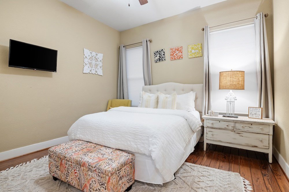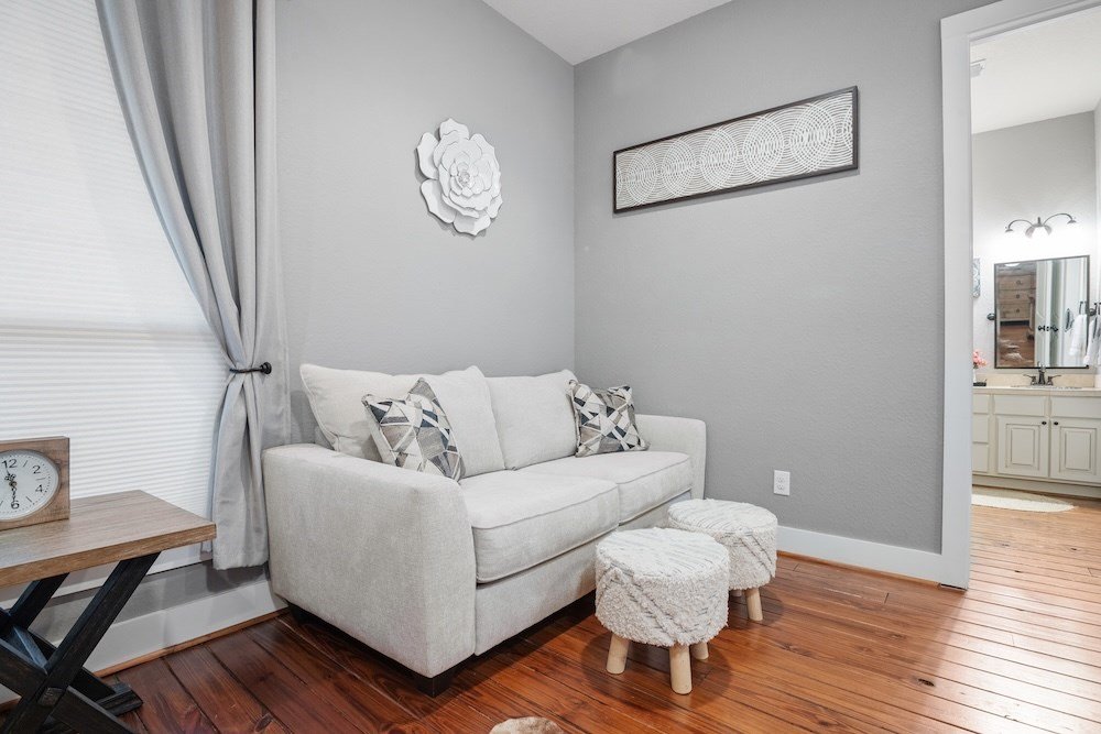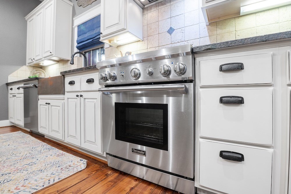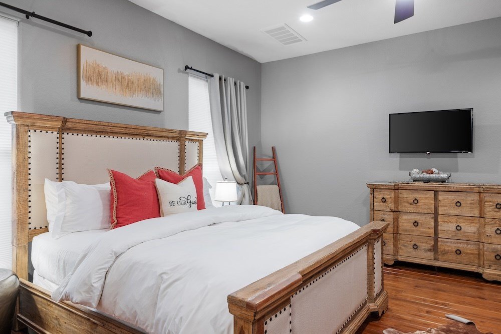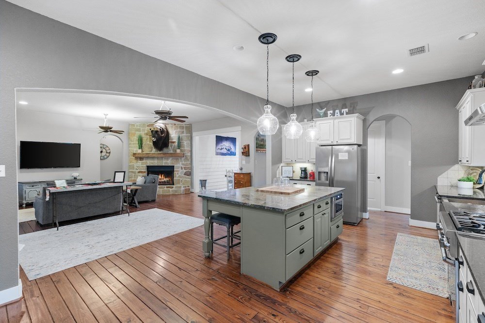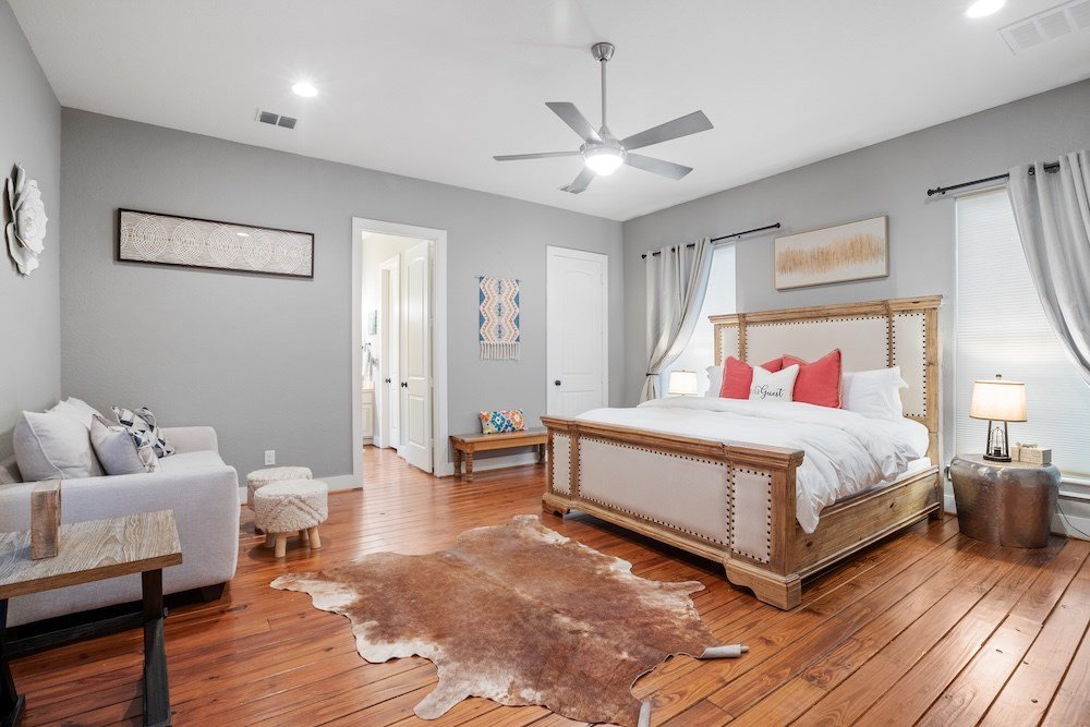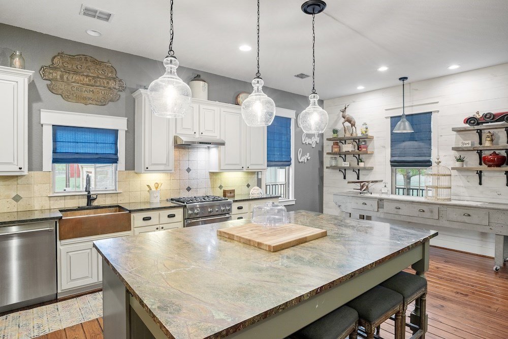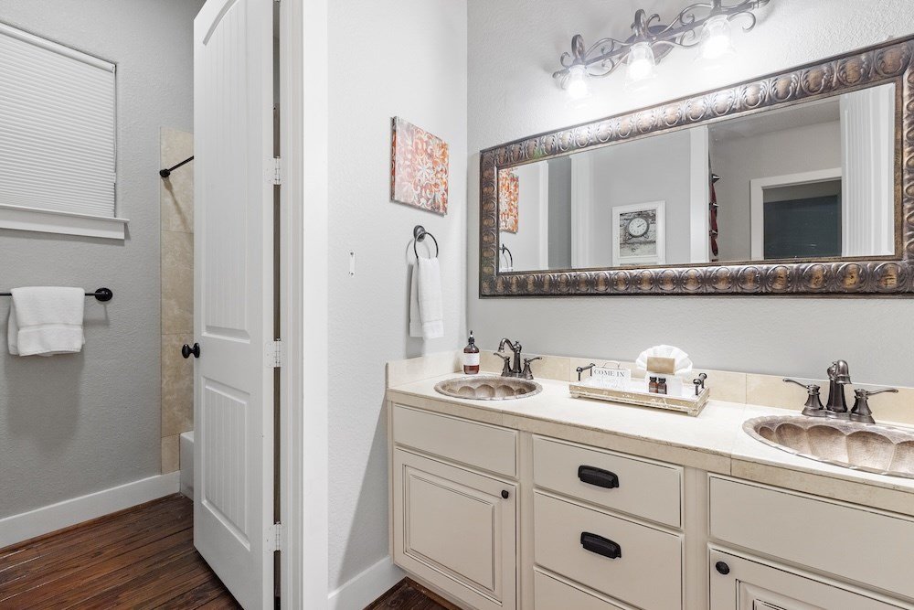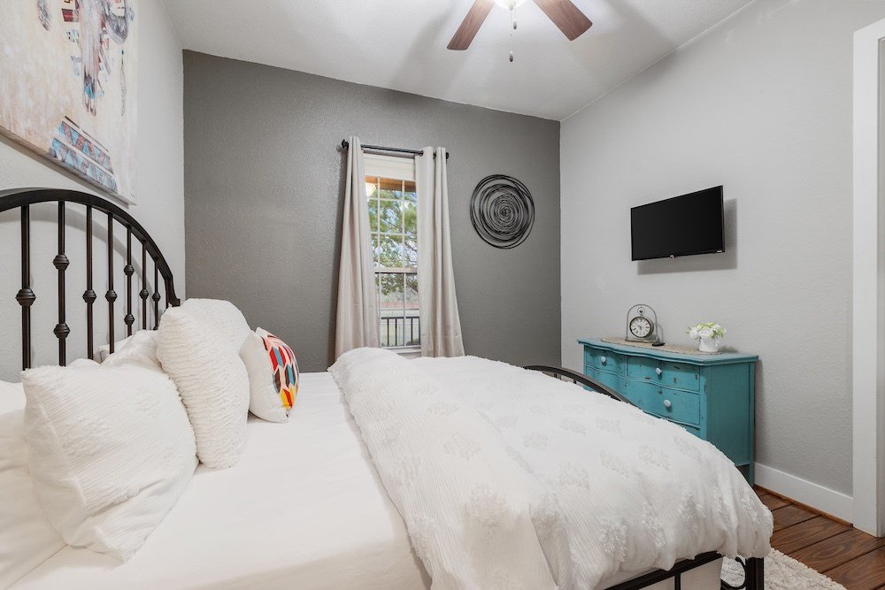 A CREEK RUNS THROUGH IT – Imagine waking up to the gentle sound of flowing water, stepping onto your wraparound porch with coffee in hand, and watching the sunrise over your own piece of Texas Hill Country paradise. This isn't just a dream – it's what life looks like at this stunning 6-acre estate straddling Live Oak Creek. Soaring ceilings and rich hardwood floors set the stage for a space that's both grand, warm and welcoming. The heart of this 4-bedroom / 2.5-bath home is a chef's dream kitchen complete with a Wolf brand 6-burner gas range, huge island perfect for gathering, beautiful countertops and a gorgeous copper farmhouse sink that adds just the right touch of rustic charm. The living area is bright and open and features a big rock fireplace and flows perfectly with the kitchen. You will also love all the storage between the kitchen and large pantry area and a large utility room. Just off the kitchen is a quaint and intimate dining area with character-rich ship-lap ceilings. The perfect space for intimate meals with friends and family turned into late night board games and beverages. Meanwhile, the primary suite will become your private escape and offers a spacious bright bedroom with elongated windows flooding the space with natural light, along with a spa-like bathroom featuring a classic clawfoot tub, double vanities, walk-in shower and roomy walk-in closet. The additional 3 guest rooms are also equally well-appointed making plenty of room for everybody. Plus, there is a home office that could easily be converted to a 5th bedroom. GASTE HAUS (Guest House) – This unique and well thought out guest house greets your guests to a little rustic elegance of their own. The house is roomy and spacious with an open concept floor plan. The living area is spacious and equipped with a beautiful fireplace and exposed beams on the ceiling. You will love the ship-lap walls and wood floors through most of the house along with two (2) more spacious bedrooms and a tastefully done bathroom with a walk-in shower. Not to mention, the cozy covered porch overlooking the gorgeous views. A perfect spot for guests to enjoy a morning cup of coffee or evening beverage of choice. This is the ideal spot for visitors who are staying more than a few days with the option of becoming a short term rental (STR), your own private office, workout area, art studio, you name it! If STR's are what you are searching for than you could even turn the whole place into a bed and breakfast complex if you choose. No matter how you use it this set up offers a lot of versatility. OUTSIDE – This property's 275 + feet of creek frontage on both sides of Live Oak Creek isn't just a feature – it's a lifestyle. Cool off in the creek on hot summer days, unwind in the hot tub under a blanket of stars, or host the ultimate barbecue in your private cabana. The fully fenced property keeps your pets safe while they explore their new paradise. THERE IS MORE – In addition, there is a great sized three (3) bay detached garage/workshop/implement building. Car enthusiast? Artist? Entrepreneur? The three-bay workshop/garage is your blank canvas. With bonus space upstairs that could become anything from a studio apartment to the ultimate storage solution, the possibilities are endless. All this just 4 miles South of Fredericksburg's famous historic Main Street with shops, winery's and restaurants. Also, conveniently located just across the street from both the local airport and Lady Bird Johnson Golf Course and just minutes to the grocery store (H-E-B). Making this a property that has something for everyone. You're close enough to enjoy all the charm of this beloved Hill Country town but far enough to savor your privacy. Country living with city conveniences at your fingertips!