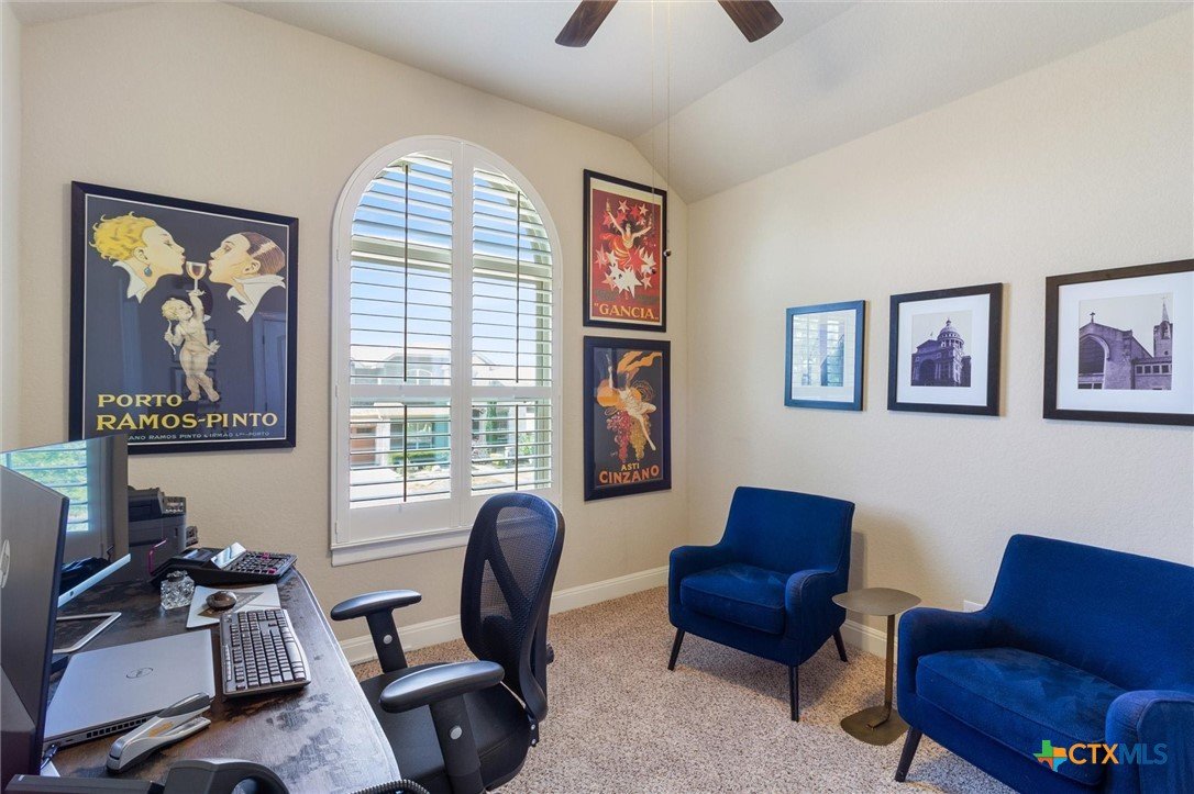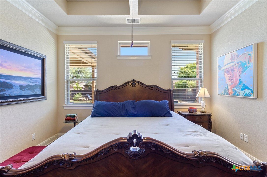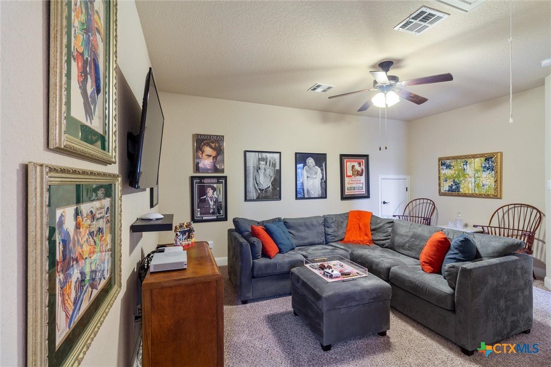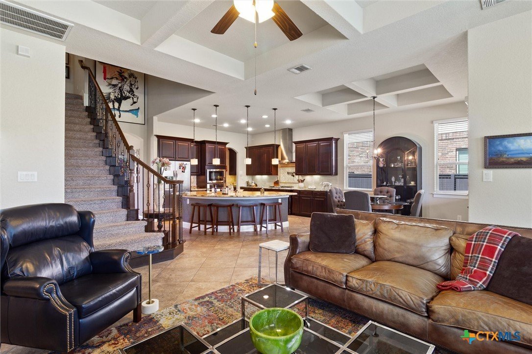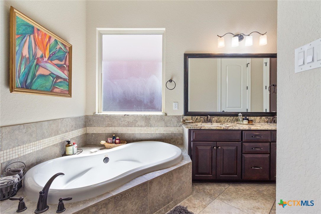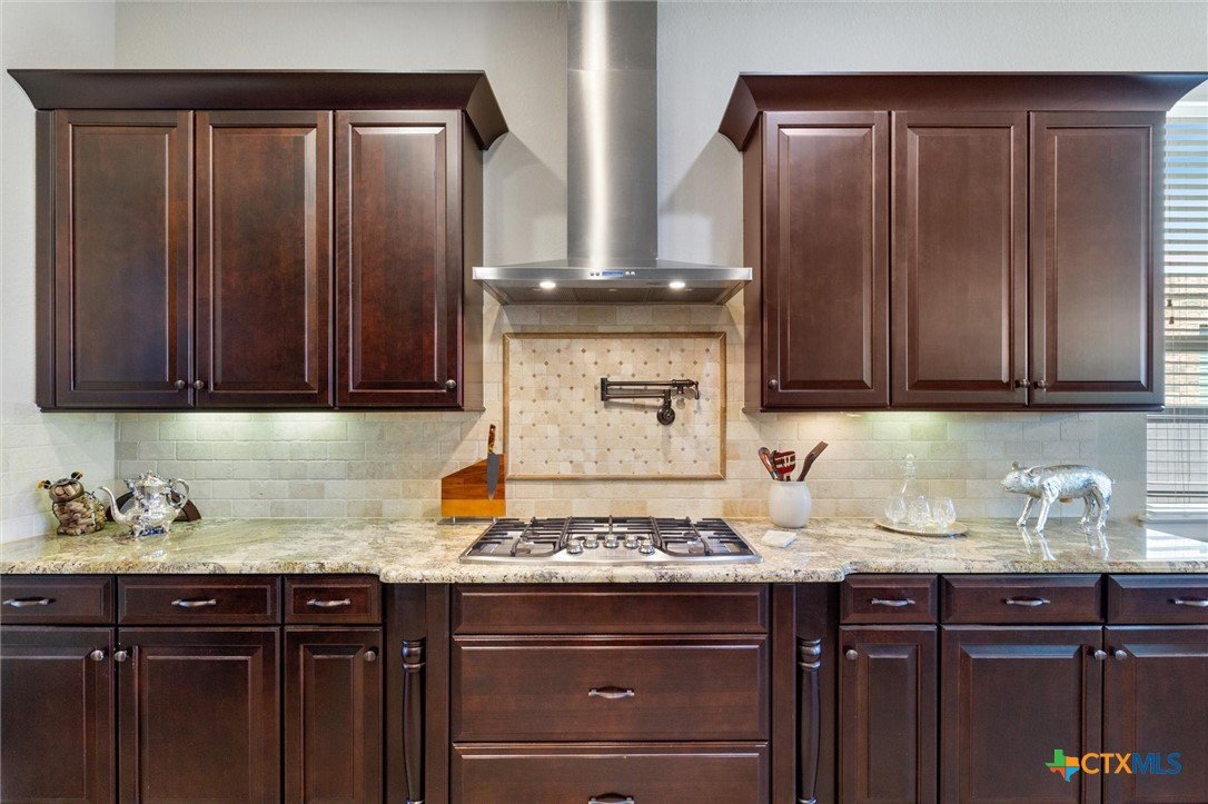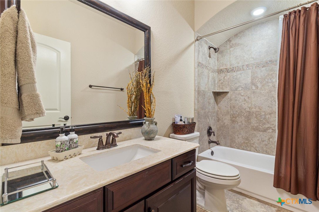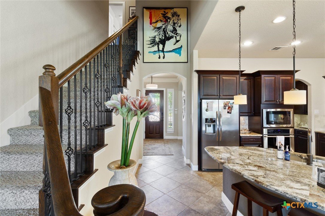 Welcome to 1919 Los Santos Drive, a beautiful home in the lovely Vista De Los Santos community in the Texas Hill Country near downtown San Marcos and Texas State University. This home features four sides of masonry, stainless steel appliances, granite countertops, gas cooking, brick-paved driveways and sidewalks, and a complete irrigation system. The community offers breathtaking views within walking distance of the 570-acre Purgatory Natural Area. Enjoy easy access to IH 35, nearby restaurants, grocery shopping, and the Prime and Tanger Outlets, as well as a convenient location for San Marcos CISD and local private schools. You will enjoy the custom resort-style backyard with a heated pool with LED lighting and a tanning shelf, a washer toss pit, an expansive covered patio, and established landscaping. The owner's suite has a spa-like feel with a separate shower and a large soaking tub. The upstairs features an additional living area, three spacious bedrooms, and two bathrooms. Experience serene and modern living in this premier location today.