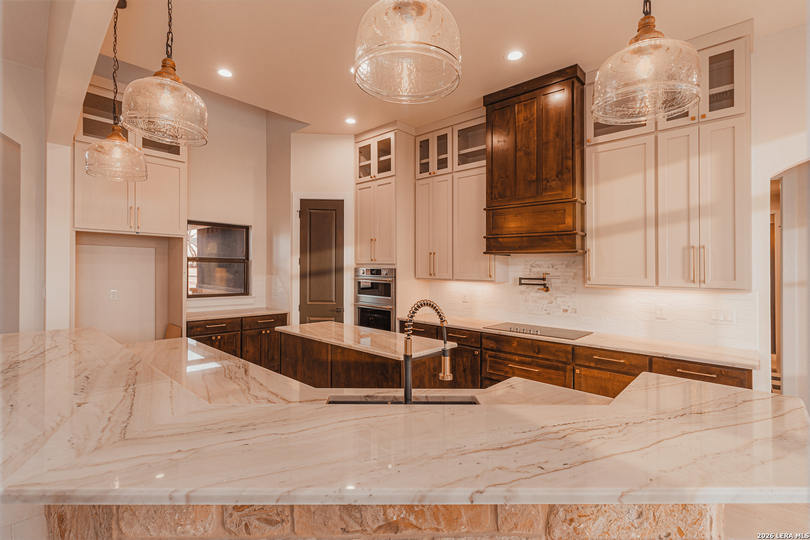 Newly Crafted with Exceptional Finishes! Situated on 1.13 Acres of Wooded Countryside in esteemed Eden Crossing, discover this Stunning New Home with 3-Car Garage, showcasing quality features & rustic elegance with modern flair. The Custom Iron Entry Door welcomes you! Expansive Great Room w/vaulted ceiling & center wood beam, stately stone fireplace flanked by rich wood bookshelves+cabinetry, w/Artisan-Hewn Pecan Mantel. Delightful Island Kitchen: Plentiful dual-tone custom cabinetry (including ceiling-height display cabinets w/glass doors), adorned by champagne bronze hardware, state-of-the-art KitchenAid appliances, specialty pot filler & professional-style sink faucet. Gorgeous Quartzite Counters Throughout! The thoughtful layout is designed to accommodate your lifestyle ... the master is located on one side of the home; an additional guest suite or 2nd master is privately situated at the back of the home; the remaining two bedrooms & 3rd full bath are down a separate hall. Master Retreat offers a luxury bath with free-standing tub & generous walk-in shower w/rain head, plus dual closets with one connecting directly to the laundry room. Quality & Style continue throughout the home: Designer Lighting + Fashionable Tile Accents + Ceiling Treatments of cedar beams, step-ups & crown moulding. Front Bedroom would be ideal Study/Office, with vaulted ceiling, wood-tile floor, and abundant natural light! Enjoy the countryside from the generous back patio, while appreciating the convenience of being minutes from the amenities of La Vernia and within 35 minutes to central San Antonio. The Eden Crossing community includes a wonderful neighborhood park with pond & paved walking trails. Fiber Optic Internet available! 1-2-10 year Bonded Warranty.