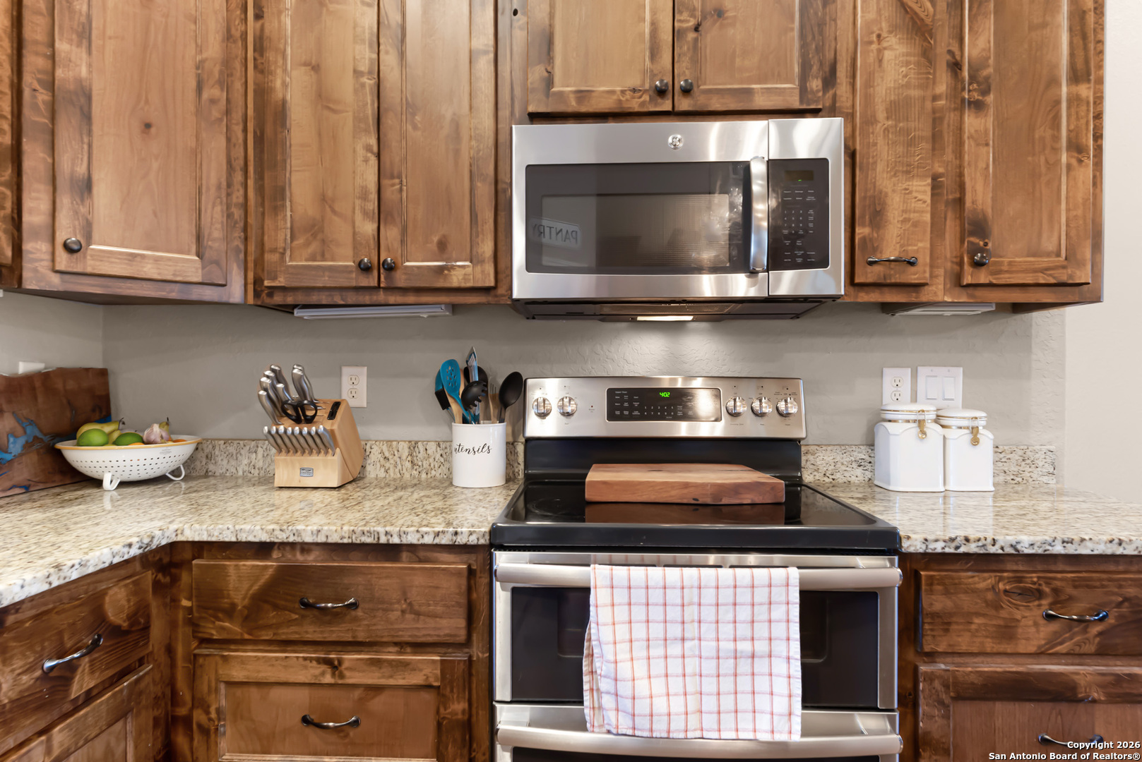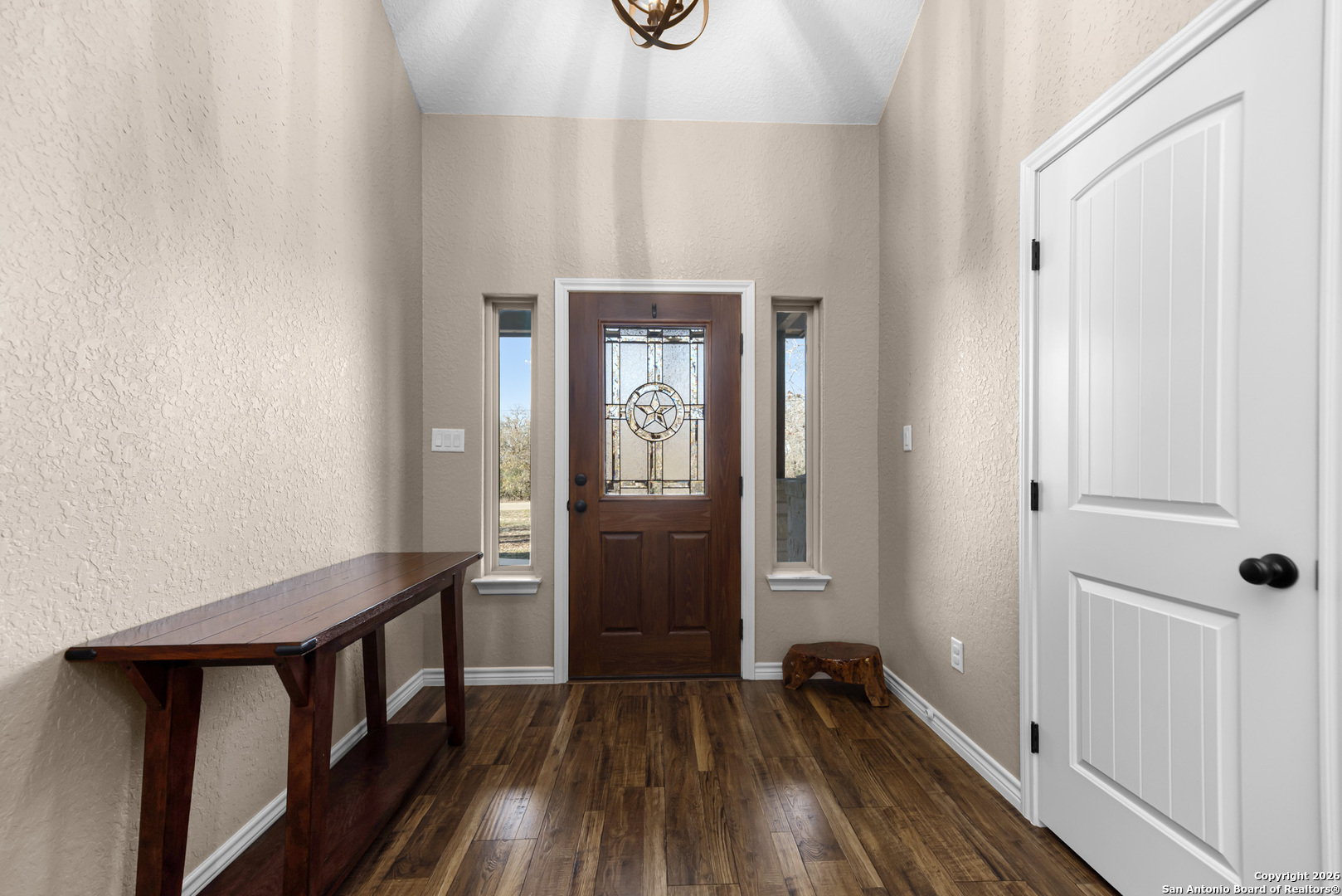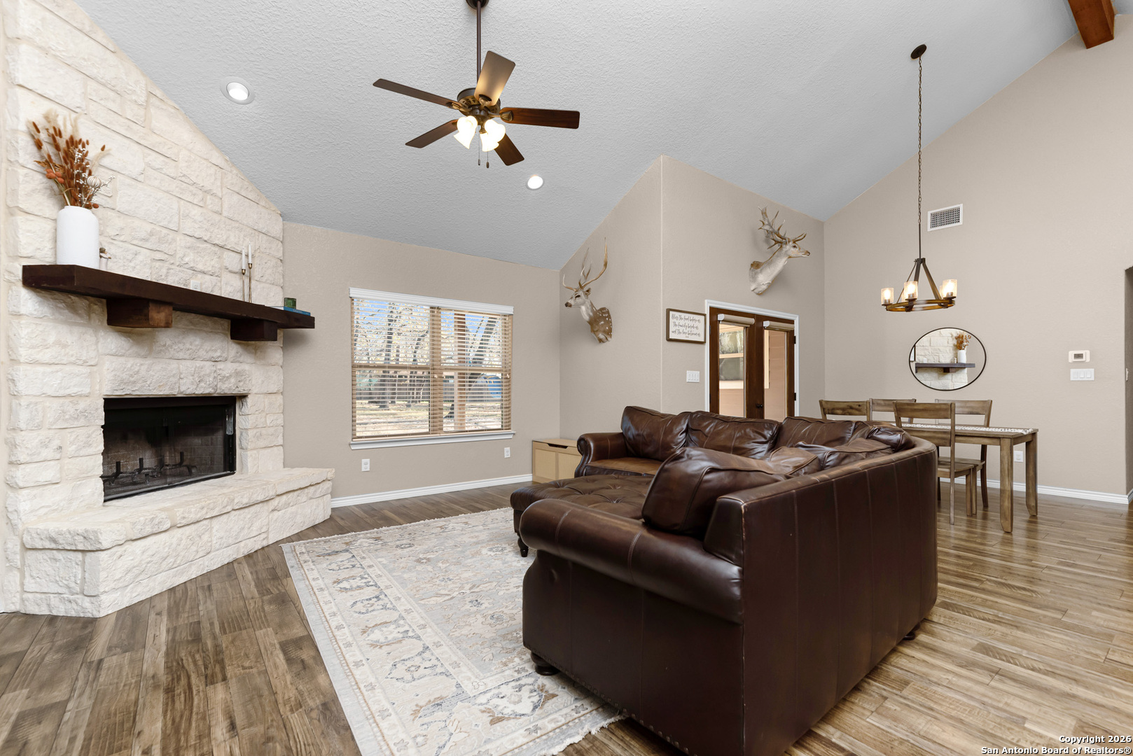 Gorgeous single level 3bd/2ba home on over an acre in La Vernia ISD. Fabulous chef style kitchen with a great flow, tons of storage, walk-in pantry and lovely granite counter tops. Hug granite island provides ample counter space with lots of storage and breakfast bar. Open concept living with lots of space! Cozy floor to ceiling rock woo-burning fireplace. Wood look ceramic tile flooring and plush carpet in the bedrooms. Giant master suite with large walk-in closet, master bath with tile tub/shower surround and granite counters. Large secondary bedrooms with lots of closet space and tons of natural light. Laundry room with sink and cabinet storage space. Media/desk area off of kitchen with granite counter and storage cabinets. Spacious 2 car, attached garage and plenty of space to park your boat, RV or trailers. The amazingly beautiful 1.04 acre lot is covered with mature trees and offers ample privacy and lots of shade. One street subdivision with no HOA! Call today for more info!!!