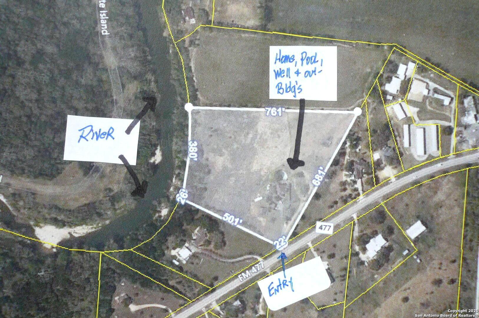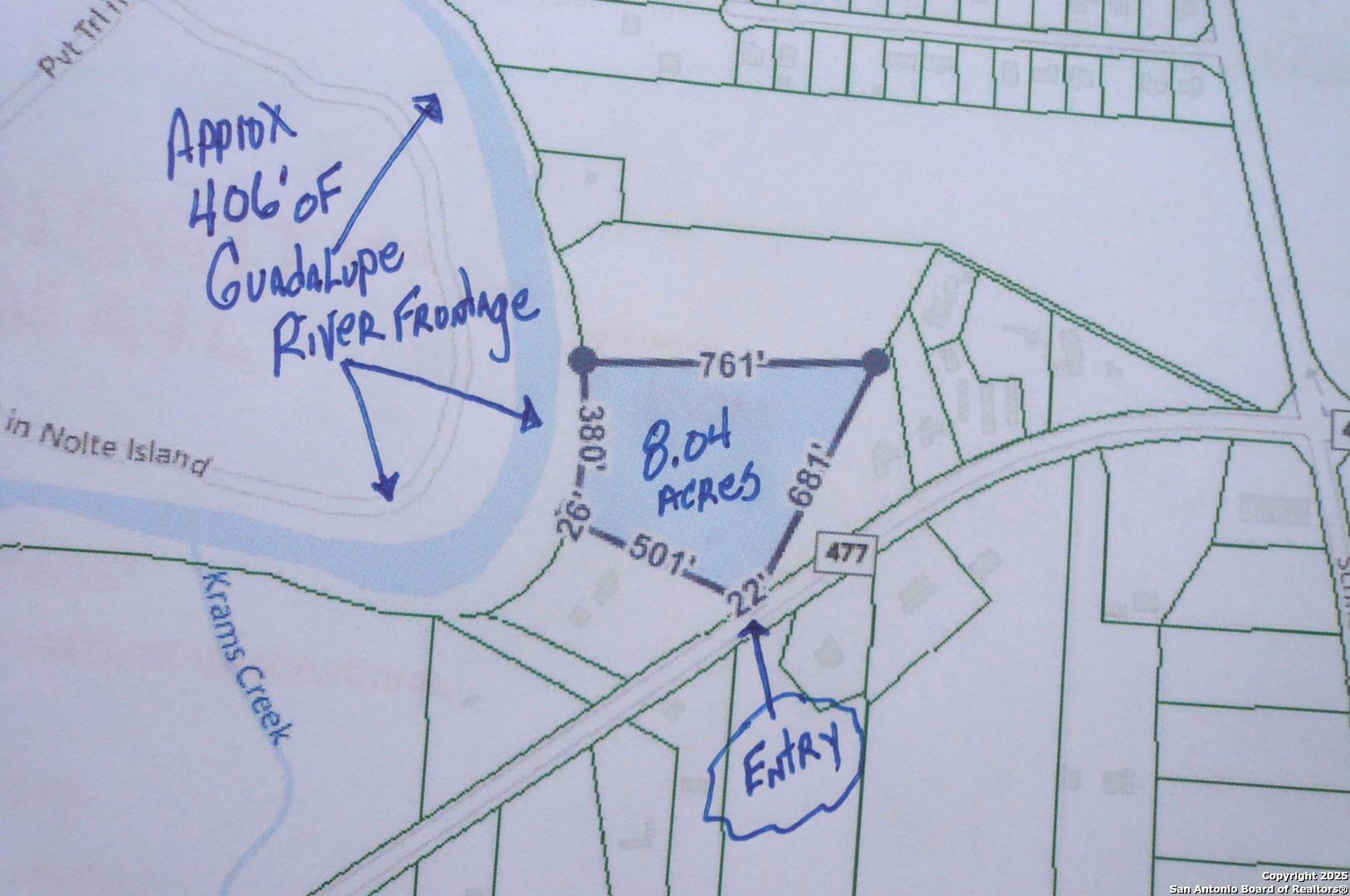 Approx 2000sf "4-Side Brick Hm" that had "A Major Renovation/Update" on 8.04 ACRES that is Mostly Fenced w/ 406' of Guadalupe River Frontage..Lg Inground Pool..Private Water Well w/lots of Scattered faucets & Lg Pond that needs to be cleaned & Re-Filled from the Well PLUS There is a Rural Water Meter..Gated Entry w/Auto Gate Opener..4-Out Bldg's (600sf Animal Shelter,230sf,126sf & 140sf Storage Bldg/Workshop) 550sf Carport.. Electrical RV Connections..Kinecto Water Softener.Upgraded A/C Unit..New Roof ...Raingutters & LOTS of Mature Trees.. 1.5 Story Hm w/3-Bd & 2 Ba (Downstairs) is 2-Living Areas/Gm Room,Main Bd & Ba that has Jetted Walk in Therapy Type Tub,2-Sink Vanities & 2-Walk in Closets..Island Kit w/B'fast Bar & Dining Area,..Wood Burning Fireplace & Outside Access to a Covered Patio (Upstairs) is an Approx 12x10 Loft/Study w/Blt-in Bookcases,2-Bedrooms w/Walk in closets & Full bathroom... .Come out and Take a Look..Country living on 8-Acres w/No Restrictions or City Taxes in Guadalupe County..Low 1.4% tax rate..CALL 4 DETAILED PACKET OF INFO...