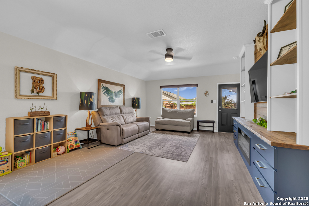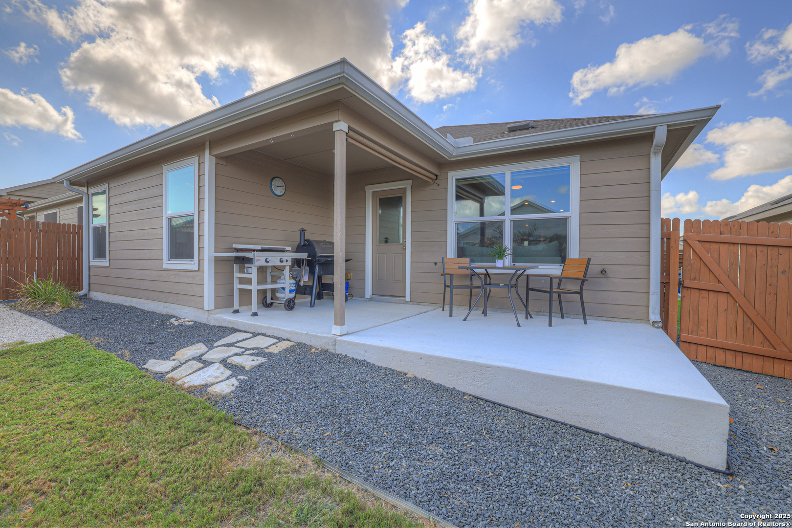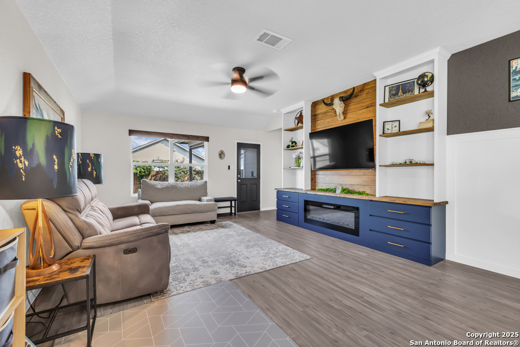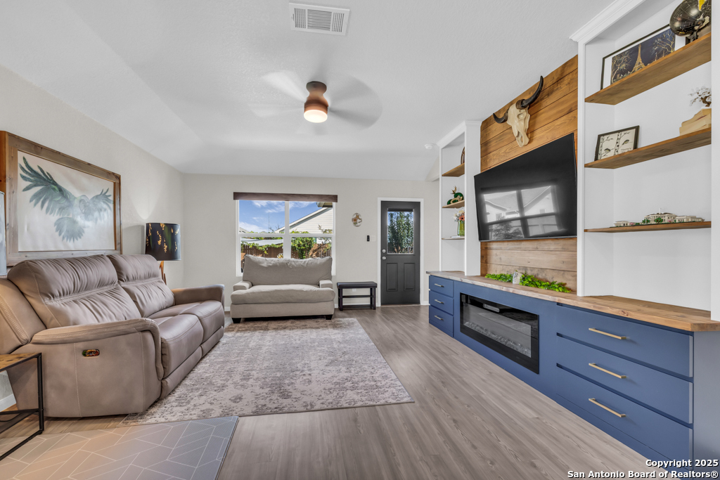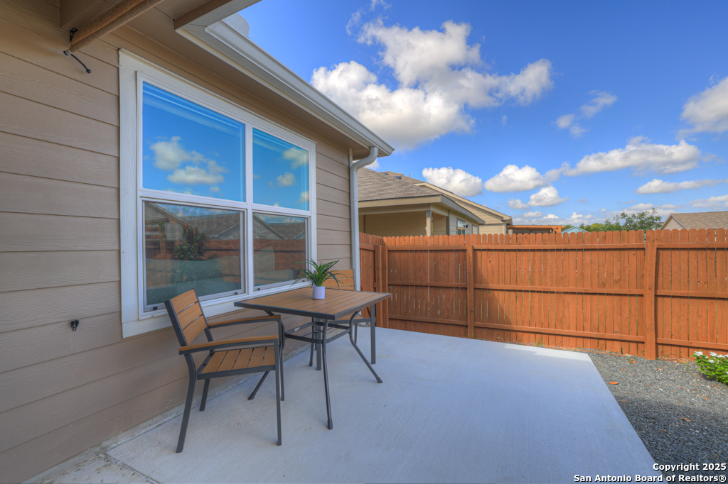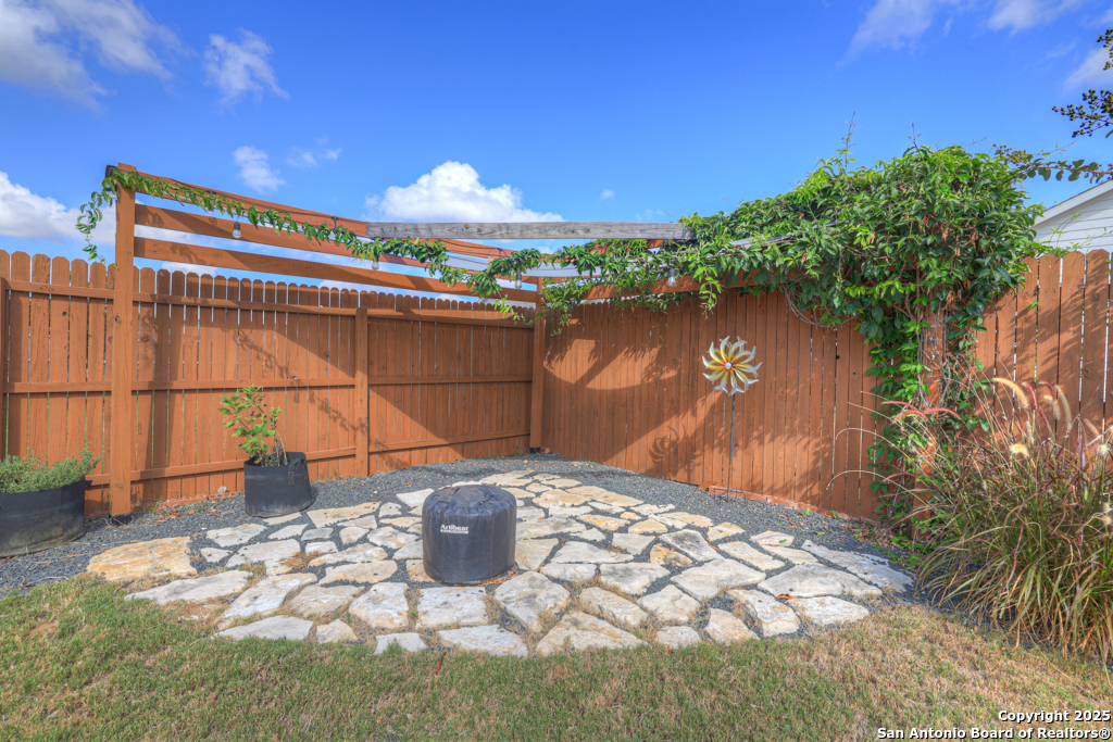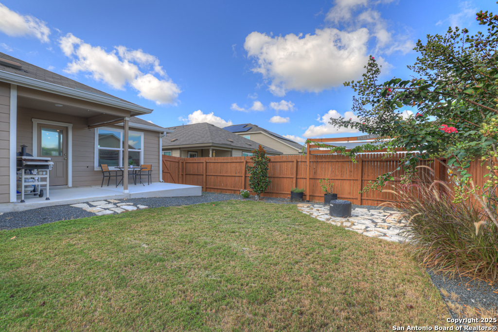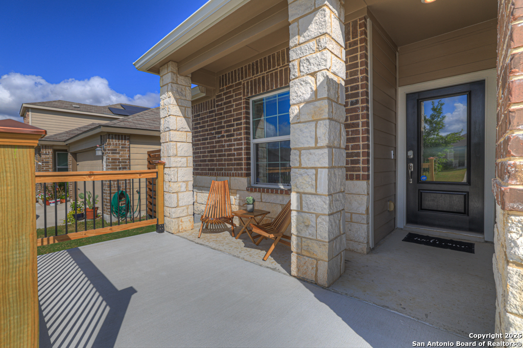 Located on a low-traffic street in the sought-after Voss Farms community, this beautiful one-story home is a true standout! Thoughtful custom features and built-in details-both inside and out-set this home apart from standard tract homes, giving it a unique character and warmth. From the moment you arrive, the inviting curb appeal and pride of ownership are immediately apparent. Step inside to discover an open-concept layout enhanced by high-quality finishes and personal touches that make the home feel anything but ordinary. A versatile front room offers flexible use as a home office, formal dining area, or flexible living space. The spacious primary suite includes an en-suite bath with dual vanities, a walk-in shower, and a large walk-in closet. Two additional bedrooms are generously sized and share a full bathroom. Out back, enjoy your private retreat featuring an extended patio, flagstone seating area, and raised garden beds-perfect for relaxing, entertaining, or growing your own herbs and vegetables. Residents of Voss Farms enjoy access to top-notch community amenities, including a clubhouse, two pools, a playground, walking trails, and community events throughout the year. Conveniently located near shopping, dining, and entertainment in New Braunfels, this home offers an ideal blend of comfort, style, and location. Schedule your showing today to experience the charm and distinction of this exceptional home!