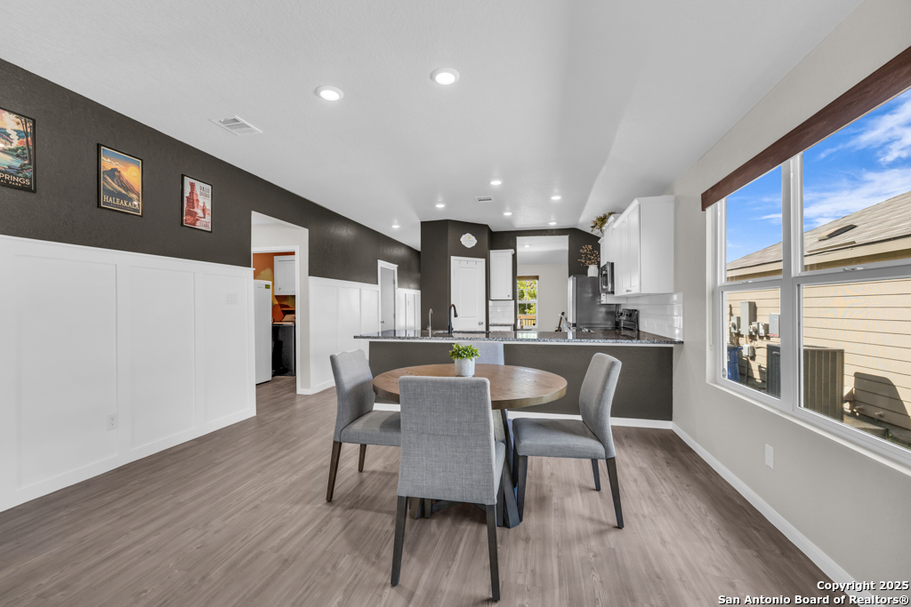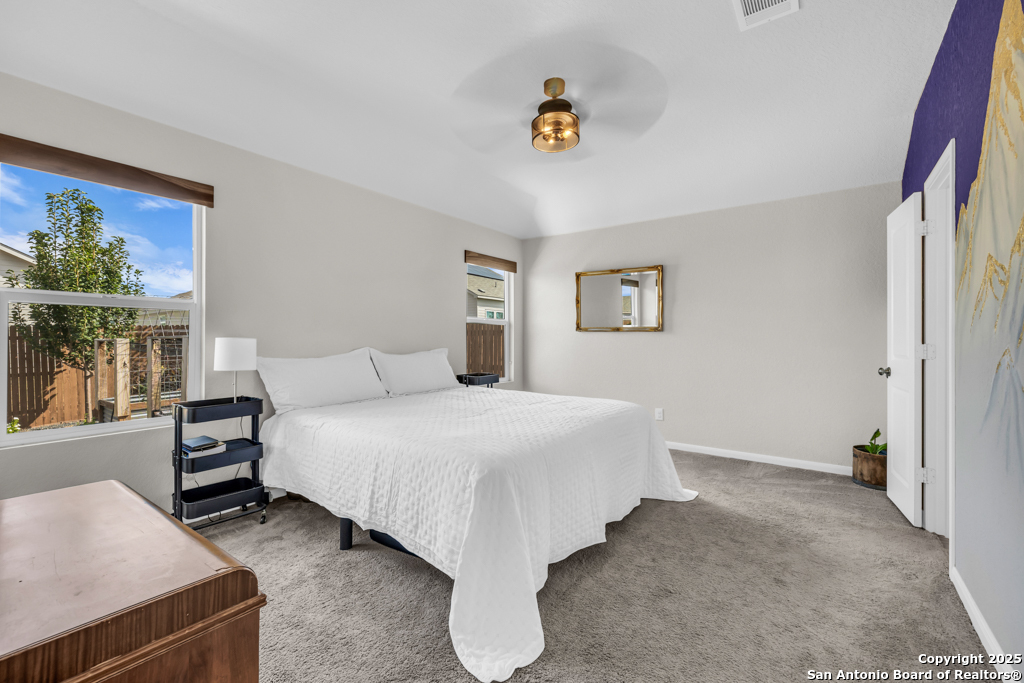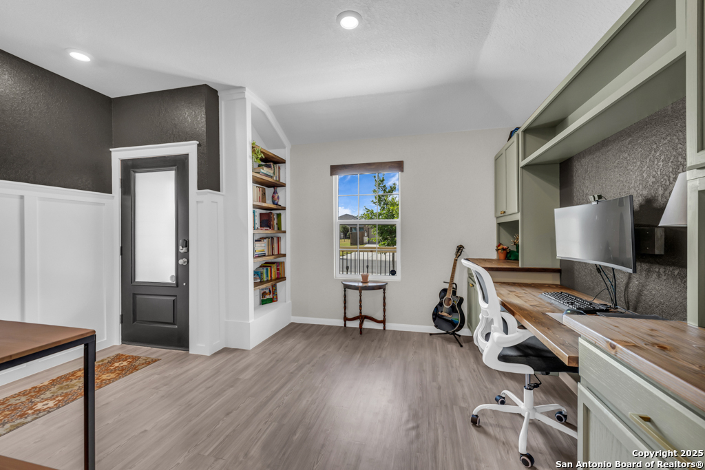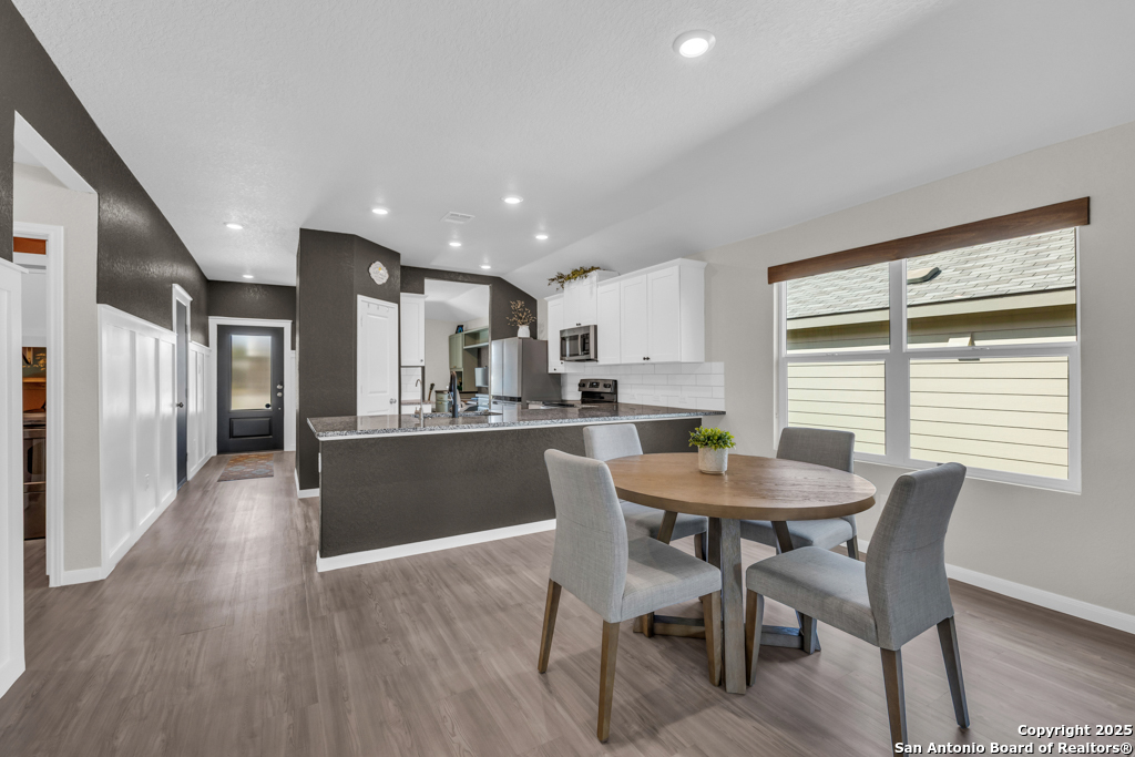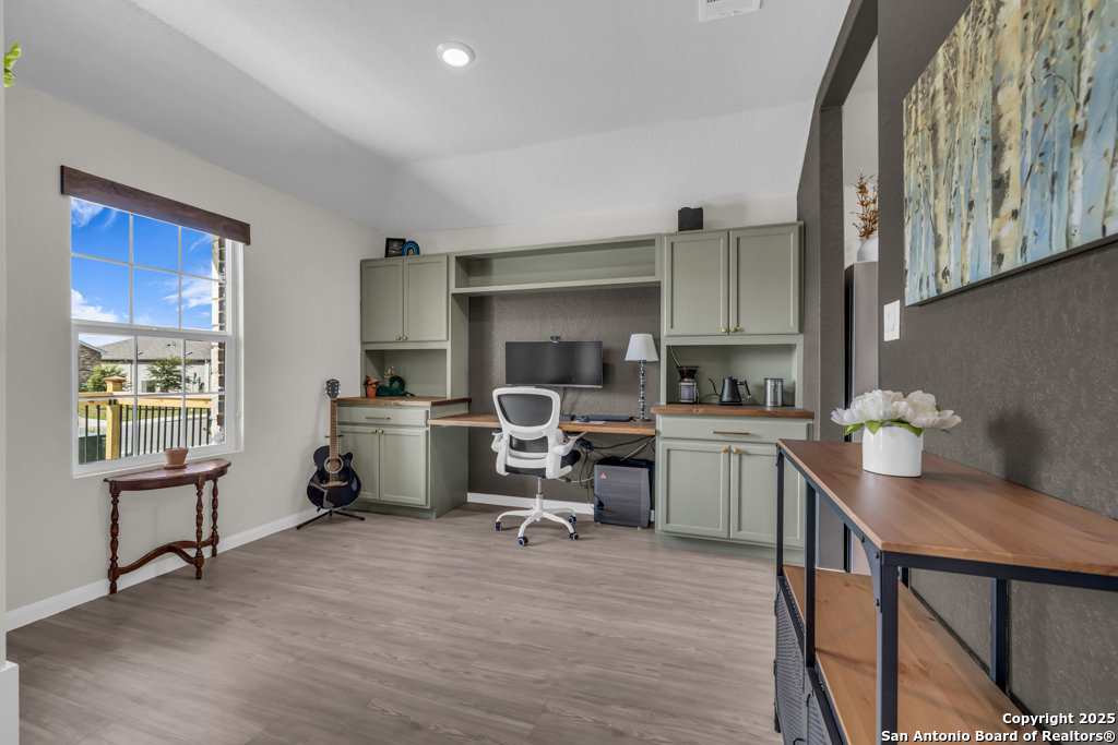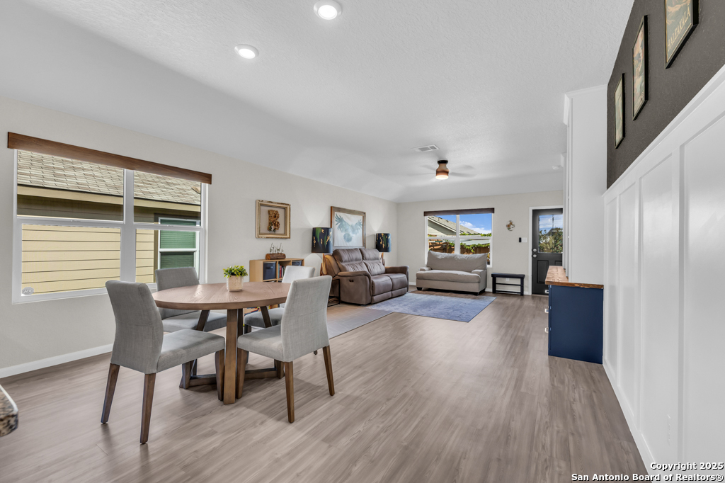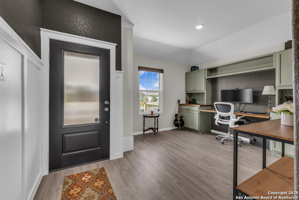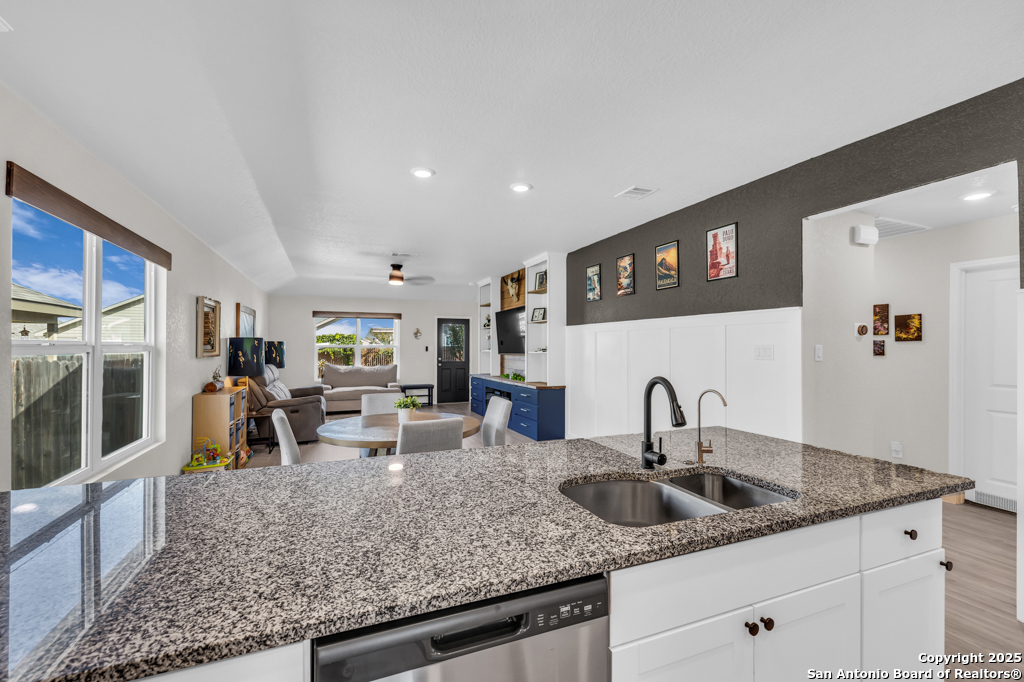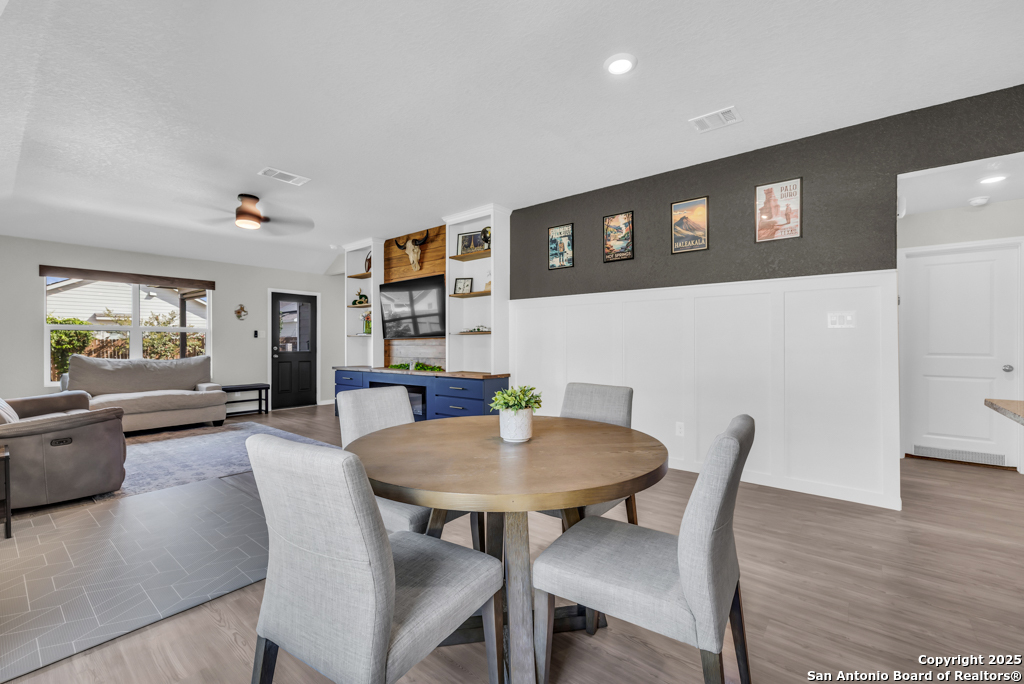 Located on a low-traffic street in the sought-after Voss Farms community, this beautiful one-story home is a true standout! Thoughtful custom features and built-in details-both inside and out-set this home apart from standard tract homes, giving it a unique character and warmth. From the moment you arrive, the inviting curb appeal and pride of ownership are immediately apparent. Step inside to discover an open-concept layout enhanced by high-quality finishes and personal touches that make the home feel anything but ordinary. A versatile front room offers flexible use as a home office, formal dining area, or flexible living space. The spacious primary suite includes an en-suite bath with dual vanities, a walk-in shower, and a large walk-in closet. Two additional bedrooms are generously sized and share a full bathroom. Out back, enjoy your private retreat featuring an extended patio, flagstone seating area, and raised garden beds-perfect for relaxing, entertaining, or growing your own herbs and vegetables. Residents of Voss Farms enjoy access to top-notch community amenities, including a clubhouse, two pools, a playground, walking trails, and community events throughout the year. Conveniently located near shopping, dining, and entertainment in New Braunfels, this home offers an ideal blend of comfort, style, and location. Schedule your showing today to experience the charm and distinction of this exceptional home!