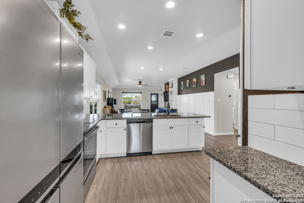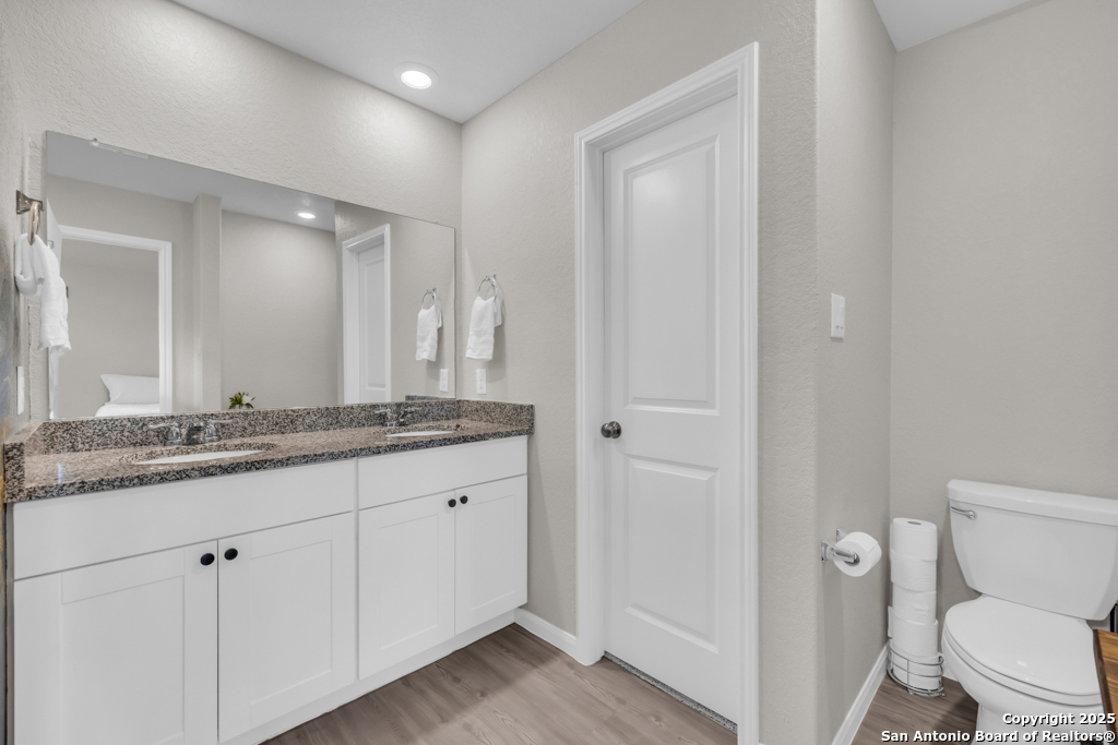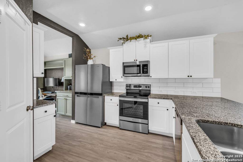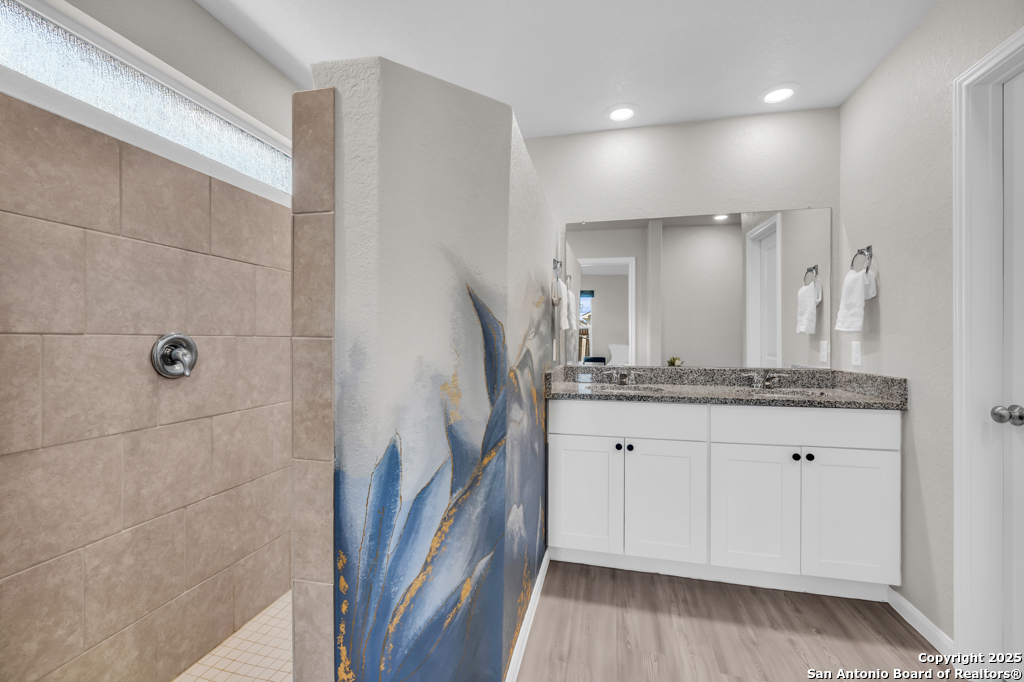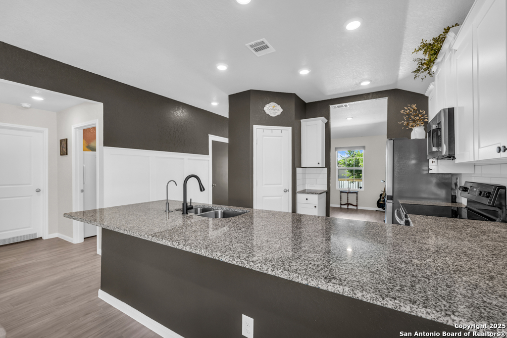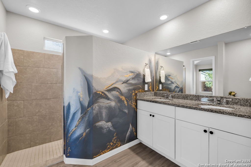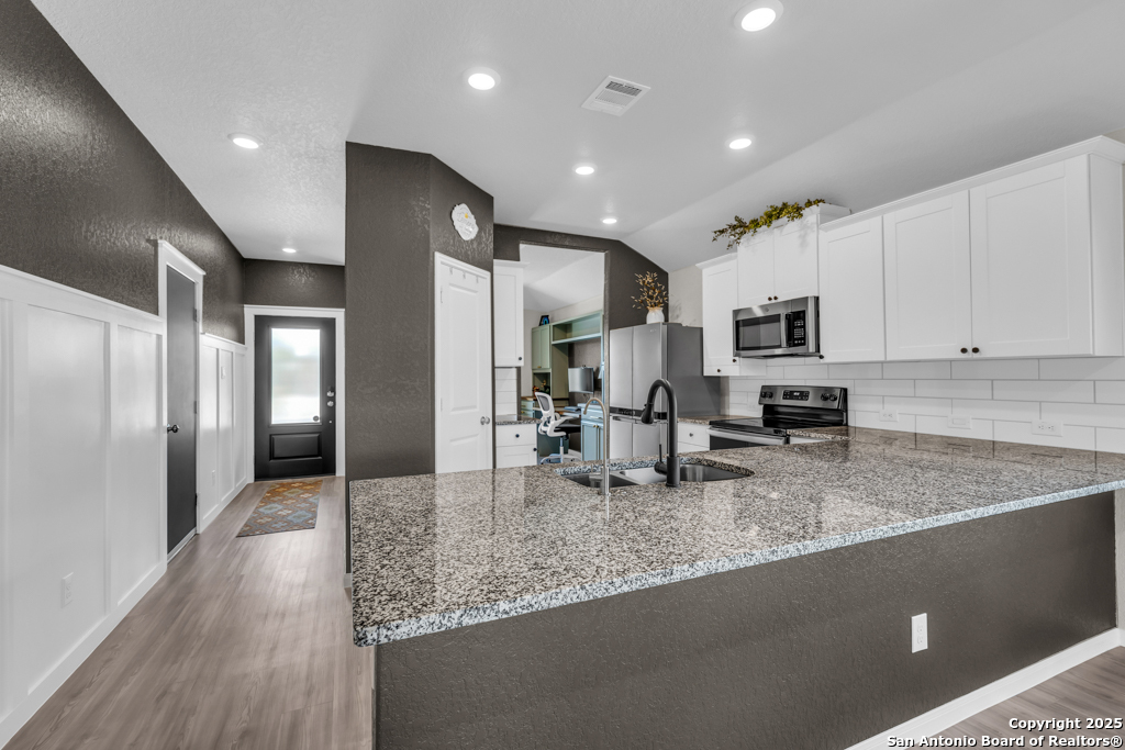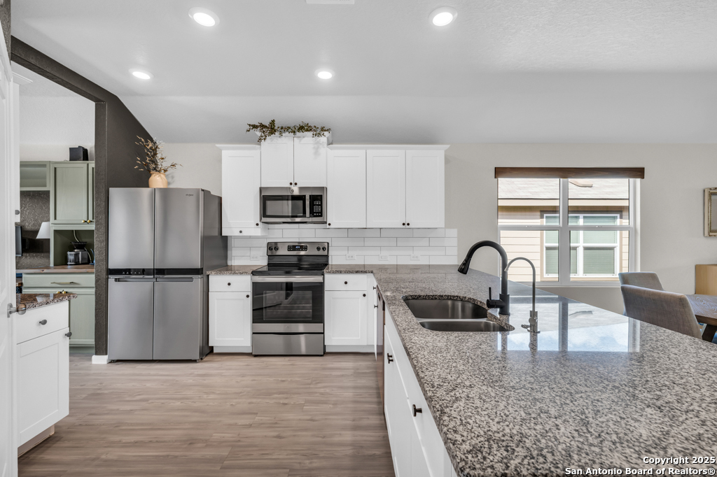 Located on a low-traffic street in the sought-after Voss Farms community, this beautiful one-story home is a true standout! Thoughtful custom features and built-in details-both inside and out-set this home apart from standard tract homes, giving it a unique character and warmth. From the moment you arrive, the inviting curb appeal and pride of ownership are immediately apparent. Step inside to discover an open-concept layout enhanced by high-quality finishes and personal touches that make the home feel anything but ordinary. A versatile front room offers flexible use as a home office, formal dining area, or flexible living space. The spacious primary suite includes an en-suite bath with dual vanities, a walk-in shower, and a large walk-in closet. Two additional bedrooms are generously sized and share a full bathroom. Out back, enjoy your private retreat featuring an extended patio, flagstone seating area, and raised garden beds-perfect for relaxing, entertaining, or growing your own herbs and vegetables. Residents of Voss Farms enjoy access to top-notch community amenities, including a clubhouse, two pools, a playground, walking trails, and community events throughout the year. Conveniently located near shopping, dining, and entertainment in New Braunfels, this home offers an ideal blend of comfort, style, and location. Schedule your showing today to experience the charm and distinction of this exceptional home!