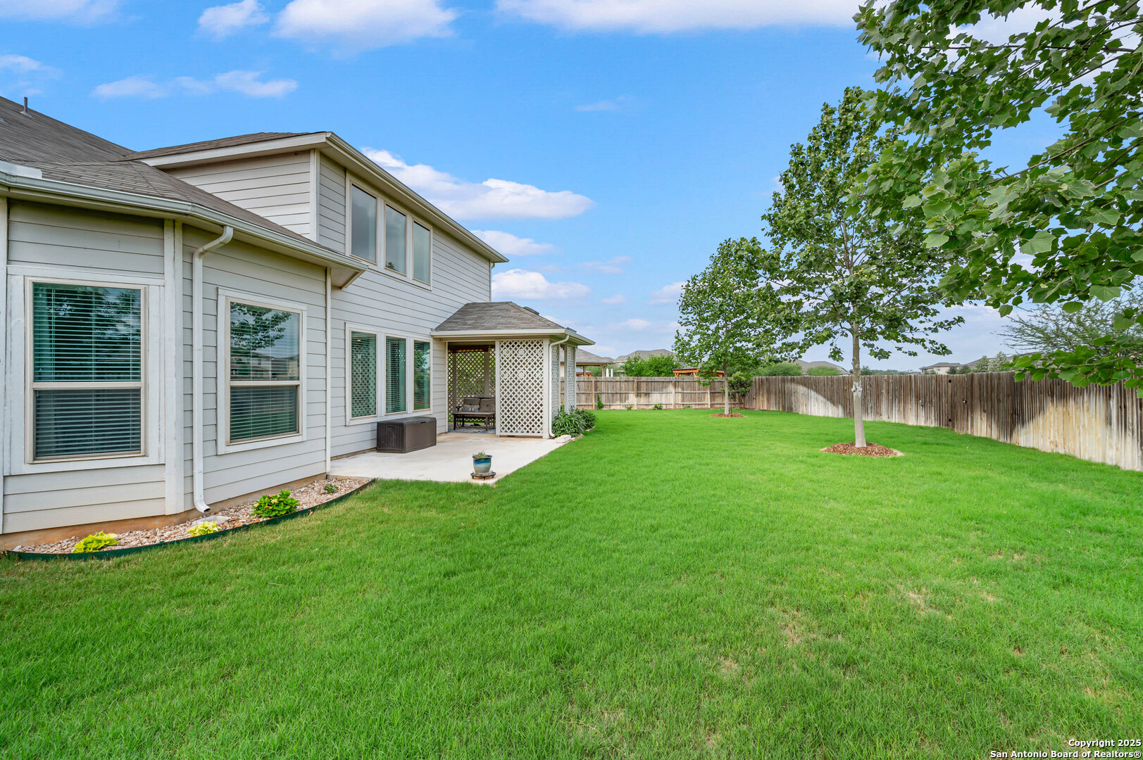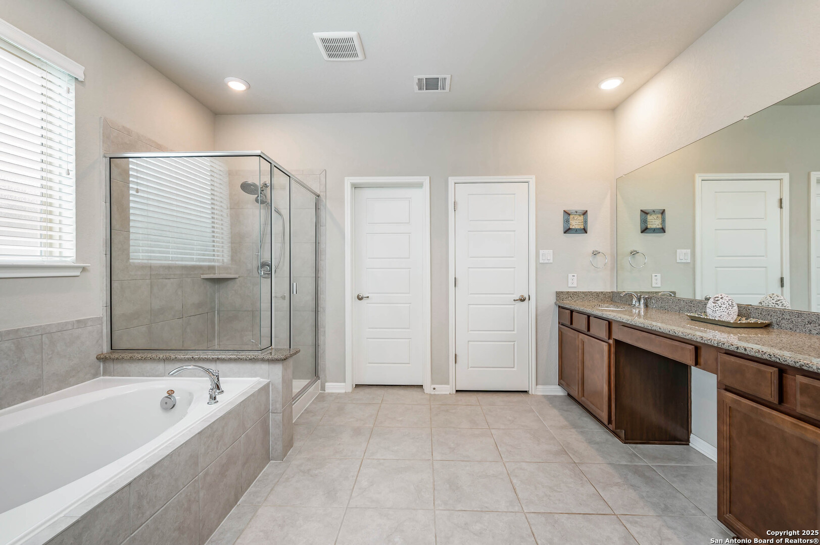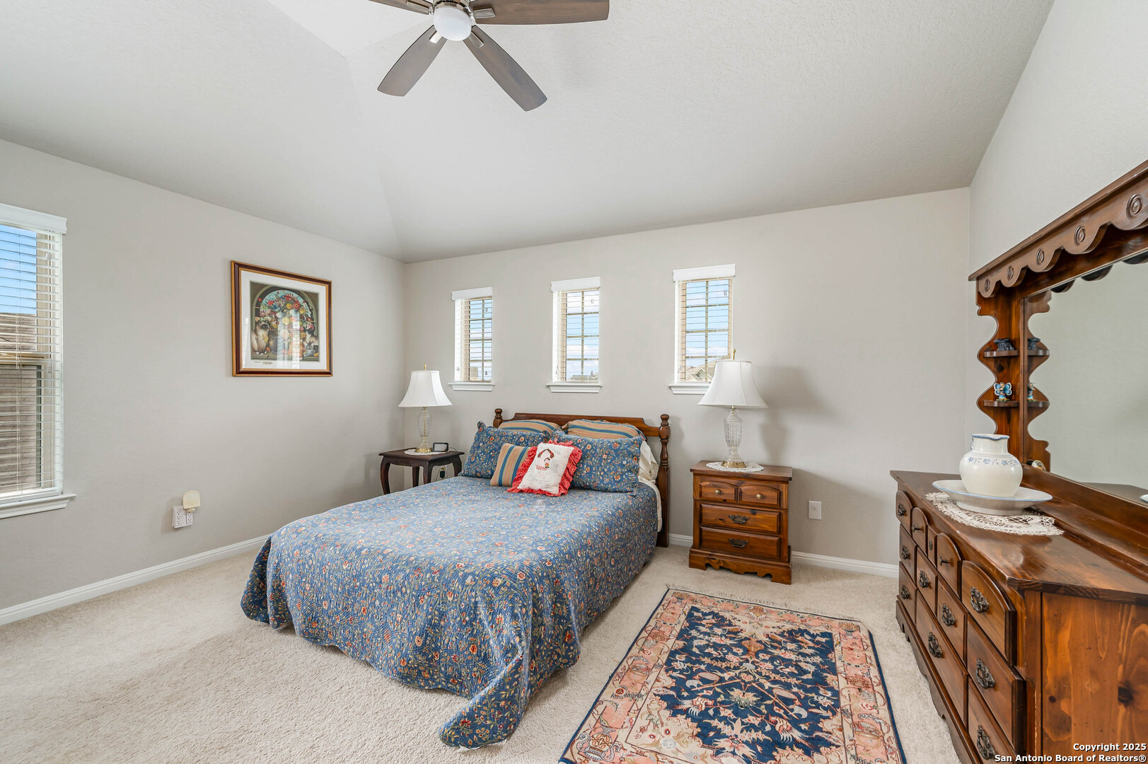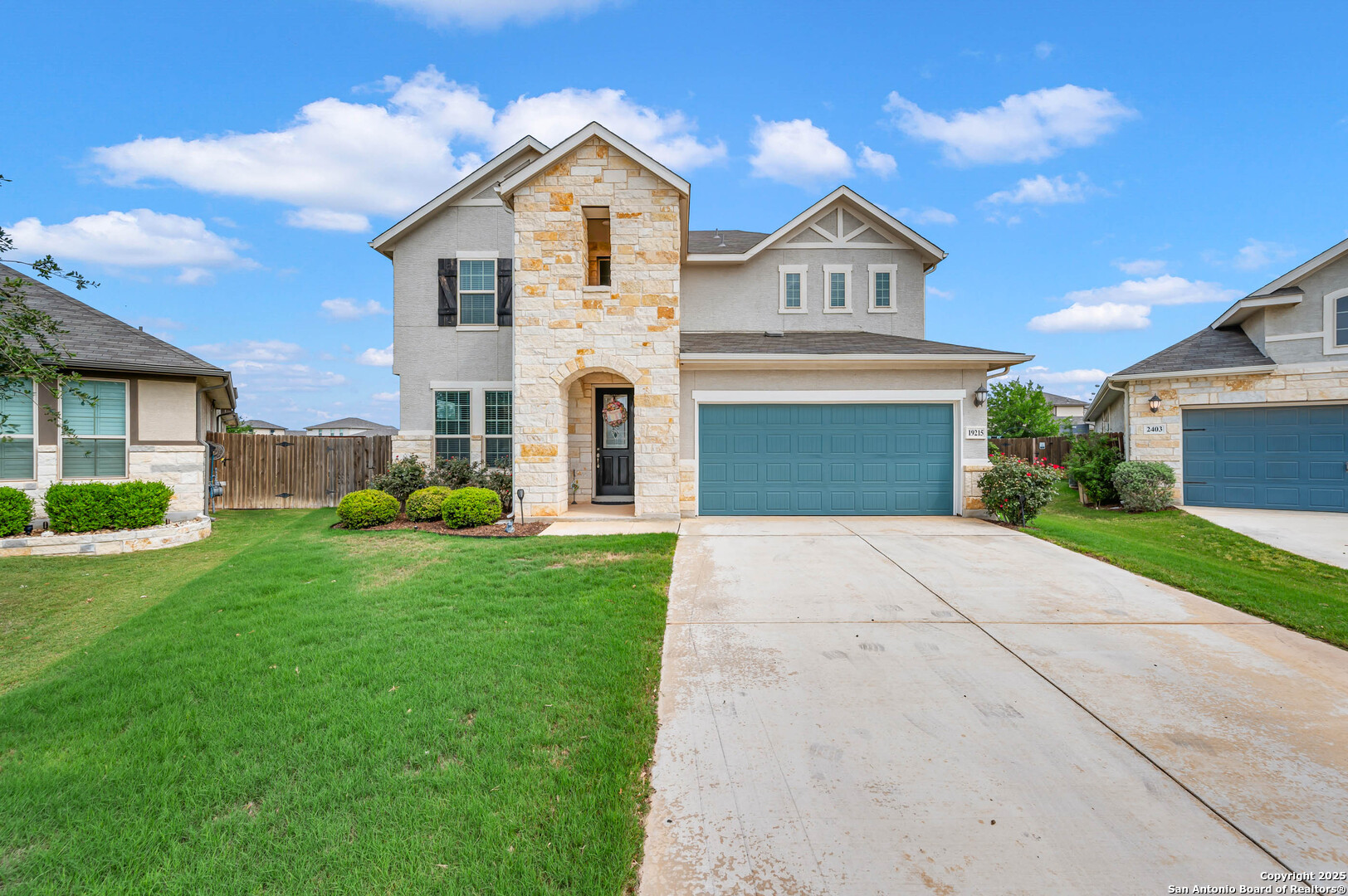 Welcome to 19215 Rose Cove! Where Model-Home Perfection Meets Everyday Living! This stunning 4-bedroom, 3.5-bath home in the coveted Sienna neighborhood offers the rare combination of light, space, and style, all set on a premium greenbelt OVERSIZED cul-de-sac lot. Lightly lived in and meticulously maintained, it feels as fresh and flawless as a builder's model! Energy efficiency features including spray foam insulation and low e windows. Dual primary bedrooms (upstairs and down) for extra privacy! The extra-large kitchen is a true showpiece, with gleaming granite countertops, abundant cabinetry, and a charming built-in productivity desk perfect for your morning coffee or afternoon emails. Flooded with amazing natural light, the open-concept living spaces flow beautifully, anchored by rich wood floors, a formal dining room for gatherings, and a fabulous mudroom/drop zone right off the garage. Step outside to your covered patio and expansive outdoor entertaining area, where the greenbelt views create a sense of privacy and calm - perfect for relaxing evenings or weekend get-togethers. Best of all, you'll love the fantastic neighborhood amenities, including a sparkling community pool, playgrounds, and green spaces, all designed for fun, relaxation, and connection. With all the bells and whistles, plus move-in-ready condition, this home checks every box. Top-rated NEISD schools, a highly desirable neighborhood, and a setting that feels tucked away yet close to everything - it's the one you've been waiting for!