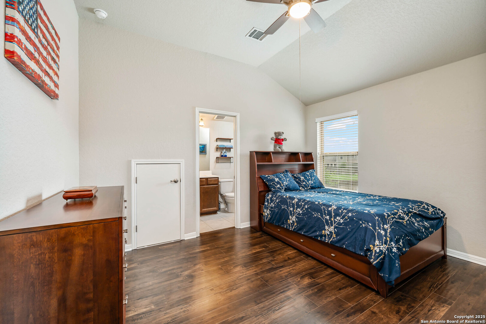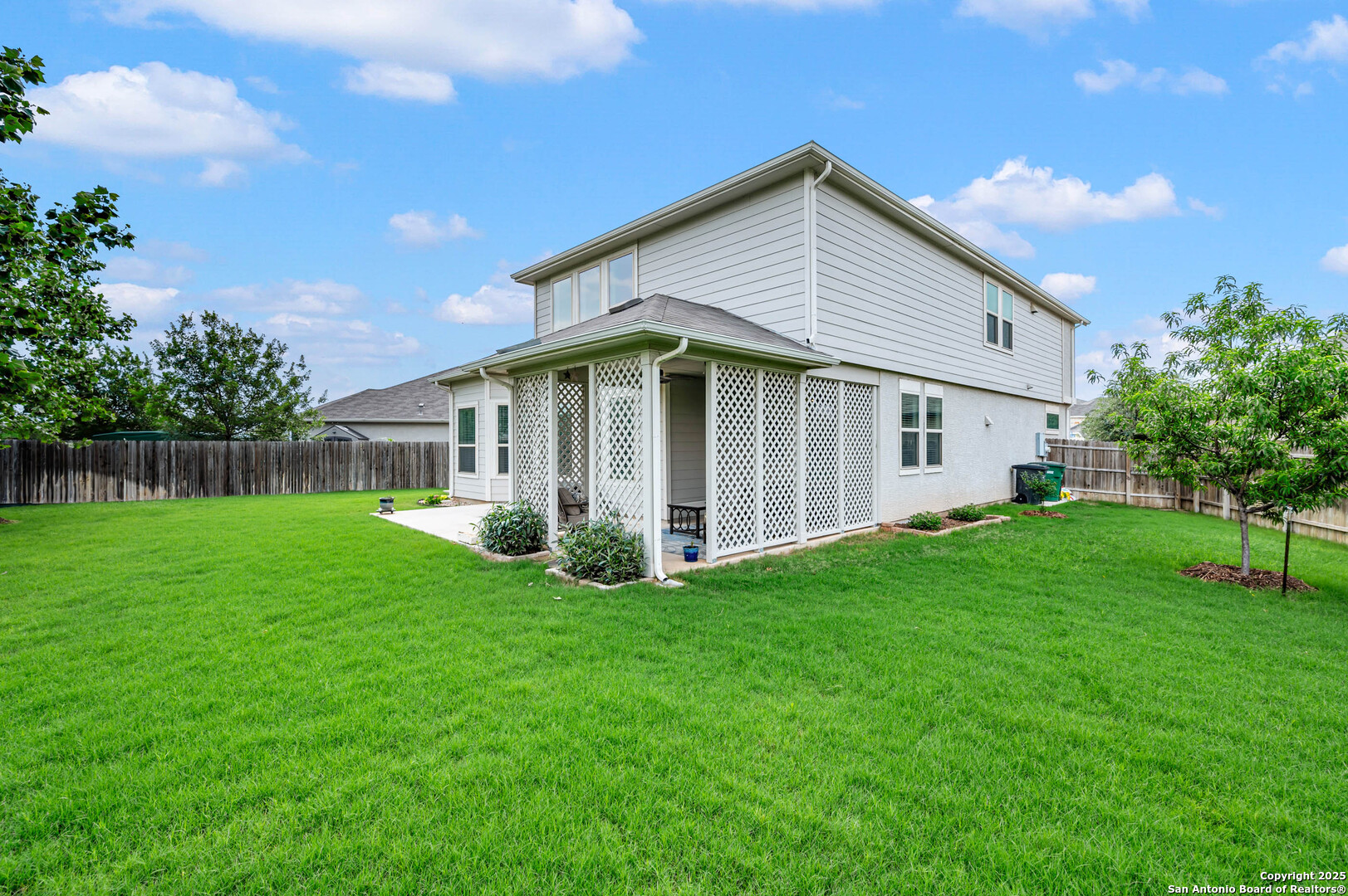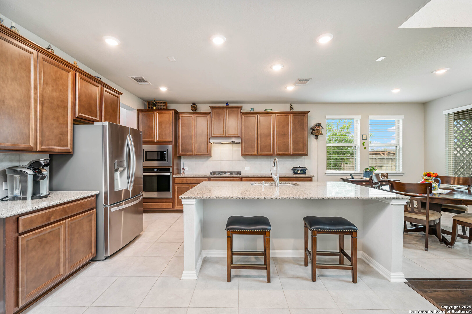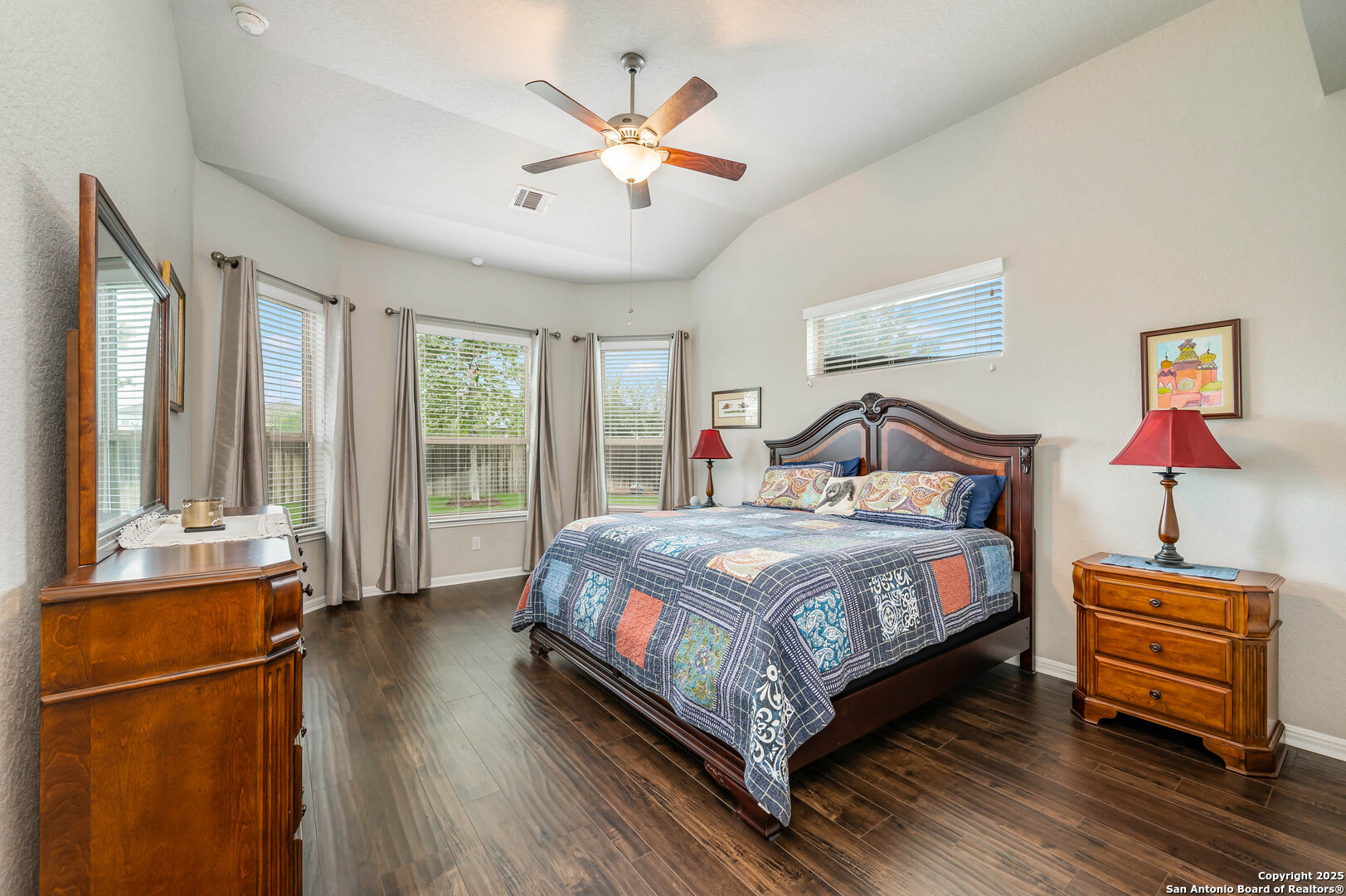 Welcome to 19215 Rose Cove! Where Model-Home Perfection Meets Everyday Living! This stunning 4-bedroom, 3.5-bath home in the coveted Sienna neighborhood offers the rare combination of light, space, and style, all set on a premium greenbelt OVERSIZED cul-de-sac lot. Lightly lived in and meticulously maintained, it feels as fresh and flawless as a builder's model! Energy efficiency features including spray foam insulation and low e windows. Dual primary bedrooms (upstairs and down) for extra privacy! The extra-large kitchen is a true showpiece, with gleaming granite countertops, abundant cabinetry, and a charming built-in productivity desk perfect for your morning coffee or afternoon emails. Flooded with amazing natural light, the open-concept living spaces flow beautifully, anchored by rich wood floors, a formal dining room for gatherings, and a fabulous mudroom/drop zone right off the garage. Step outside to your covered patio and expansive outdoor entertaining area, where the greenbelt views create a sense of privacy and calm - perfect for relaxing evenings or weekend get-togethers. Best of all, you'll love the fantastic neighborhood amenities, including a sparkling community pool, playgrounds, and green spaces, all designed for fun, relaxation, and connection. With all the bells and whistles, plus move-in-ready condition, this home checks every box. Top-rated NEISD schools, a highly desirable neighborhood, and a setting that feels tucked away yet close to everything - it's the one you've been waiting for!