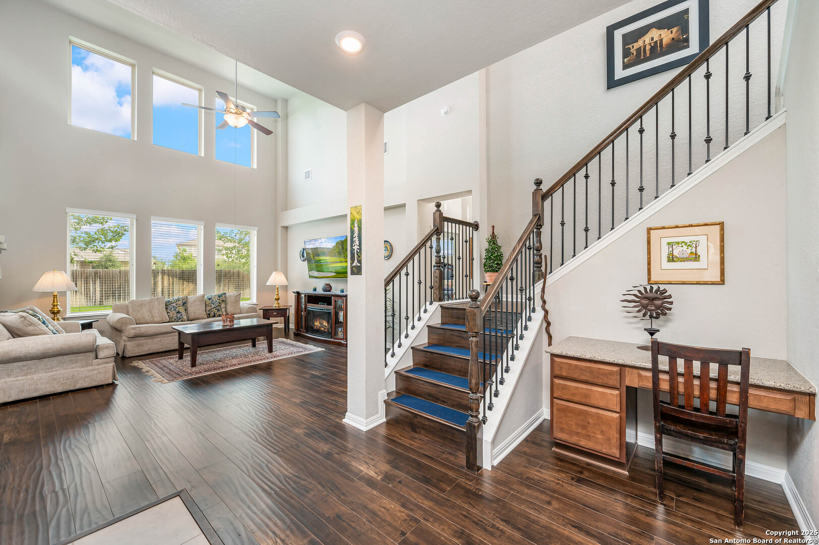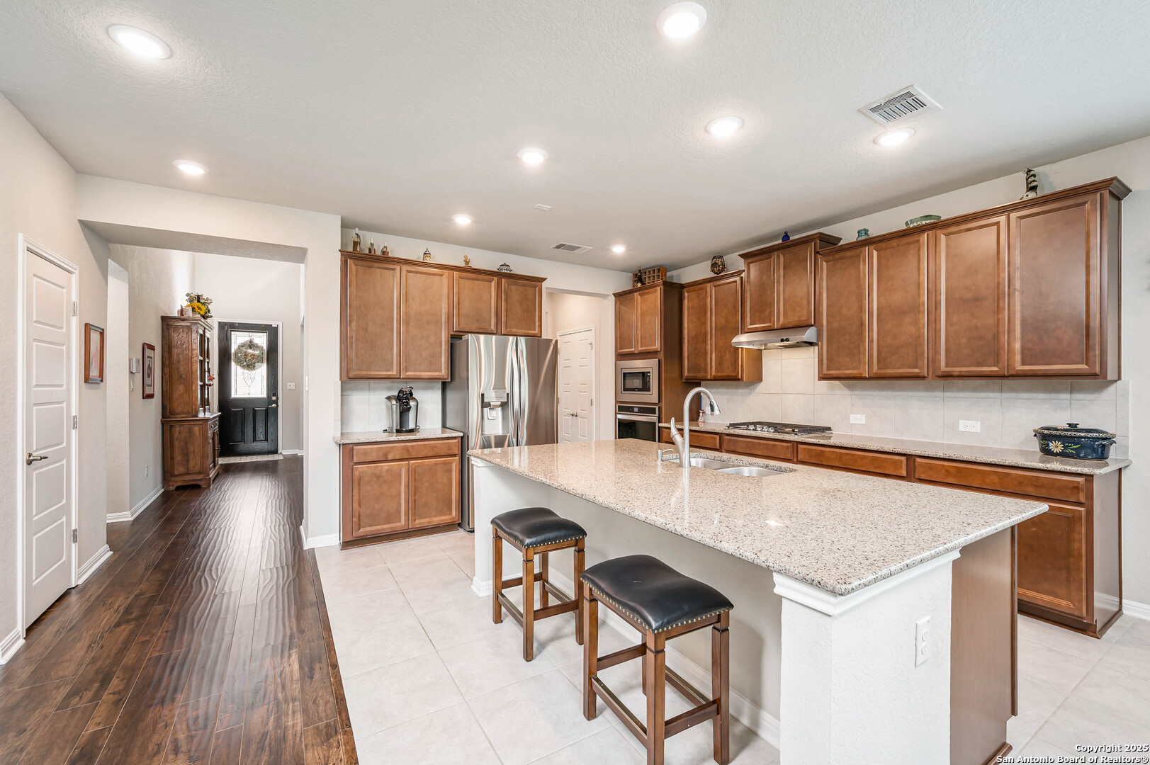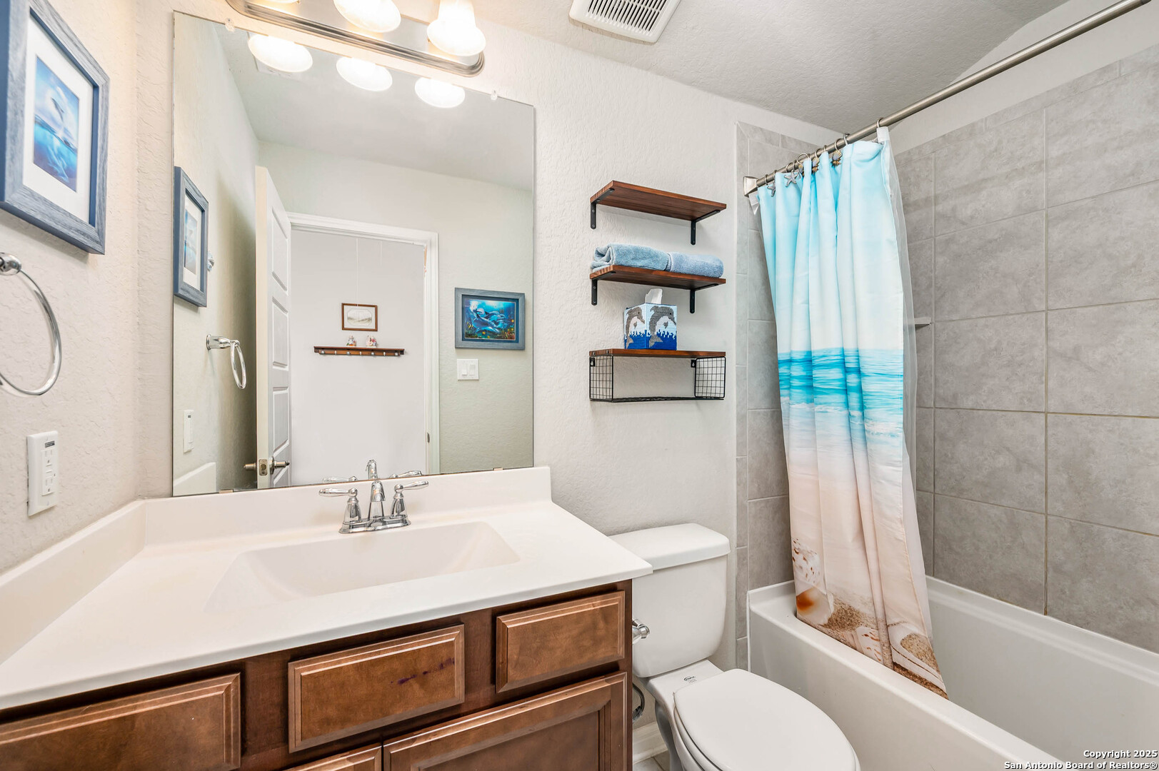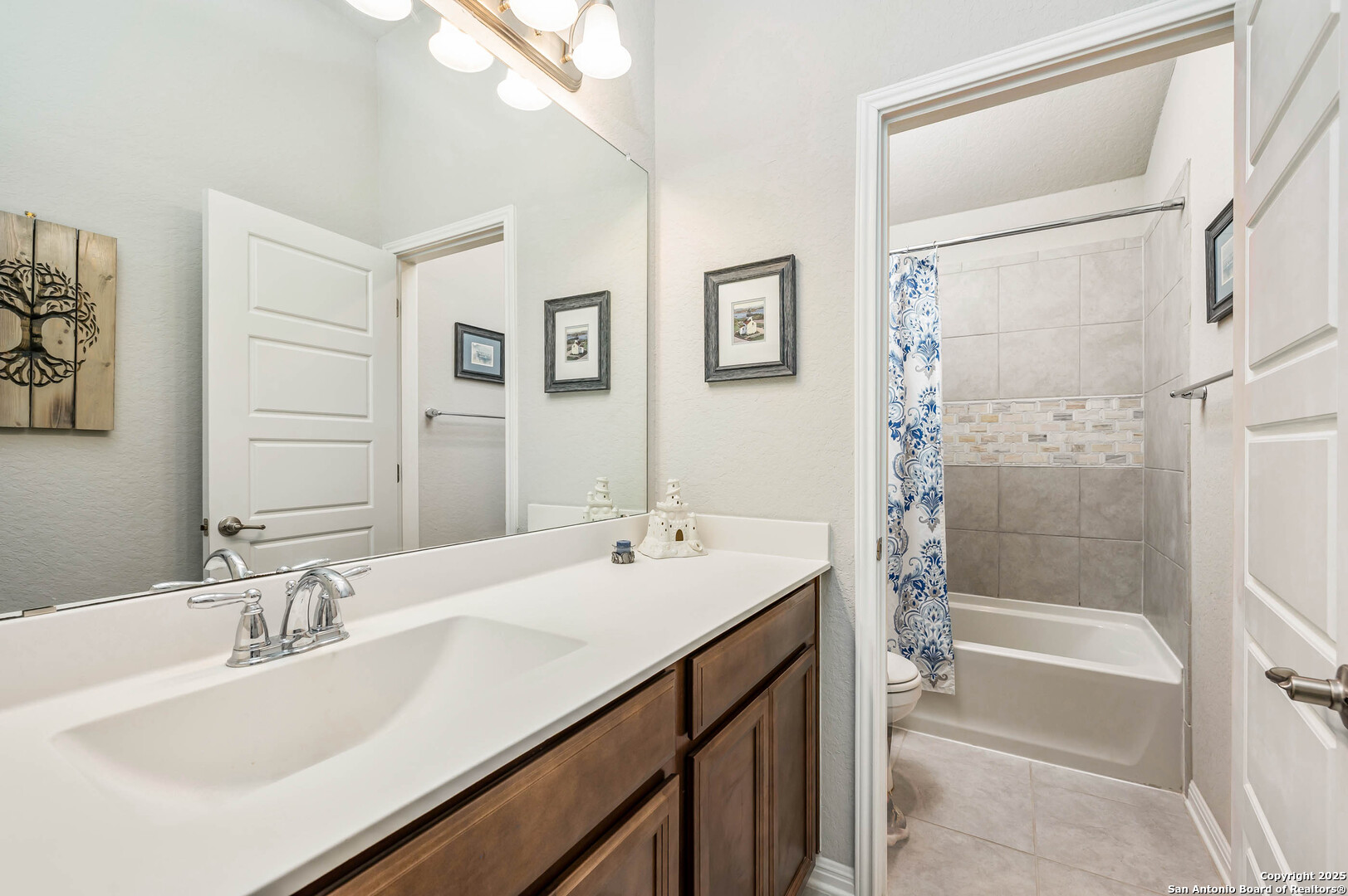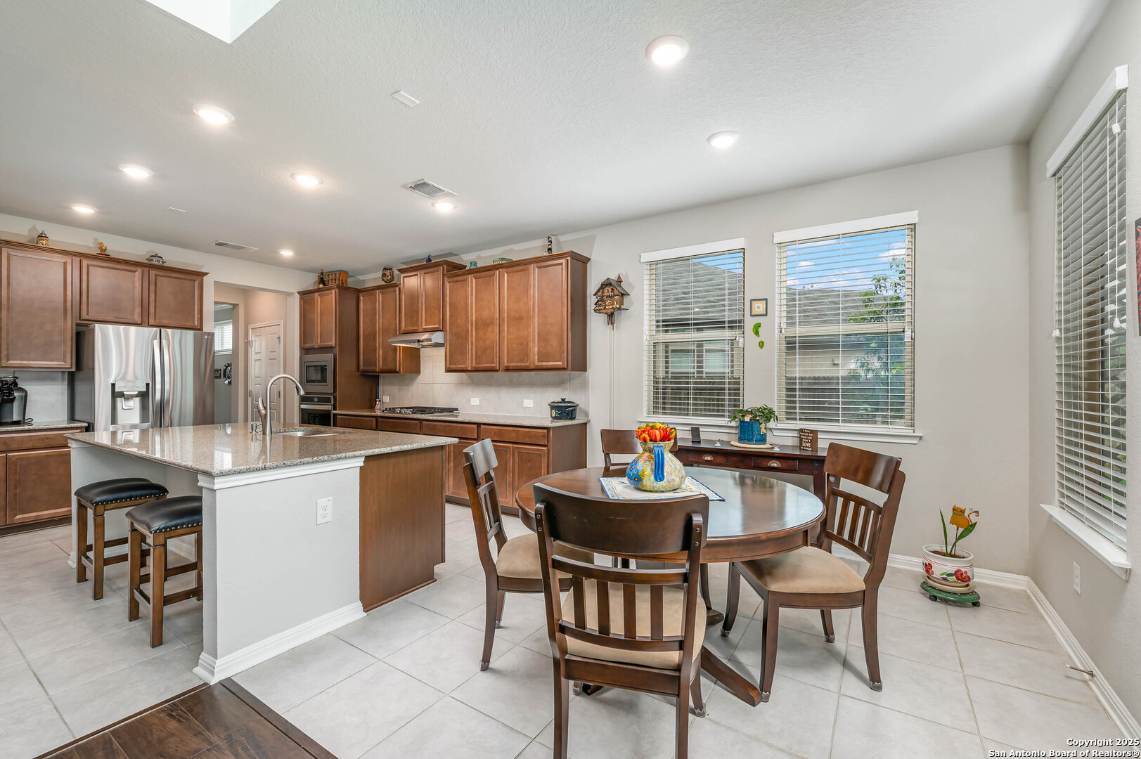 Welcome to 19215 Rose Cove! Where Model-Home Perfection Meets Everyday Living! This stunning 4-bedroom, 3.5-bath home in the coveted Sienna neighborhood offers the rare combination of light, space, and style, all set on a premium greenbelt OVERSIZED cul-de-sac lot. Lightly lived in and meticulously maintained, it feels as fresh and flawless as a builder's model! Energy efficiency features including spray foam insulation and low e windows. Dual primary bedrooms (upstairs and down) for extra privacy! The extra-large kitchen is a true showpiece, with gleaming granite countertops, abundant cabinetry, and a charming built-in productivity desk perfect for your morning coffee or afternoon emails. Flooded with amazing natural light, the open-concept living spaces flow beautifully, anchored by rich wood floors, a formal dining room for gatherings, and a fabulous mudroom/drop zone right off the garage. Step outside to your covered patio and expansive outdoor entertaining area, where the greenbelt views create a sense of privacy and calm - perfect for relaxing evenings or weekend get-togethers. Best of all, you'll love the fantastic neighborhood amenities, including a sparkling community pool, playgrounds, and green spaces, all designed for fun, relaxation, and connection. With all the bells and whistles, plus move-in-ready condition, this home checks every box. Top-rated NEISD schools, a highly desirable neighborhood, and a setting that feels tucked away yet close to everything - it's the one you've been waiting for!