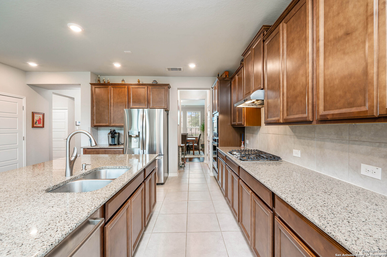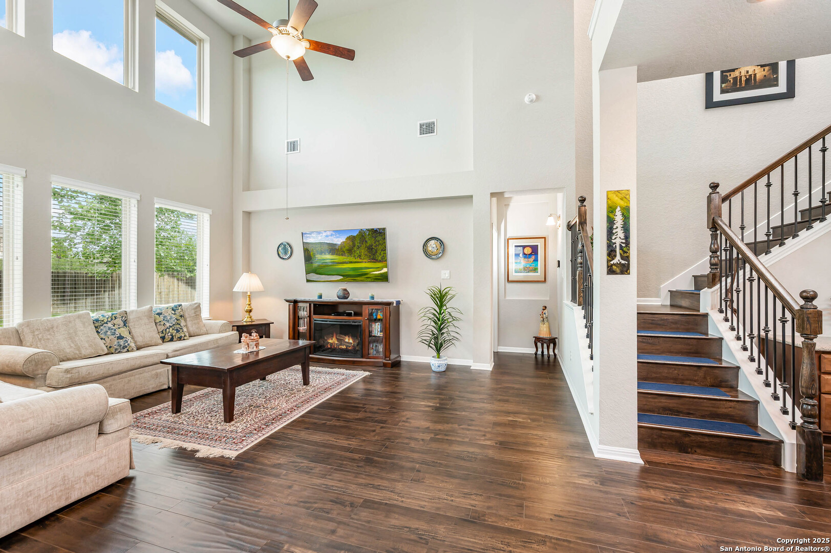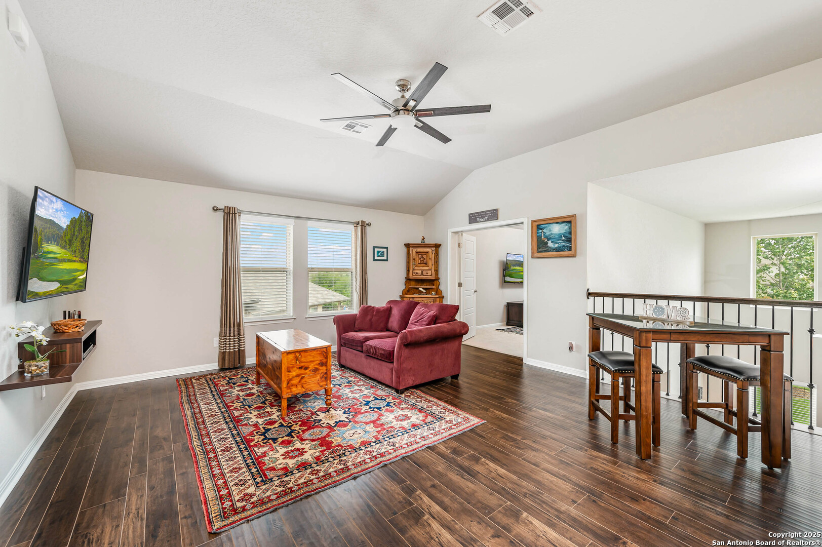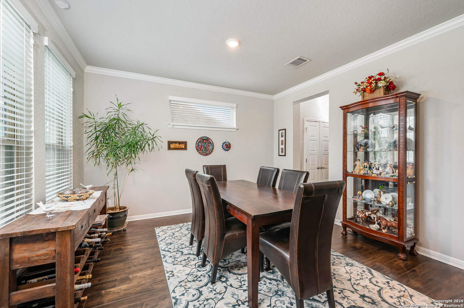 Welcome to 19215 Rose Cove! Where Model-Home Perfection Meets Everyday Living! This stunning 4-bedroom, 3.5-bath home in the coveted Sienna neighborhood offers the rare combination of light, space, and style, all set on a premium greenbelt OVERSIZED cul-de-sac lot. Lightly lived in and meticulously maintained, it feels as fresh and flawless as a builder's model! Energy efficiency features including spray foam insulation and low e windows. Dual primary bedrooms (upstairs and down) for extra privacy! The extra-large kitchen is a true showpiece, with gleaming granite countertops, abundant cabinetry, and a charming built-in productivity desk perfect for your morning coffee or afternoon emails. Flooded with amazing natural light, the open-concept living spaces flow beautifully, anchored by rich wood floors, a formal dining room for gatherings, and a fabulous mudroom/drop zone right off the garage. Step outside to your covered patio and expansive outdoor entertaining area, where the greenbelt views create a sense of privacy and calm - perfect for relaxing evenings or weekend get-togethers. Best of all, you'll love the fantastic neighborhood amenities, including a sparkling community pool, playgrounds, and green spaces, all designed for fun, relaxation, and connection. With all the bells and whistles, plus move-in-ready condition, this home checks every box. Top-rated NEISD schools, a highly desirable neighborhood, and a setting that feels tucked away yet close to everything - it's the one you've been waiting for!