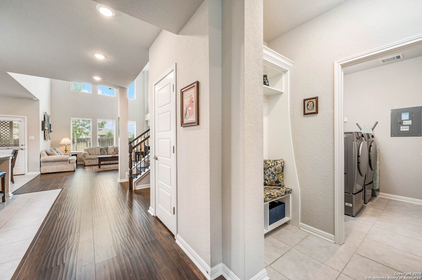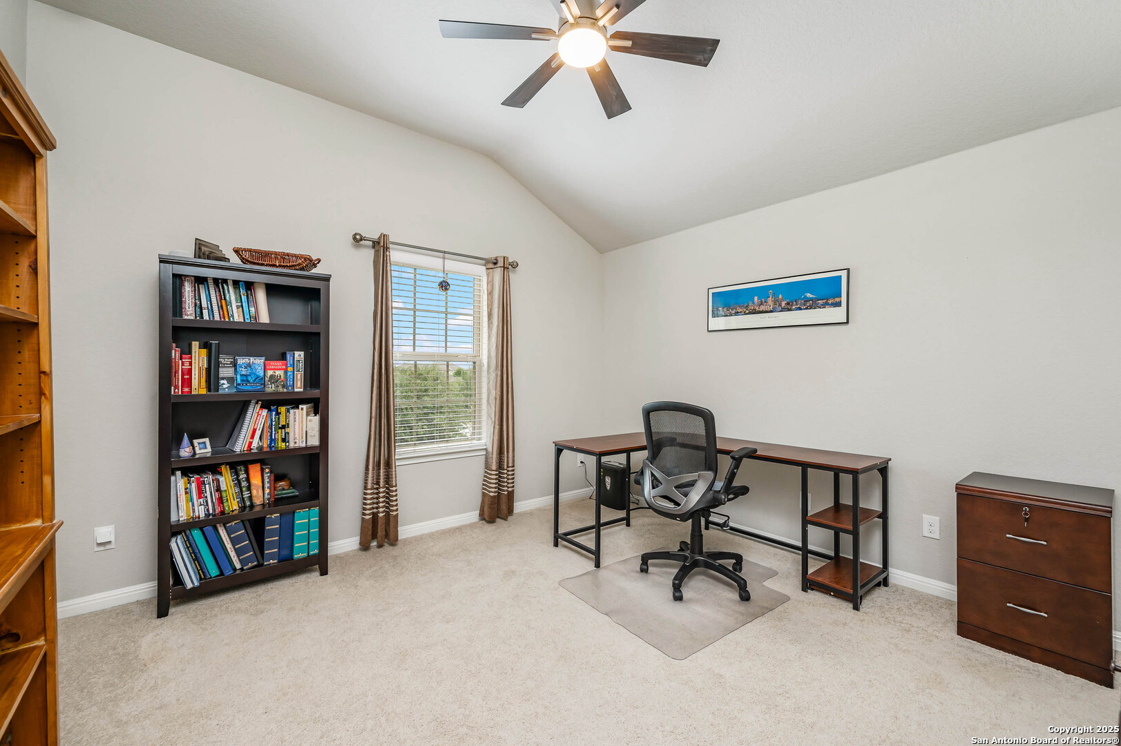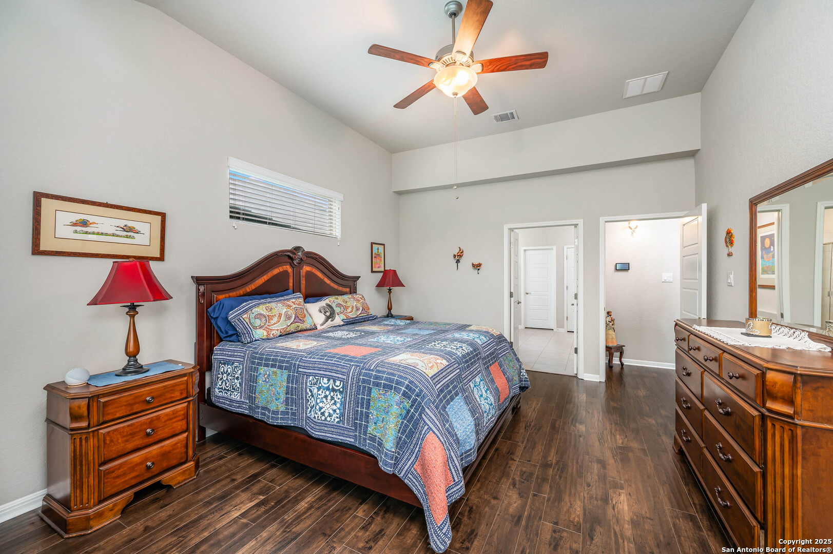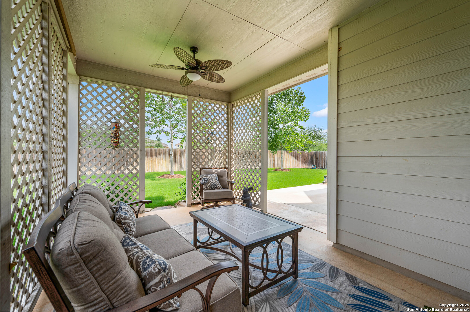 Welcome to 19215 Rose Cove! Where Model-Home Perfection Meets Everyday Living! This stunning 4-bedroom, 3.5-bath home in the coveted Sienna neighborhood offers the rare combination of light, space, and style, all set on a premium greenbelt OVERSIZED cul-de-sac lot. Lightly lived in and meticulously maintained, it feels as fresh and flawless as a builder's model! Energy efficiency features including spray foam insulation and low e windows. Dual primary bedrooms (upstairs and down) for extra privacy! The extra-large kitchen is a true showpiece, with gleaming granite countertops, abundant cabinetry, and a charming built-in productivity desk perfect for your morning coffee or afternoon emails. Flooded with amazing natural light, the open-concept living spaces flow beautifully, anchored by rich wood floors, a formal dining room for gatherings, and a fabulous mudroom/drop zone right off the garage. Step outside to your covered patio and expansive outdoor entertaining area, where the greenbelt views create a sense of privacy and calm - perfect for relaxing evenings or weekend get-togethers. Best of all, you'll love the fantastic neighborhood amenities, including a sparkling community pool, playgrounds, and green spaces, all designed for fun, relaxation, and connection. With all the bells and whistles, plus move-in-ready condition, this home checks every box. Top-rated NEISD schools, a highly desirable neighborhood, and a setting that feels tucked away yet close to everything - it's the one you've been waiting for!