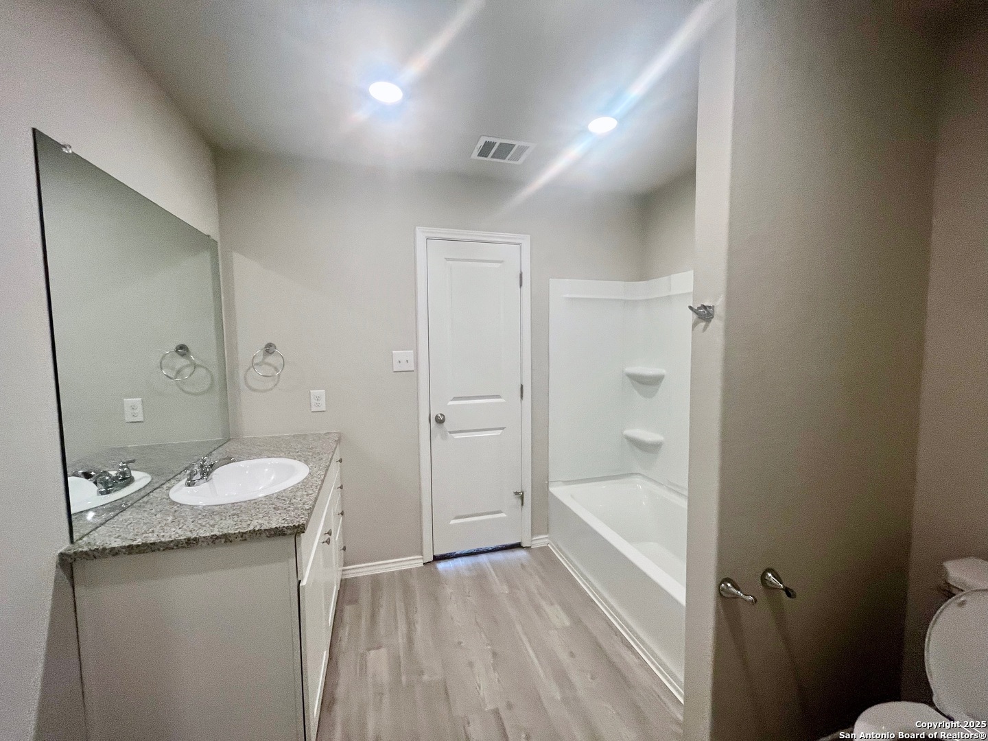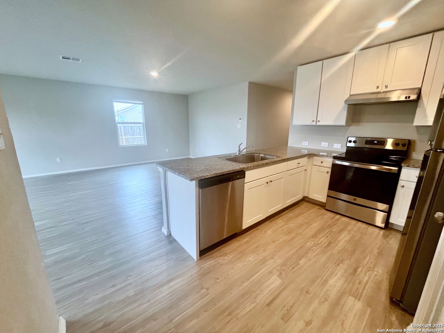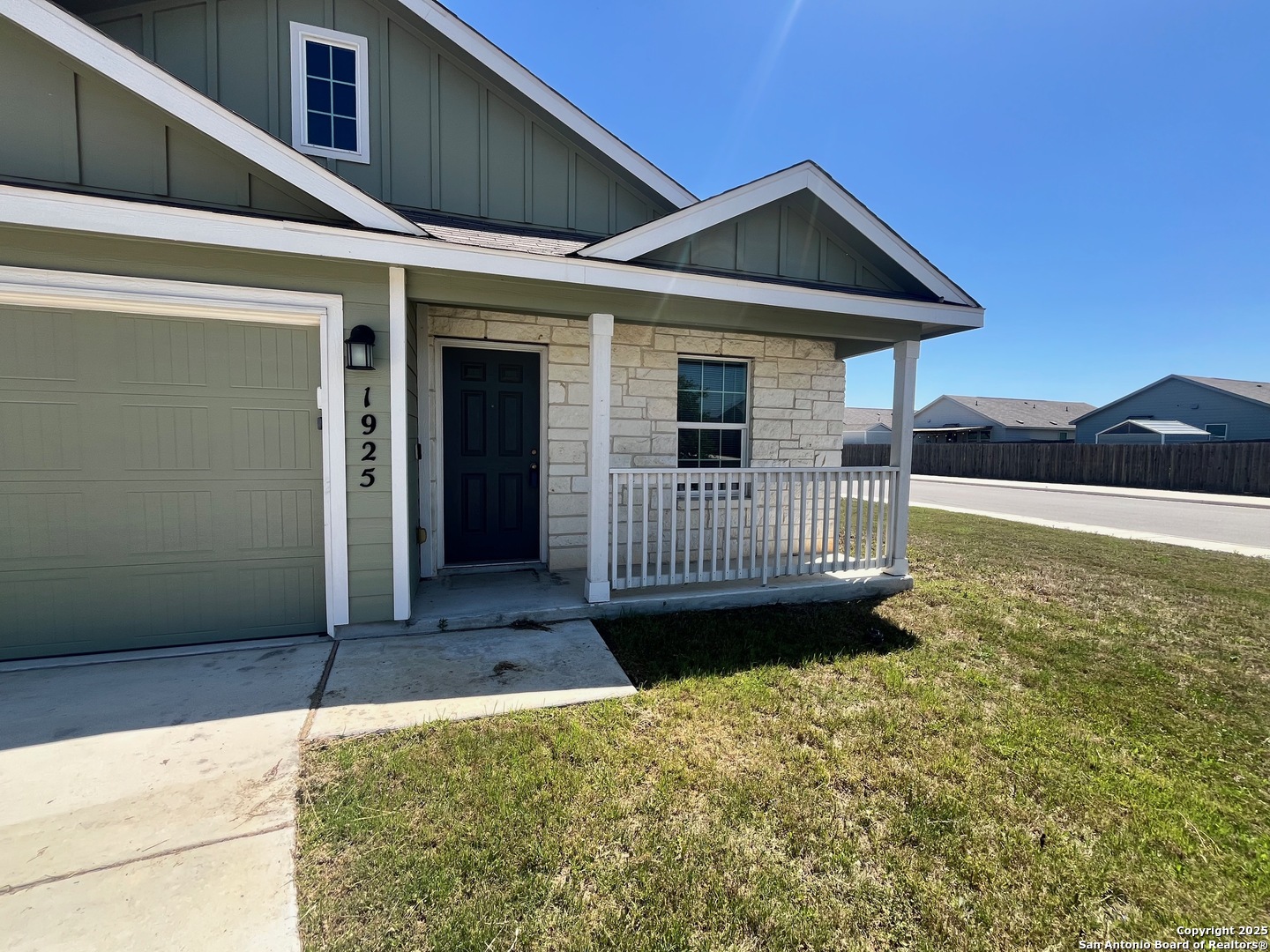 Spacious 4 bedroom, 2 bath home on large corner lot! Desirable community with easy access to IH 35. 2 car garage with automatic opener. Large backyard. Covered front porch. Granite counters, recessed lights and white cabinets give this home a sleek, updated feel! Large walk in closet in primary bathroom! Layout lends itself to plenty of space! Large open living/dining concept! Solar panels included for reduced utilities! Community amenities include pool and park! In-neighborhood elementary school! Resident responsible for $20/mo air filter delivery program. $150 admin fee due upon approval along with deposit. Renter's insurance required.