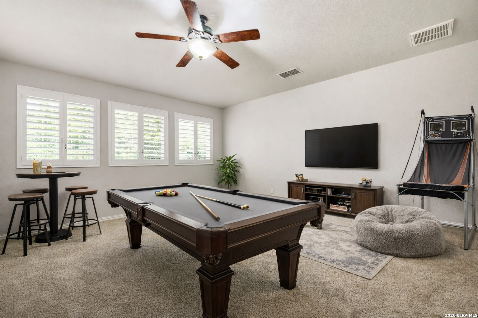 Exceptional opportunity in the gated community of Kinder Ranch-offering a rare advantage in today's market with a VA assumable loan at an incredible 2.75% interest rate (for qualified buyers). Situated on a generously sized lot, this beautifully maintained home delivers the space, upgrades, and value buyers are searching for-without the wait or added expense of new construction. Step inside through a custom iron door into a grand foyer featuring rich bamboo flooring and a light-filled interior. The impressive two-story family room showcases soaring ceilings, plantation shutters, and an open-concept design ideal for both everyday living and entertaining. The thoughtfully designed kitchen offers a breakfast bar, eat-in dining space, and seamless flow into the main living areas, complemented by surround sound throughout the downstairs. A separate dining room provides flexibility for formal gatherings or could be used as a flex room. Enjoy outdoor living at its finest with an expansive covered patio, basketball pad, and a spacious backyard-perfect for entertaining or relaxing in your own private retreat. Located within highly sought-after Comal ISD, this home combines lifestyle, value, and location-making it a standout option in a neighborhood where homes are competing with new construction. Motivated seller-bring your buyers.