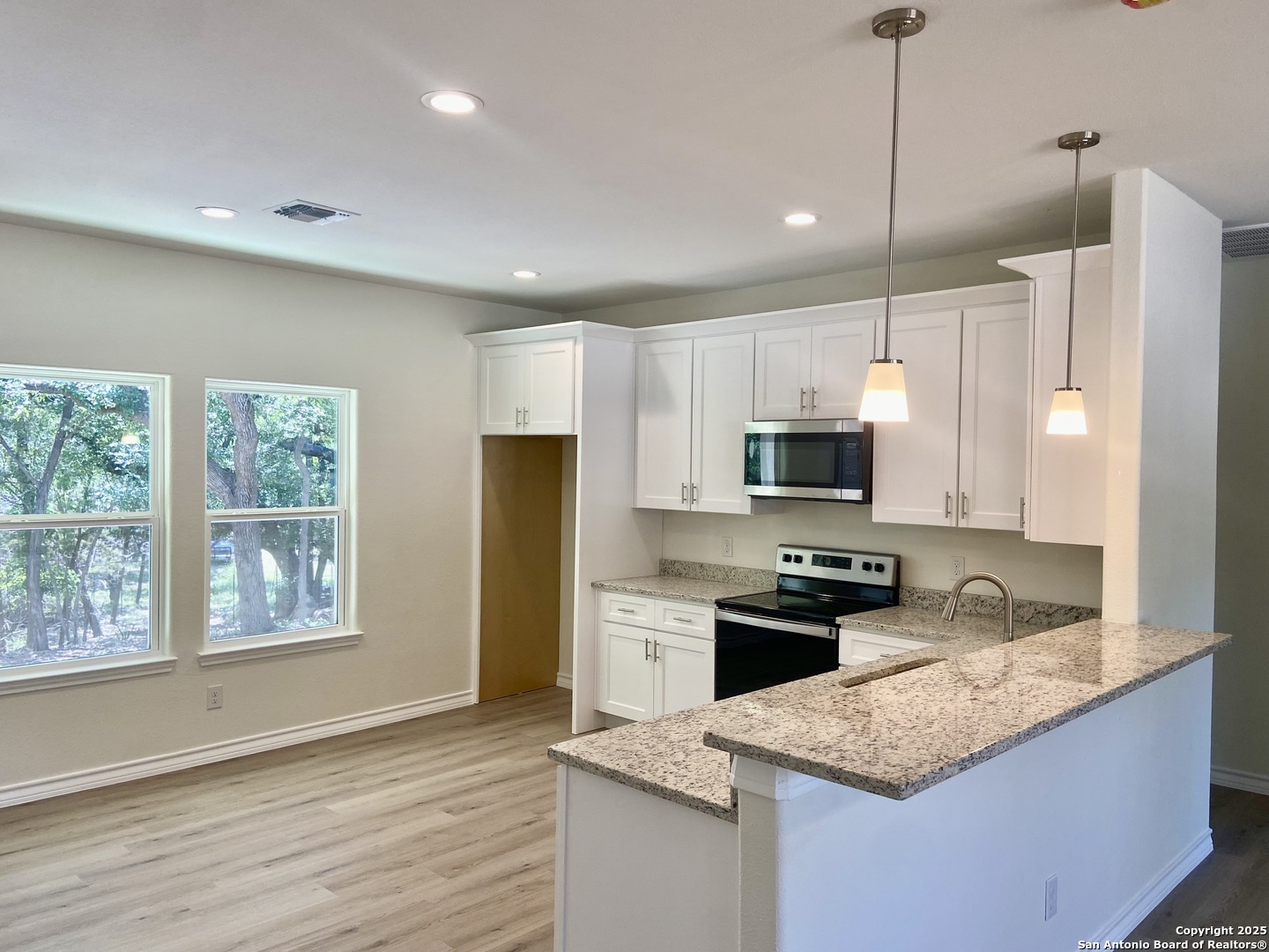 This home is new construction. Charming 1340sqft sanctuary nestled in the serene Northside of Canyon Lake. This cozy residence is situated on an oversized lot, graced with majestic Live Oak trees, that create a peaceful, shaded retreat. Enjoy the natural Hill Country beauty and privacy offered by this expansive outdoor space- perfect for entertaining or relaxing in nature. The home offers comfortable living with an efficient floor plan, ideal for a small family or vacation getaway. Located in a tranquil neighborhood near the lake, it combines country living with easy access to local amenities and outdoor activities. Experience the unique blend of comfort and natural splendor in Canyon Lake with this delightful property.
