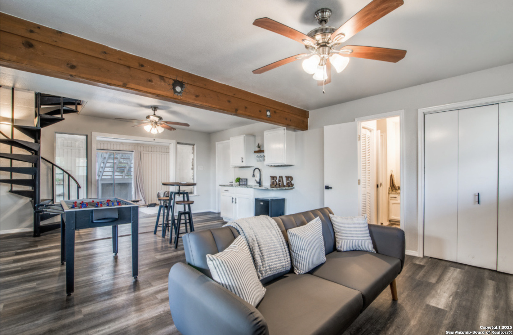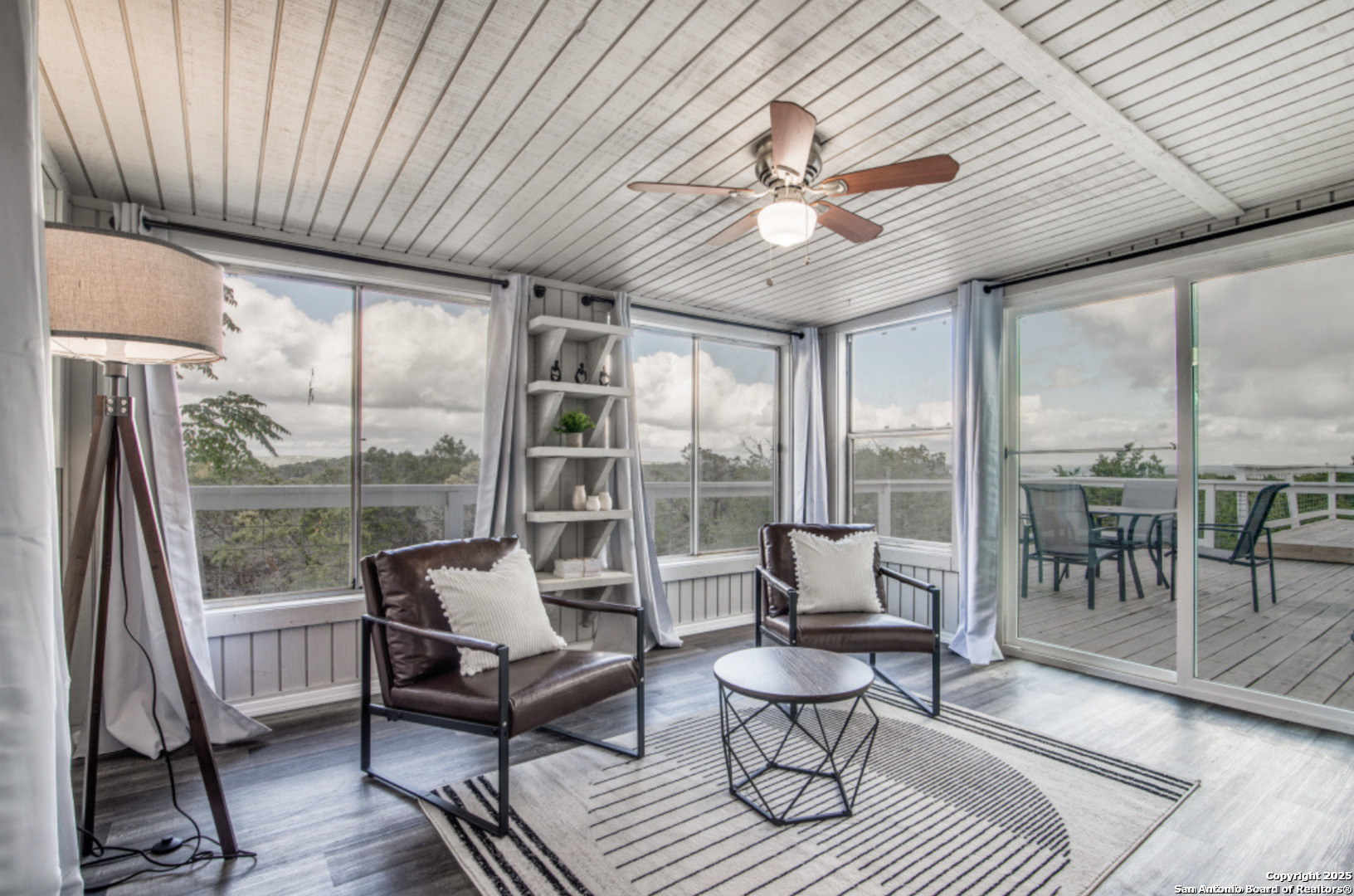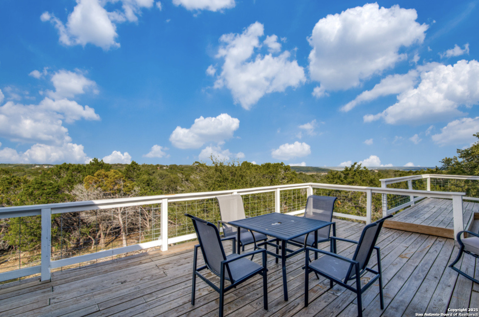 Welcome to your dream home in beautiful Canyon Lake, TX! This spacious 4-bedroom, 3-bathroom gem offers the perfect blend of comfort, style, and Hill Country views. Step inside to an open floor plan that's perfect for entertaining, featuring a cozy wood-burning fireplace, a built-in bar, and plenty of natural light. The enclosed patio provides a perfect spot to enjoy your morning coffee or unwind in the evenings, rain or shine. Outside, you'll fall in love with the huge deck that overlooks the stunning Hill Country landscape - ideal for hosting gatherings, stargazing, or simply soaking in the peaceful surroundings. Located just minutes from Canyon Lake, this home offers the tranquility of nature with easy access to boating, fishing, and hiking. Whether you're looking for a forever home, vacation getaway, or short-term rental opportunity, this property checks all the boxes. Don't miss your chance to own a slice of Texas paradise!