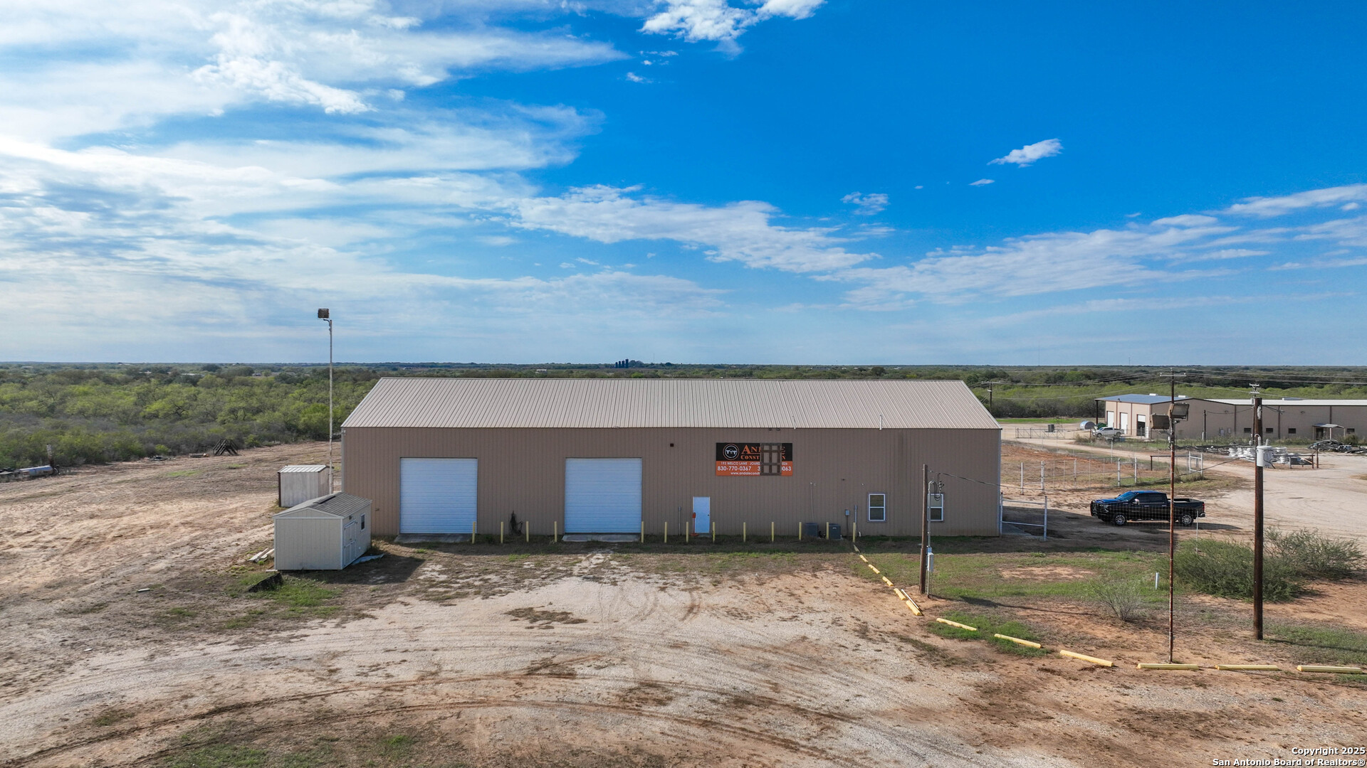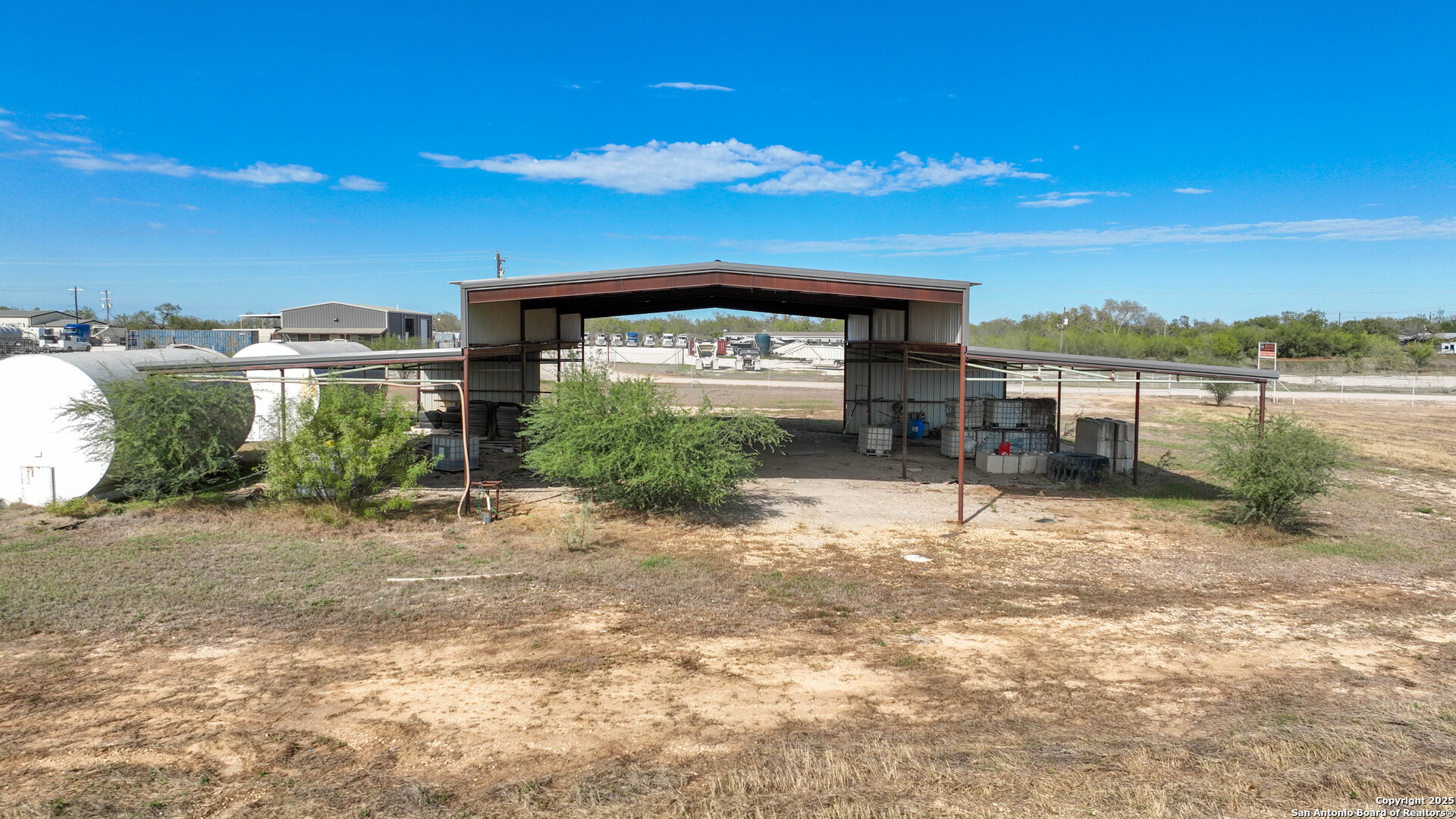 This commercial yard is located just outside of Jourdanton in Atascosa County. Featuring 8000+- square feet of shop and custom living space while sitting on 15.02 acres this property provides so many different options for the new buyer. 8 offices on the first floor making up approximately 1500+- square feet downstairs and 4 bedroom and 3 bathroom apartment located above the offices on the second floor that make up an additional 1500+- square feet of heated and cooled square footage. The shop square footage is approximately 80'X50' and features 4 14' rollup bay doors. On the outside there also a large covered shed that could be used for equipment storage or finished out for an additional shop. 2 fuel storage tanks are also located adjacent to the shop. There is tons of space on the property to add on additional shops or outbuildings if desired. This property is also located in the heart of the Eagle Ford Shale with easy access to both San Antonio and Corpus Christi If your looking for commercial property ready to go with additional room to add on then look no further!