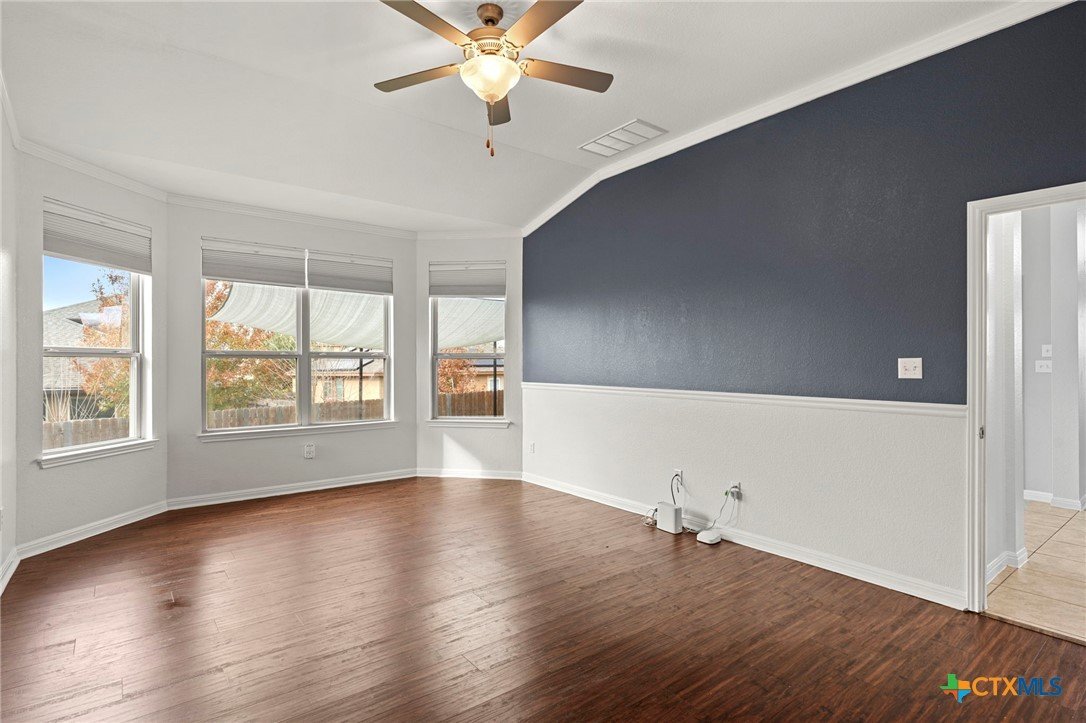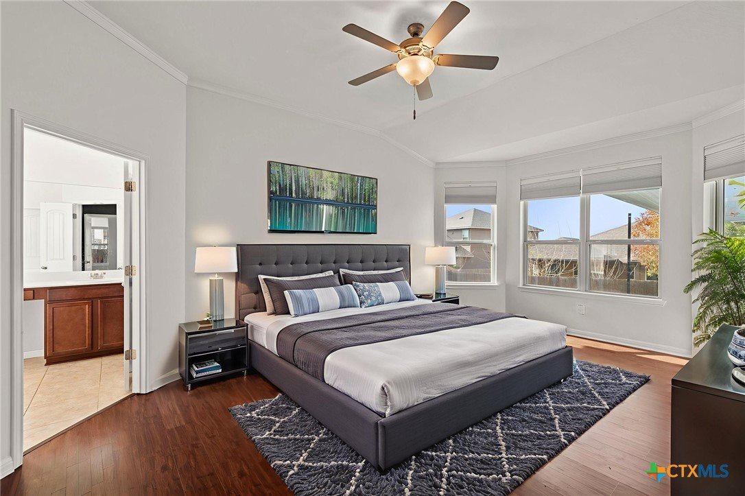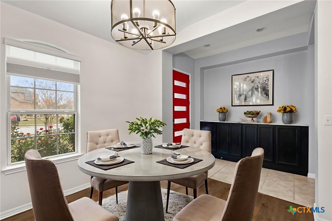 19300 Elk Horn Dr is a refined, move-in-ready residence where elevated design meets cutting-edge efficiency. This thoughtfully crafted Meritage single-story home offers a rare blend of luxury, sustainability, and lifestyle—anchored by 27 owned solar panels paired with a Tesla Powerwall, delivering exceptional energy performance and long-term value. Set on a generous 0.2011-acre lot in the sought-after Verona community, this home is ideally located near the neighborhood pool, Blackhawk Golf Club, and Lake Pflugerville. Inside, soaring ceilings and abundant natural light enhance a beautifully balanced open floor plan that feels both expansive and intimate. A serene front room offers an ideal remote office or private retreat, while a separate flex space with backyard views provides versatility for a media lounge, creative studio, or secondary living area. The kitchen serves as the heart of the home, showcasing stainless steel appliances, timeless subway tile, and a substantial granite island designed for effortless entertaining and everyday elegance. The primary suite is privately positioned at the rear of the home and features graceful bay windows, a spa-inspired bath with soaking tub, oversized walk-in shower, and a custom-style walk-in closet with organization system. —no carpet—**adds a sleek, modern finish and easy maintenance. Step outside to an exceptional backyard oasis, designed for year-round enjoyment. Low-maintenance turf, elegant sun shades, and a large covered deck create a resort-style environment perfect for entertaining, relaxing, or dining al fresco. Sprinkler system in the front and side yards adds convenience while maintaining efficiency. Additional highlights include spray foam insulation and ENERGY STAR® appliances (per builder). With quick access to TX-130 and TX-45, and minutes from Target, Home Depot, and premier dining, this home offers luxury living with everyday ease—just 1 mile from Cele Middle School.