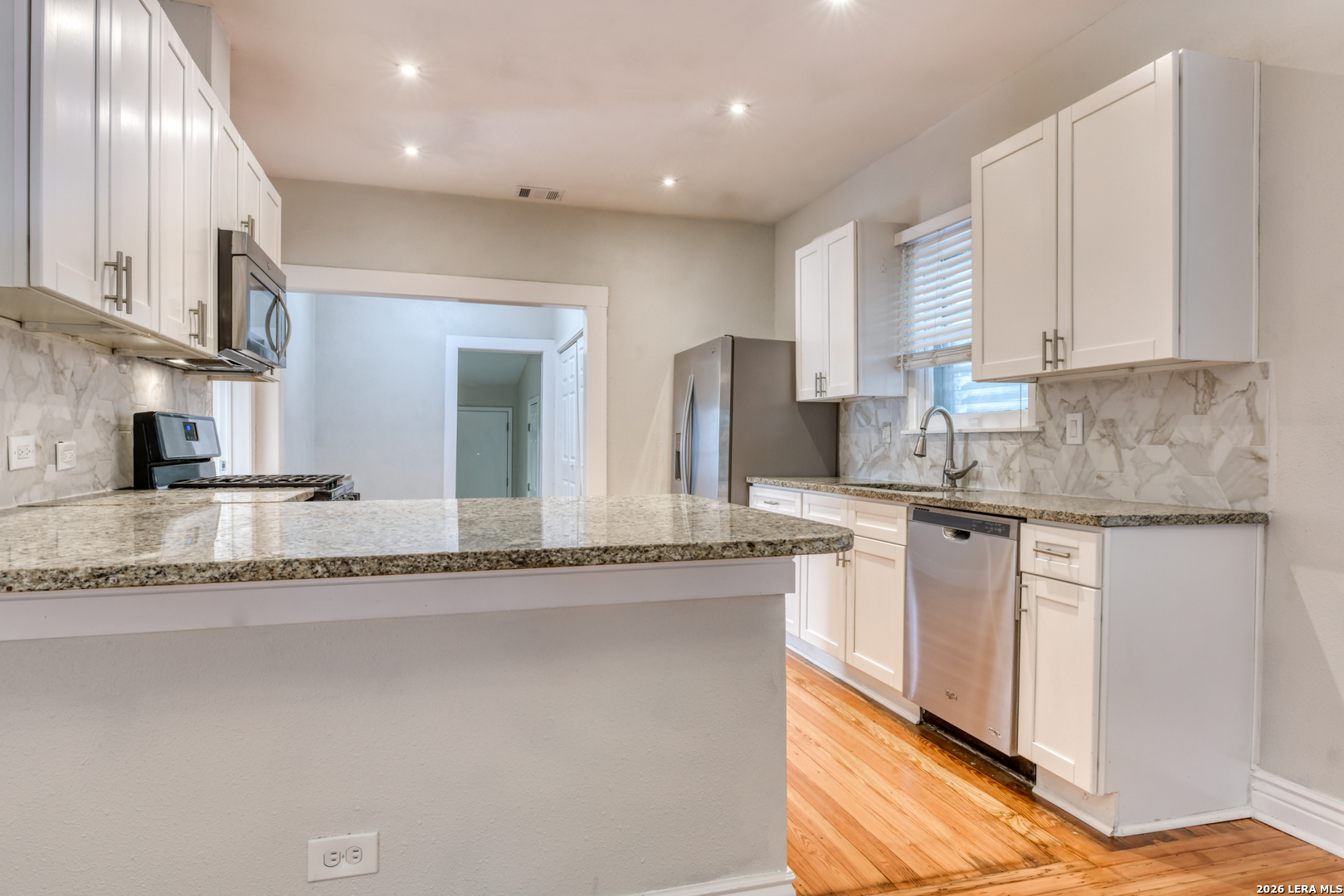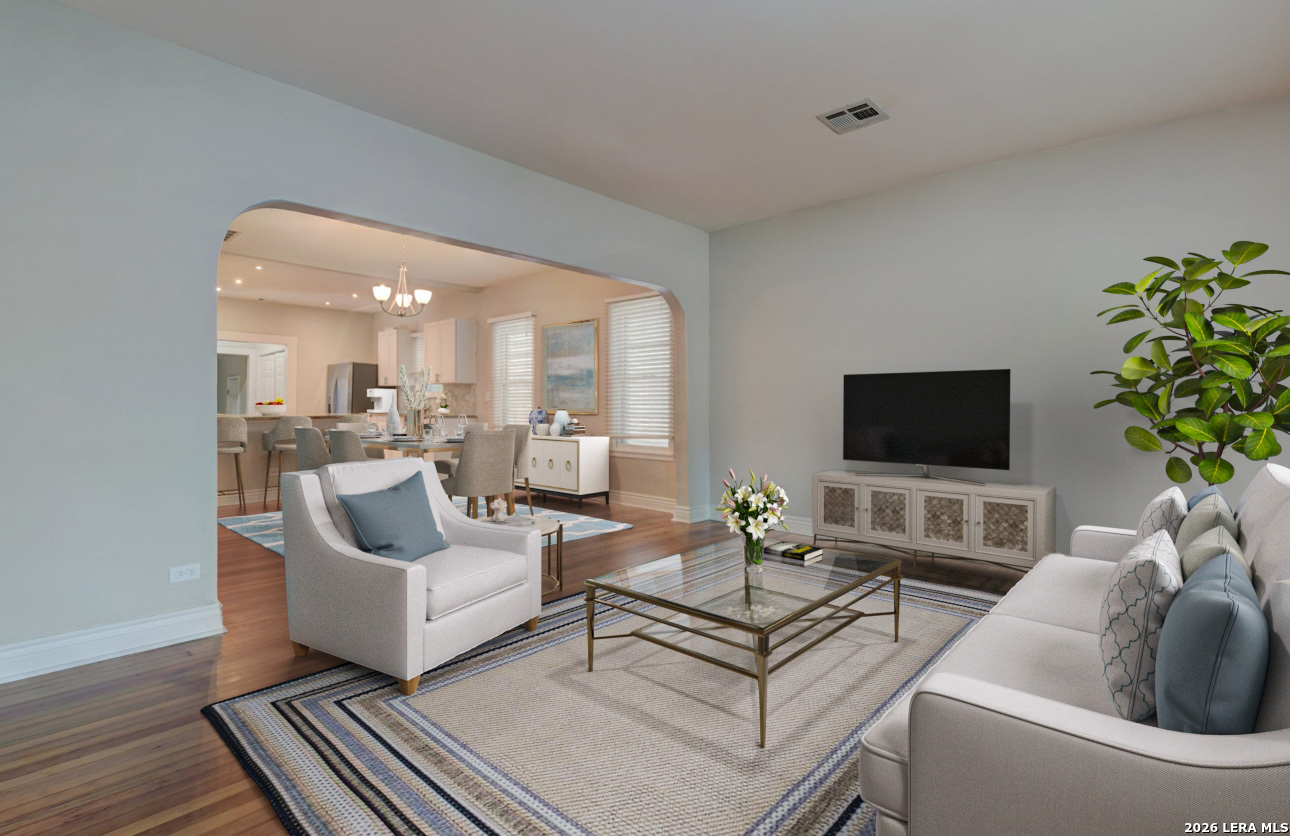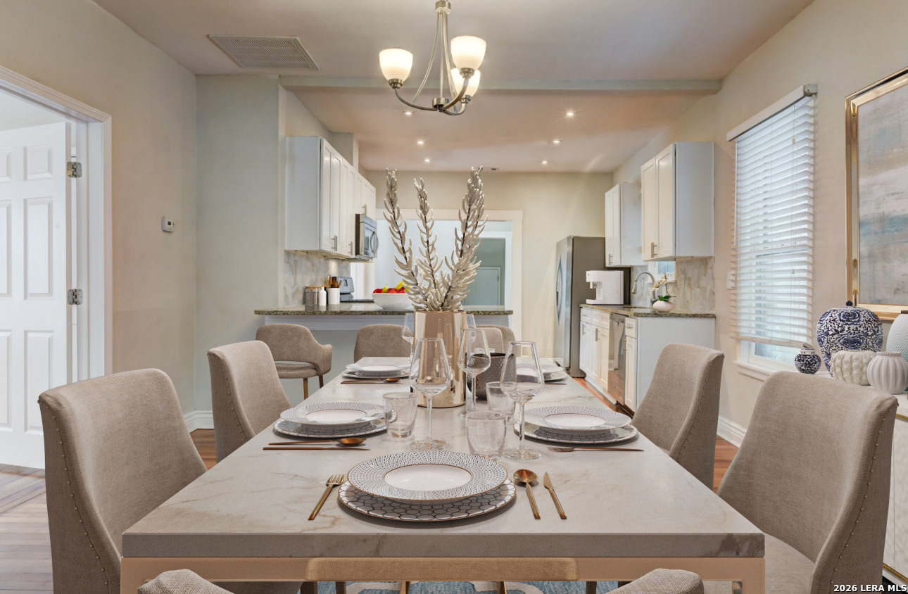 Beautifully updated 1 story home located in the historic Woodlawn Terrace area of Northwest San Antonio. This 3 bedroom, 2 bath home offers approximately 1,540 square feet with high ceilings, abundant natural light, and refinished original wood floors that add character throughout. The open floorplan connects the living and kitchen areas for comfortable everyday living. The kitchen features granite countertops, arabesque tile backsplash, updated white cabinets, gas cooking, and generous counter space. Both bathrooms have been updated with subway tile surrounds, modern sinks, fixtures, and mirrors for a clean and elegant finish. A long driveway provides ample parking and outdoor space for relaxing. Located near schools, Woodlawn Lake Park, shopping, dining, and major roadways with convenient access to Downtown San Antonio. Schedule your showing today and submit your application before this home is leased. Online App fee $75, 18 and over. App/fees are due at the time of application. We do not accept paper applications. Pet deposit is $300 per pet (subject to restrictions and approval). The owner will manage the home after move-in. All funds must be certified.