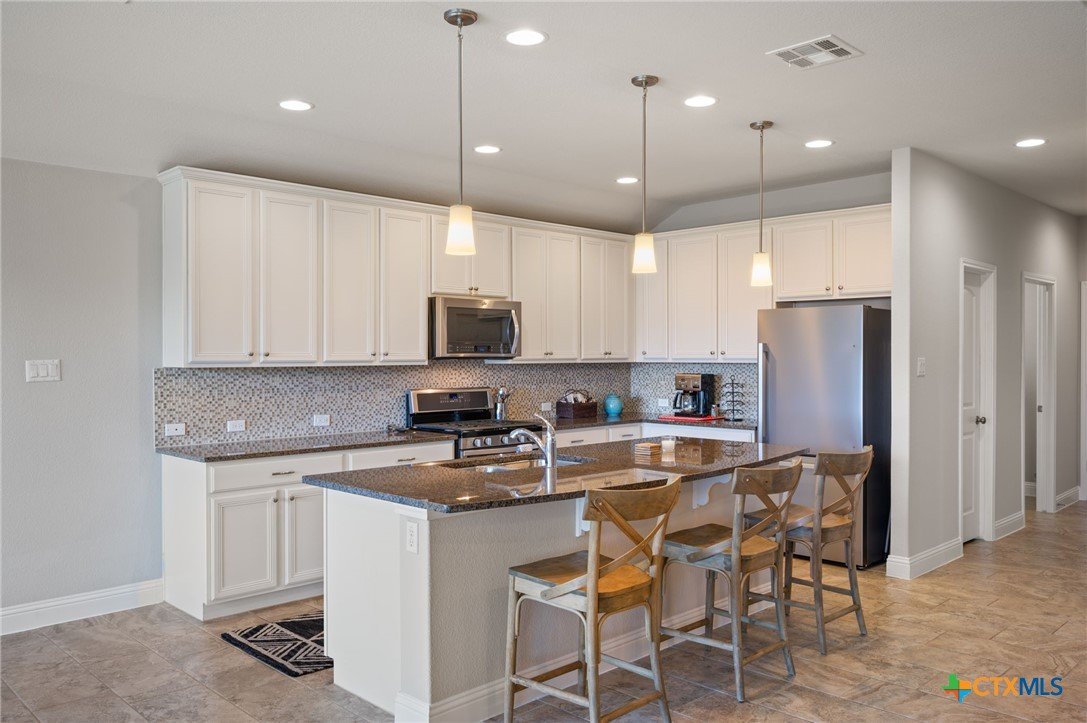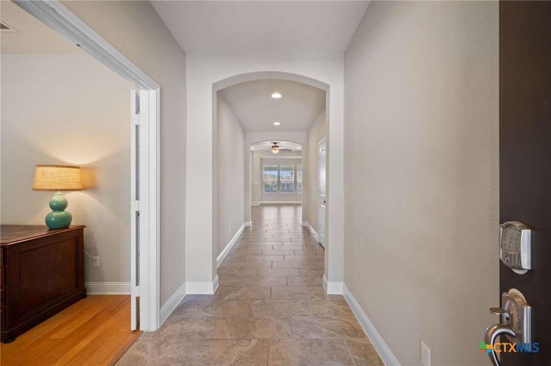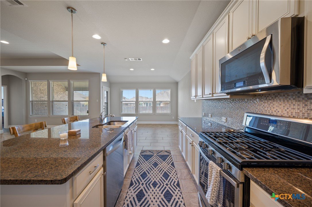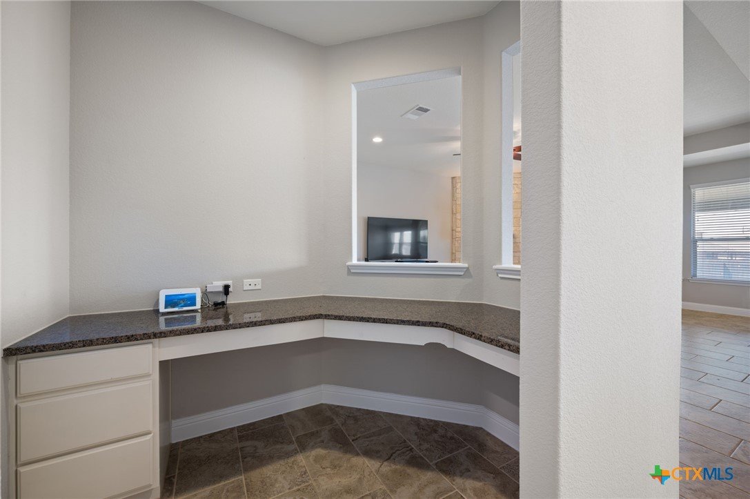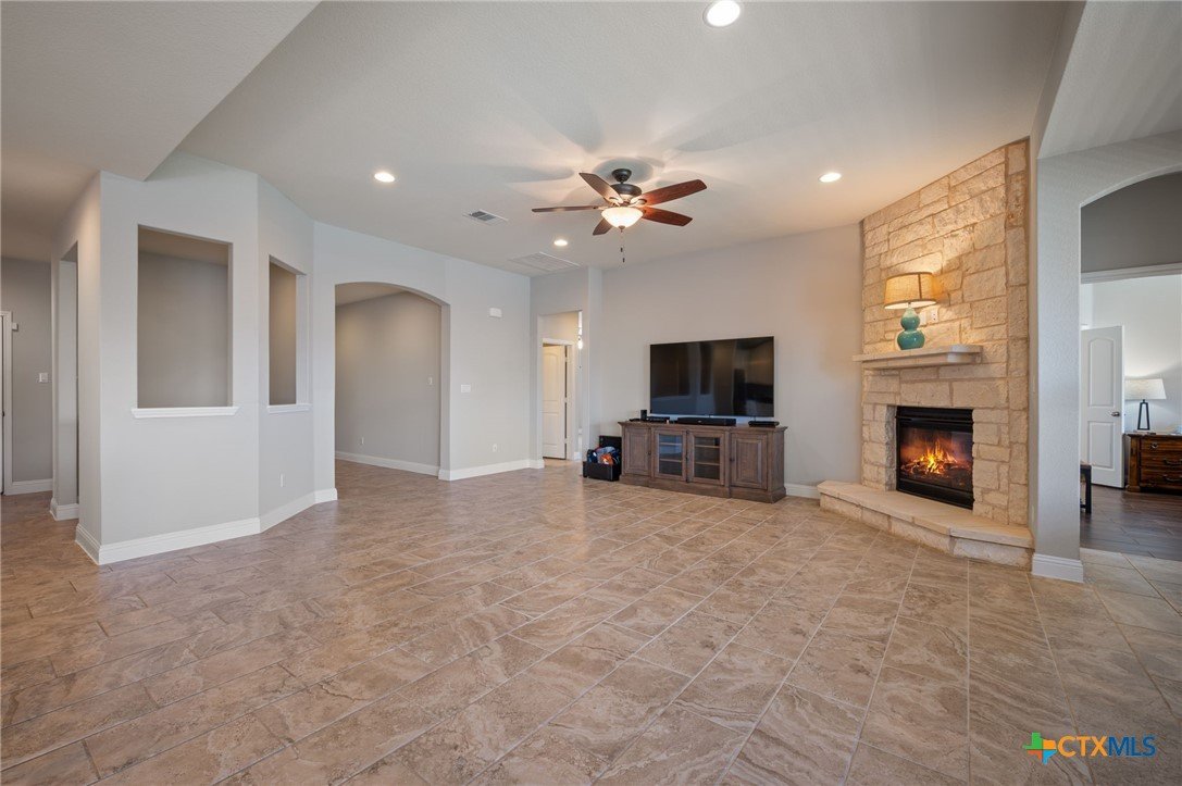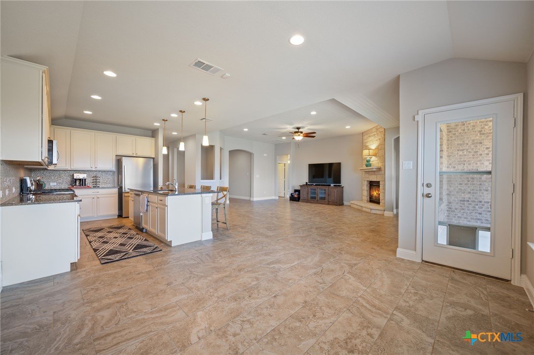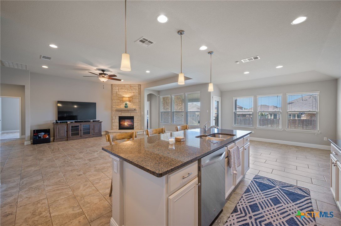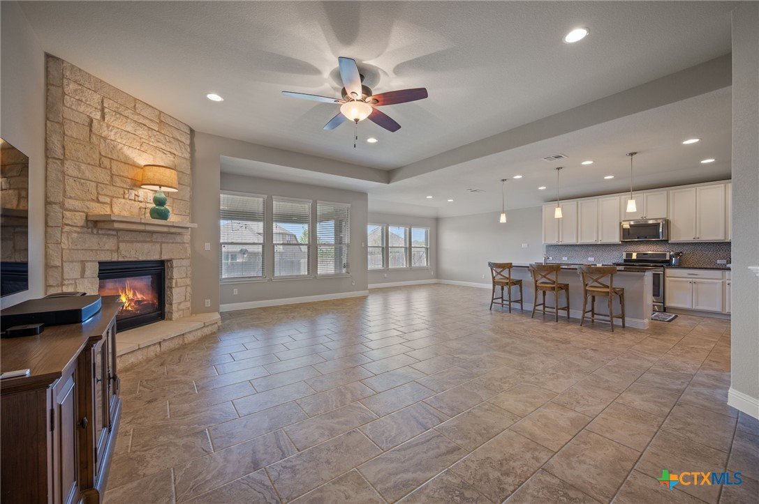 ***BOM due to Buyer unable to obtain financing*** Step into this beautifully designed single-story Pulte home, perfectly located just a block from the community pool and amenity center. Boasting three bedrooms and two and a half baths, and a dedicated office at the front of the home, this home offers a spacious and flexible layout. The living room features a beautiful floor to ceiling stone fireplace. The kitchen is a true chef's delight offering a huge center island with bar seating. Granite counters, gorgeous tiled backsplash and gas cooking round out this amazing kitchen. The heart of the home includes Pulte’s signature "work zone" or planning center, a multi-functional space near the kitchen designed to keep daily life organized.The primary suite features wood-look ceramic tile, plantation shutters, an impressively organized walk-in closet, and a second smaller closet for additional storage. The secondary bedrooms have plush carpet, with one offering an oversized walk-in closet. A versatile flex space between these bedrooms is ideal for a playroom, second living area, or workout space. The dedicated laundry room ensures convenience, while a thoughtfully placed drop zone inside the garage entry keeps things tidy. Step outside to a truly expansive backyard with extended decking off the patio—perfect for relaxing or entertaining. Fantastic neighborhood amenities, including a lake, fishing, pool and sports court make this the perfect place for relaxation and play! Don't miss out on this amazing opportunity!
