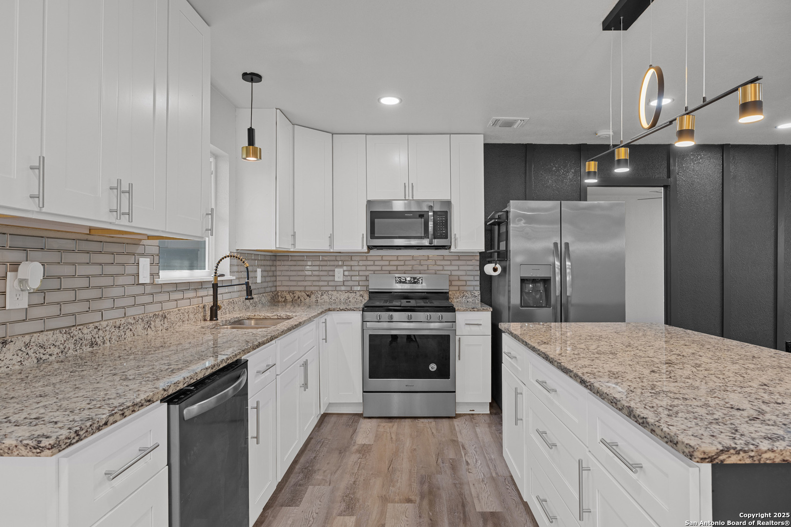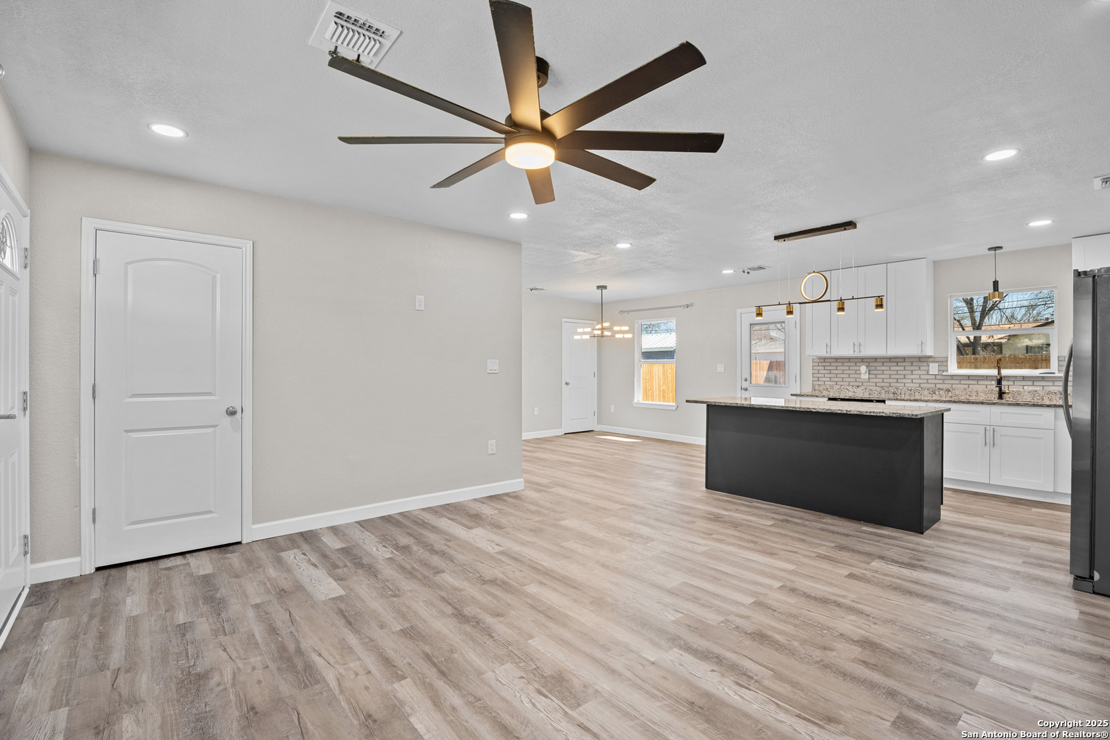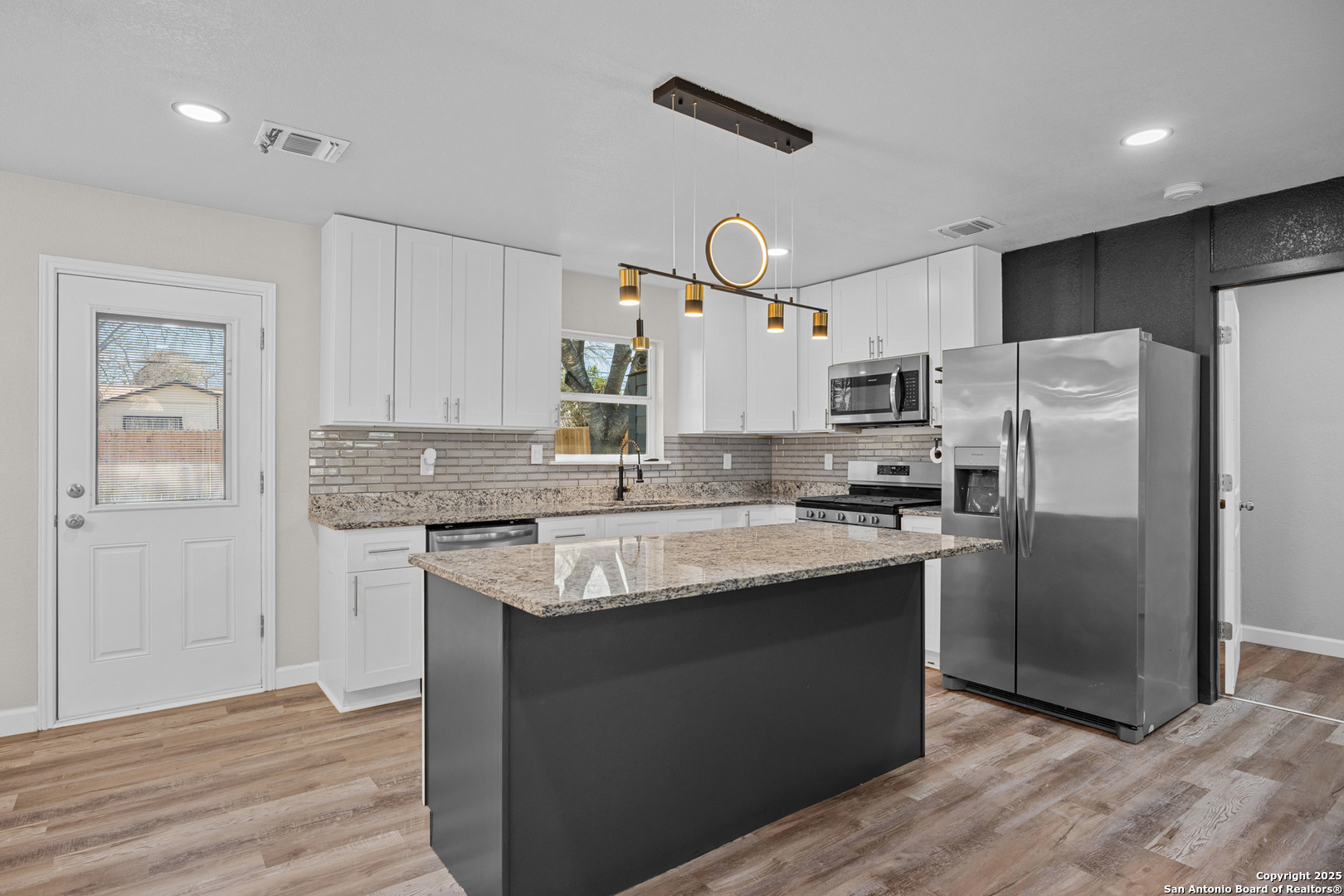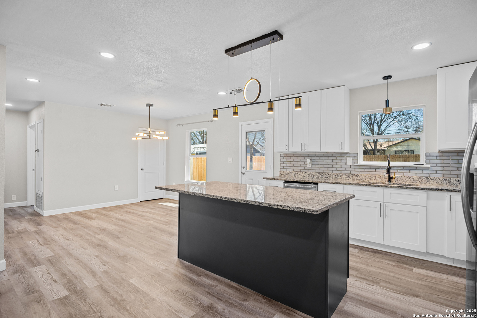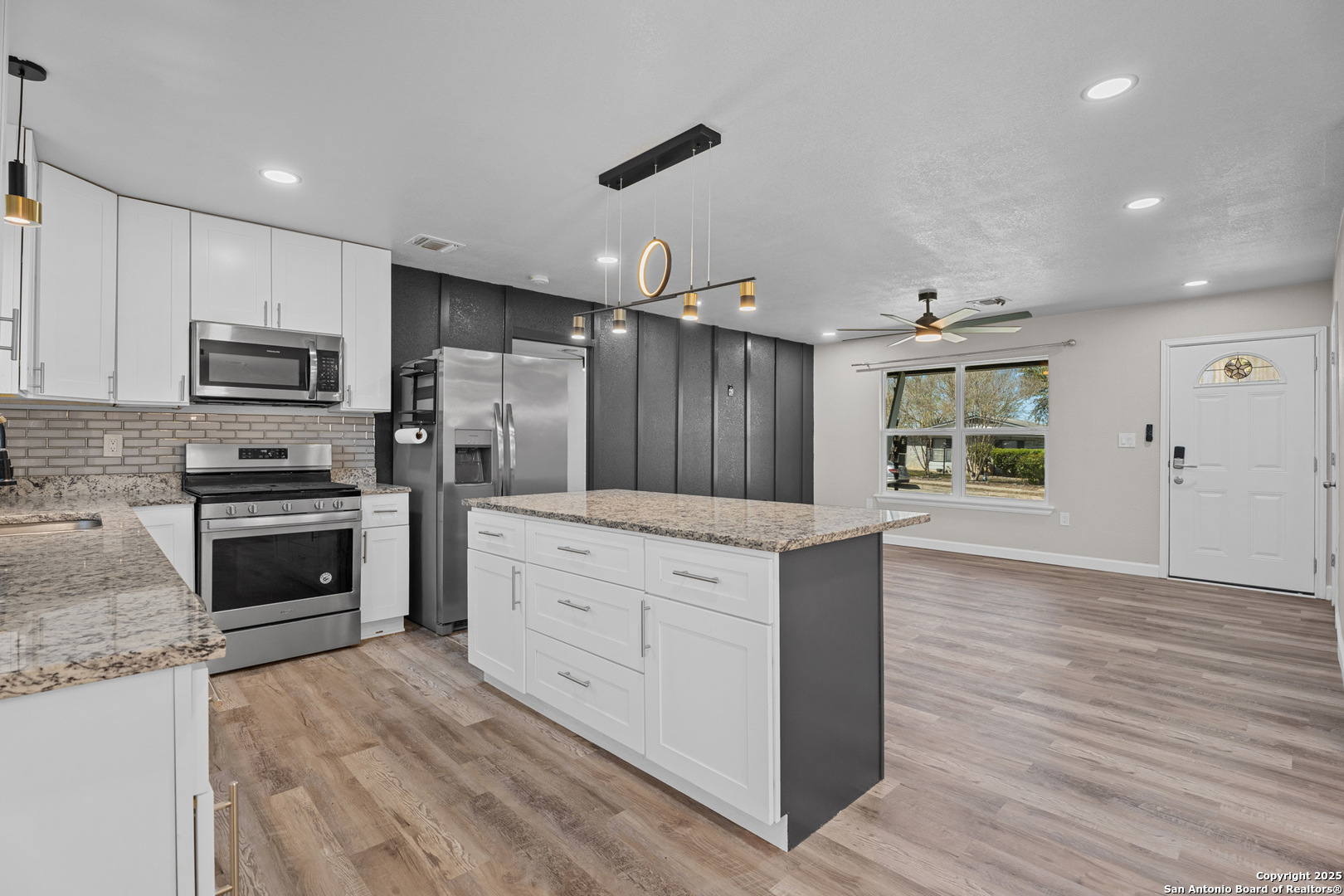 Welcome to this stunning, completely renovated home, where no detail has been overlooked! Step inside to find brand-new flooring throughout, freshly painted walls, and updated light fixtures that brighten every room. The kitchen is a true chef's dream with new appliances, granite countertops, and modern cabinets, making it perfect for cooking and entertaining. The home has also had all mechanicals replaced, including a newer AC unit, water heater, and updated electrical systems, ensuring peace of mind for years to come. The exterior of this beautiful home has been equally refreshed with new siding, a five-year-old roof, and a newly built privacy fence for added security. Energy efficiency is a key feature of this home, with double-pane tinted windows and spray foam insulation that will help lower your utility bills and keep your home comfortable year-round. This smart home takes convenience to the next level with app-controlled interior and exterior lighting, offering you full control at your fingertips. Exterior Soffit and JellyFish lights are programmable for any occasion or holiday! The kitchen cabinets also have controllable under lighting as well! Located in the fast-growing south side of San Antonio, you'll enjoy easy access to downtown, entertainment, high-end restaurants, and major highways like I-35 South and 410 South. The home is also minutes to A&M San Antonio and Palo Alto College! This home truly has it all-style, comfort, and modern upgrades in a prime location!