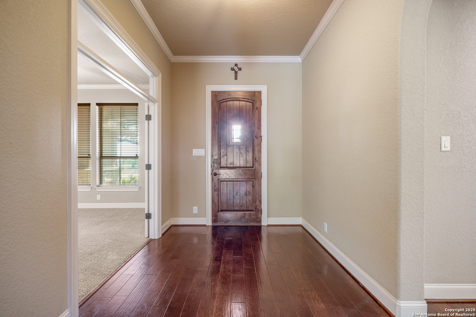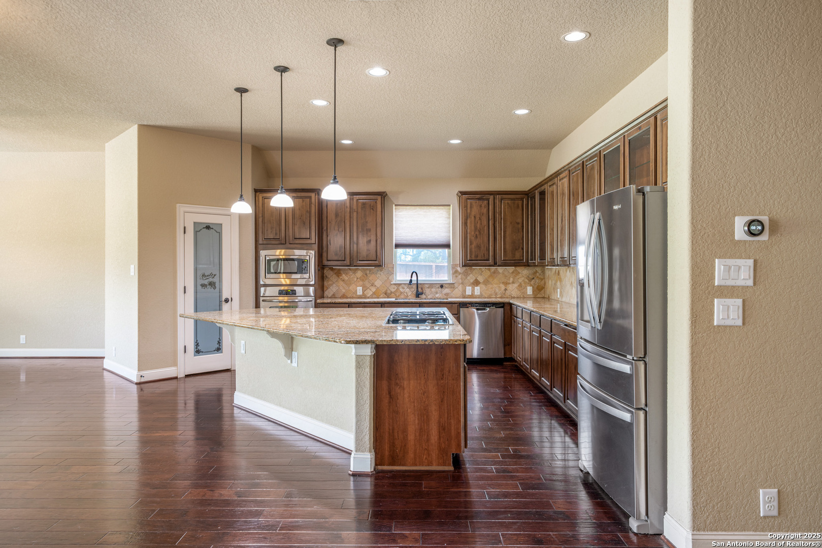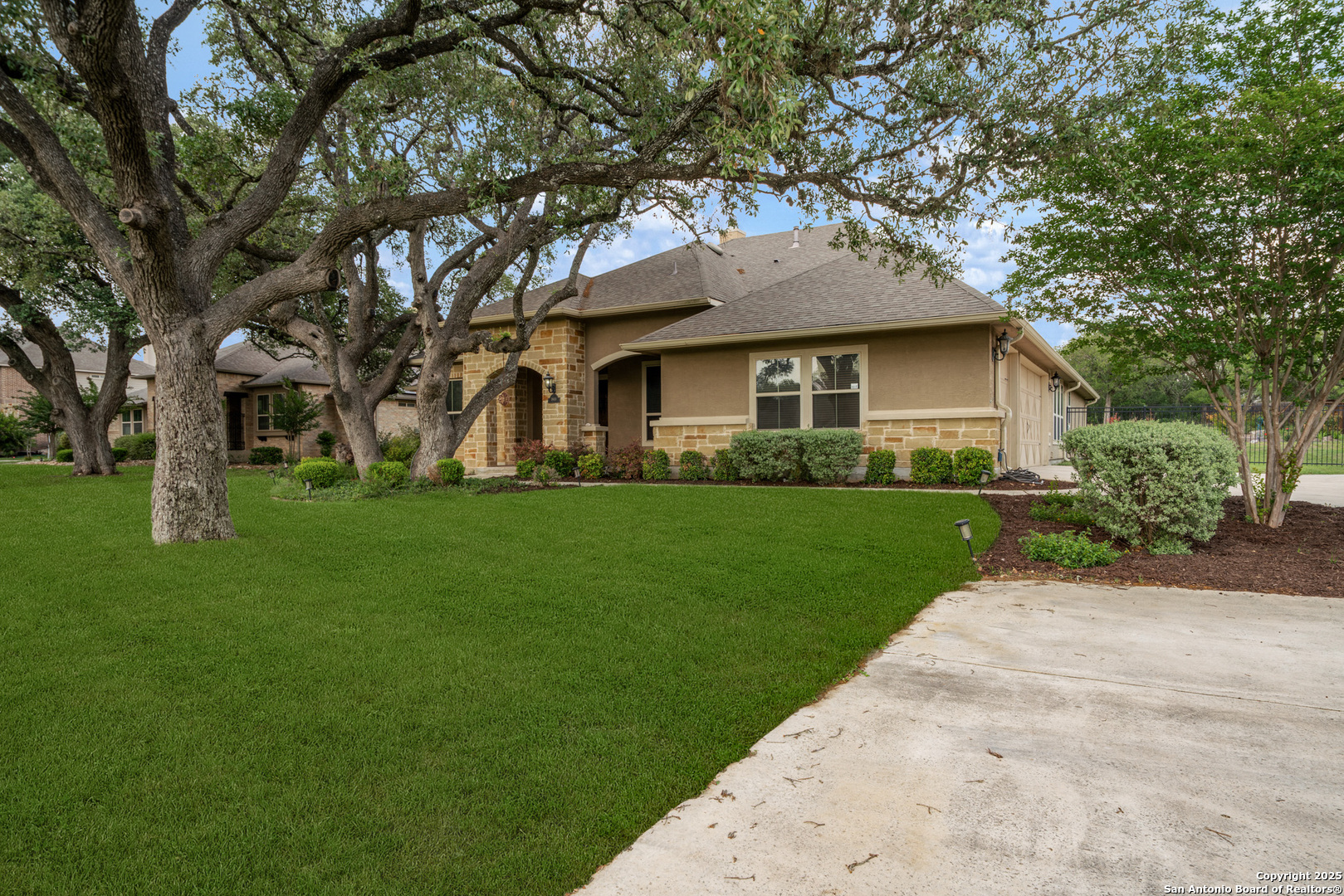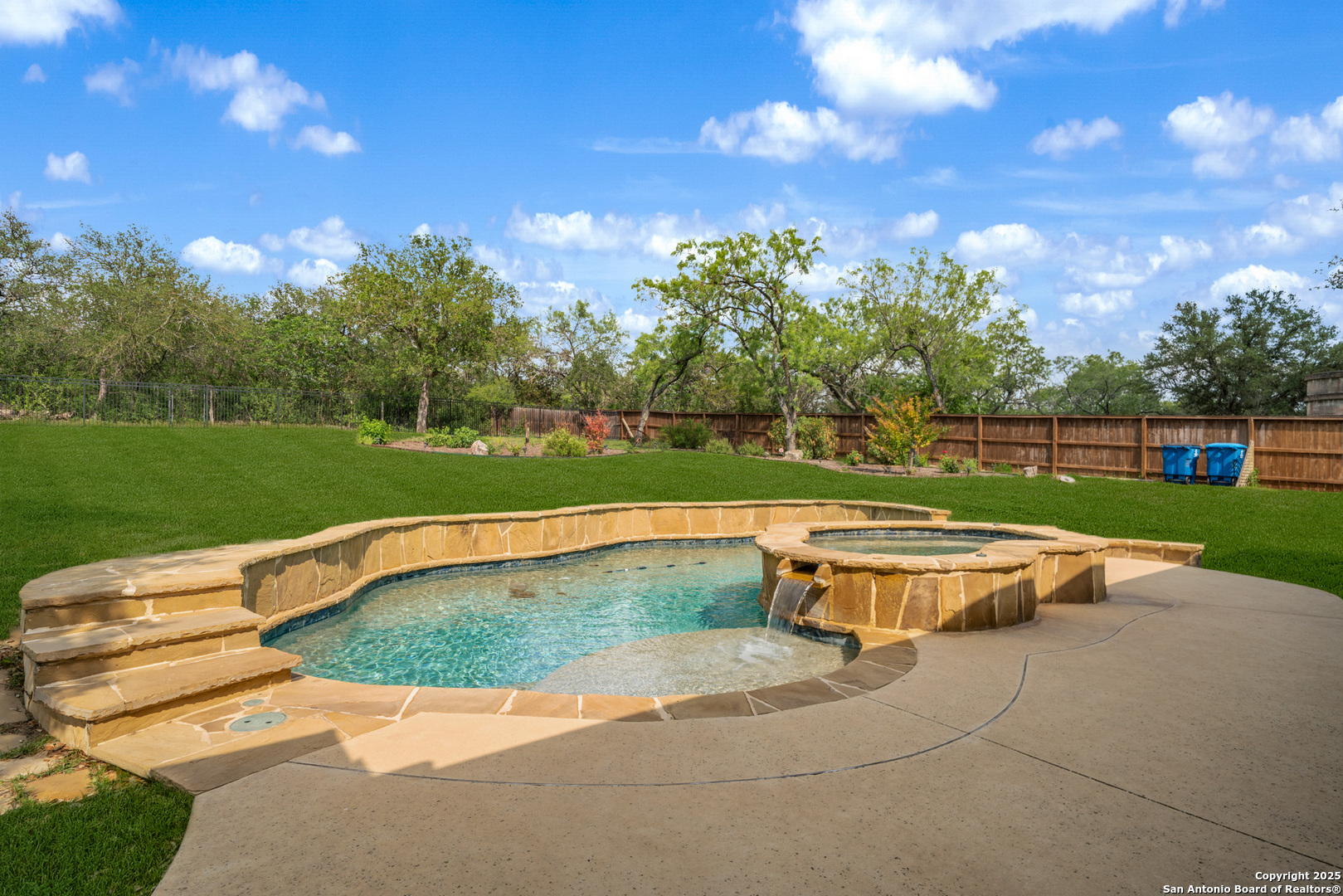 Welcome to this Garden Ridge home, complete with an in-ground pool, nestled in the gated community of Arrowood Estate. Every room is designed to impress, offering a blend of comfort and style that's perfect for both relaxing and entertaining. The master bedroom is a true retreat, featuring a luxurious garden tub where you can unwind after a long day. Step outside and experience sought-after serenity in the professionally landscaped yard, featuring a large, covered patio that's ideal for outdoor dining or simply enjoying the peaceful surroundings. This energy-efficient Woodside Home is set on a huge, Texas-sized lot that's just shy of an acre, providing plenty of space and privacy. You'll also be pleased to know that you are zoned for the sought-after schools in Comal County, making this an ideal location for families. Don't miss the opportunity to make your home-ownership dreams a reality, and be sure to add this property to your list of must-see homes.