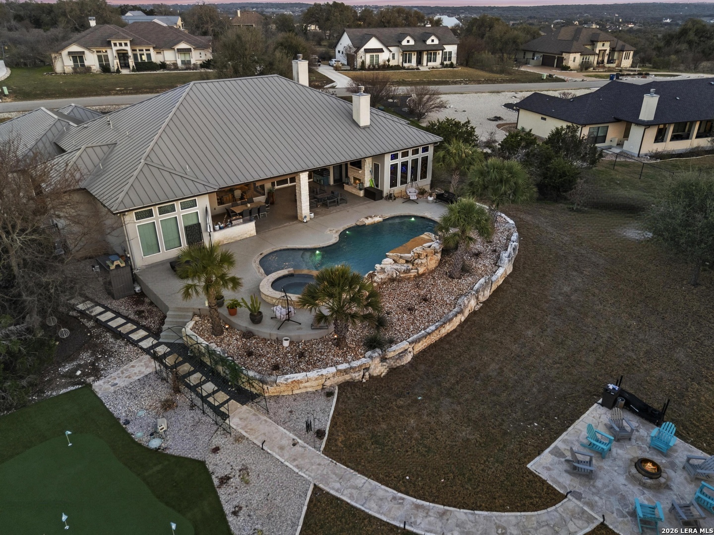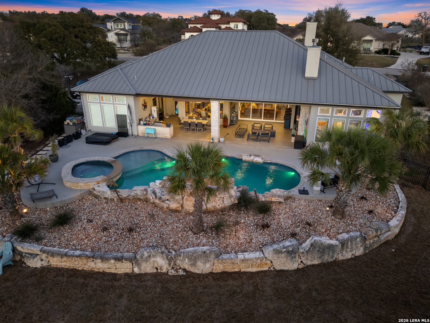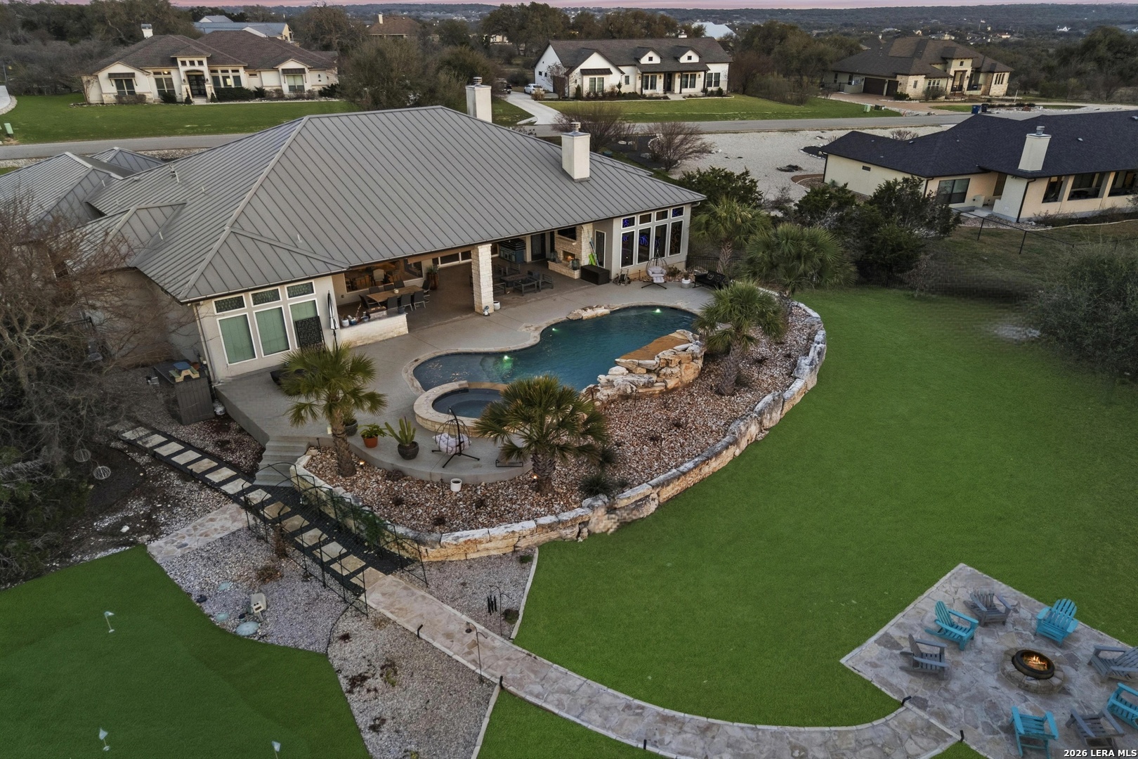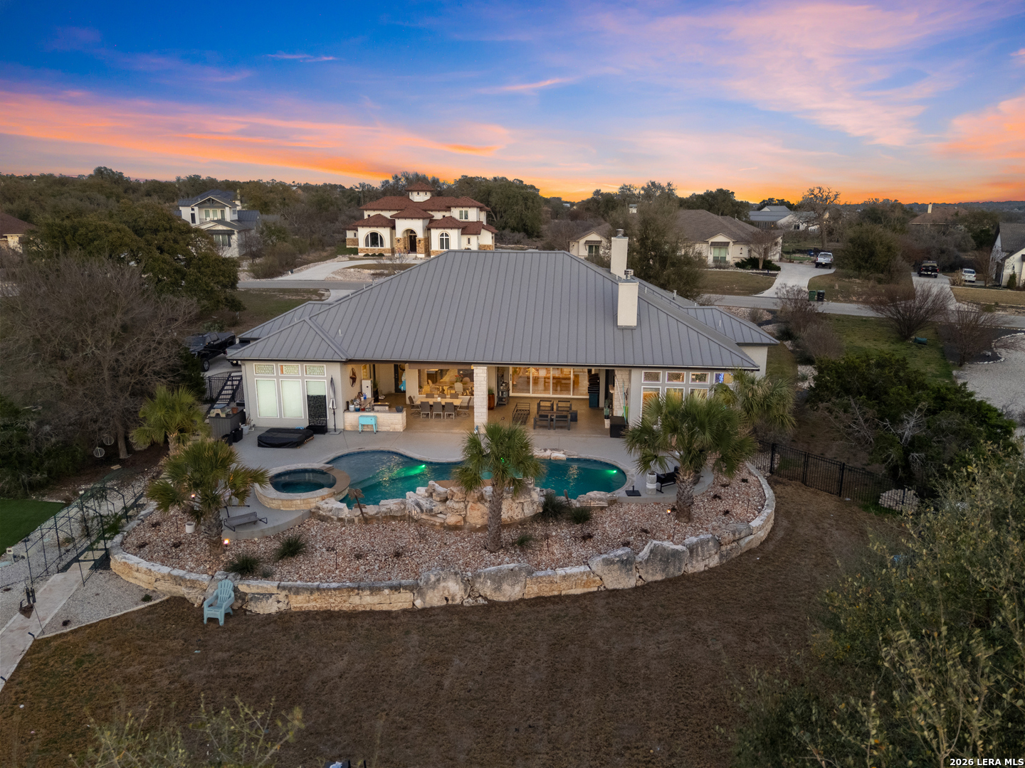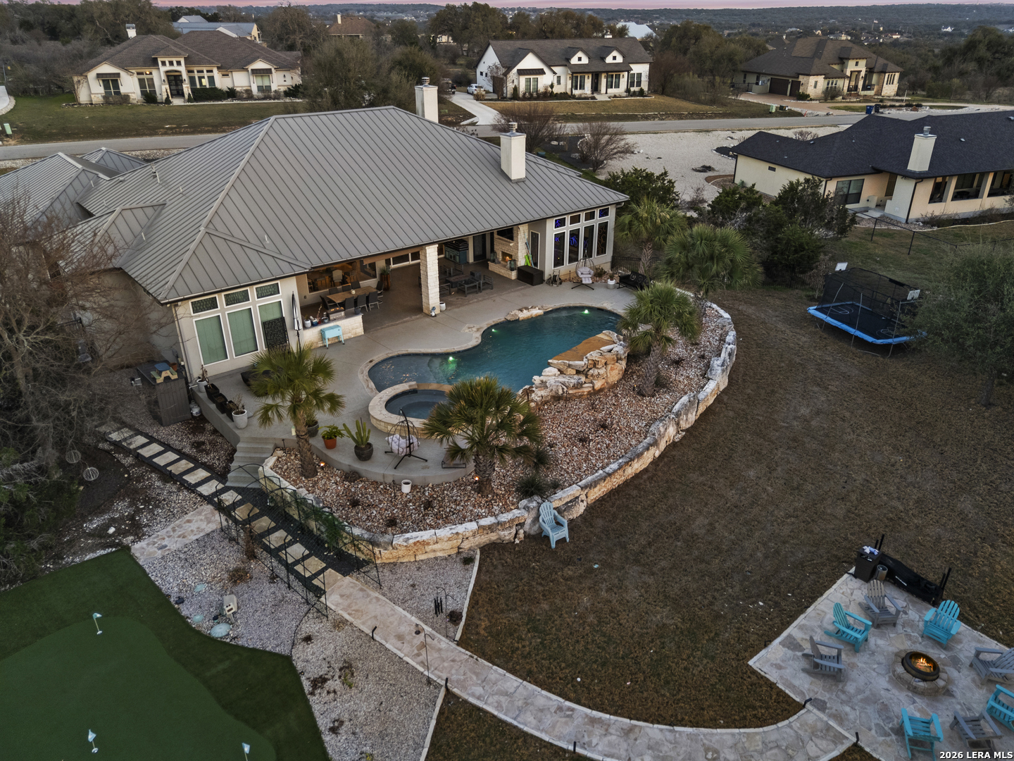 Entertainer's Dream house! Luxury 3-bedroom, 3.5-bath home on a quiet cul-de-sac in the highly sought-after Vintage Oaks community. Features include soaring ceilings with wood beams, an open-concept layout, chef's kitchen, and private office. Expansive sliding glass doors fully open to the backyard, seamlessly blending indoor and outdoor living. Each spacious bedroom offers its own full bath. Enjoy a dedicated theater room with bar and backyard access. Premium surround sound in the kitchen, living room, game room, and outdoor living area. Two tankless water heaters provide added efficiency. Outdoor entertaining shines with a fireplace, built-in kitchen, resort-style 8-foot deep pool that holds 36k gallons of water with spa, Pool Deck features cool-decking, putting green, drip-irrigated garden beds, and a fire pit-ideal for relaxing or hosting. Residents of Vintage Oaks enjoy resort-style amenities including newly installed pickleball courts, two pools, a lazy river, a state-of-the-art fitness center, playground, and more. Two Rooms have been virtually painted and one virtually staged.