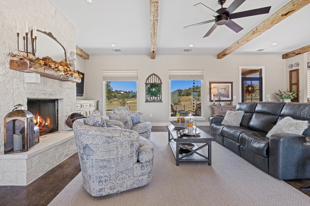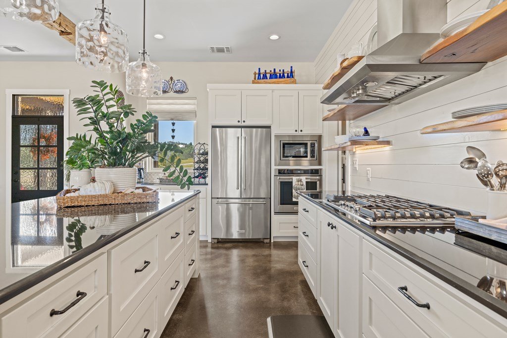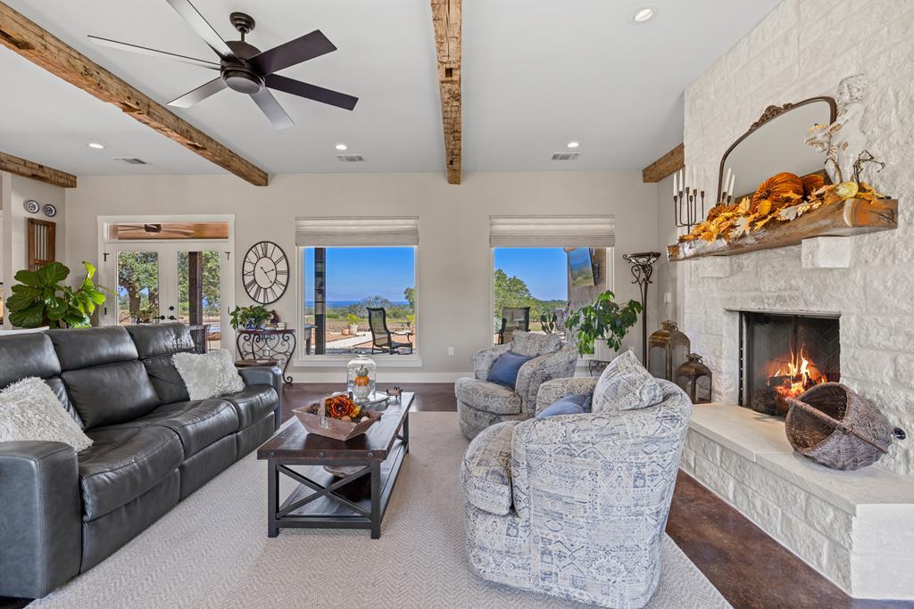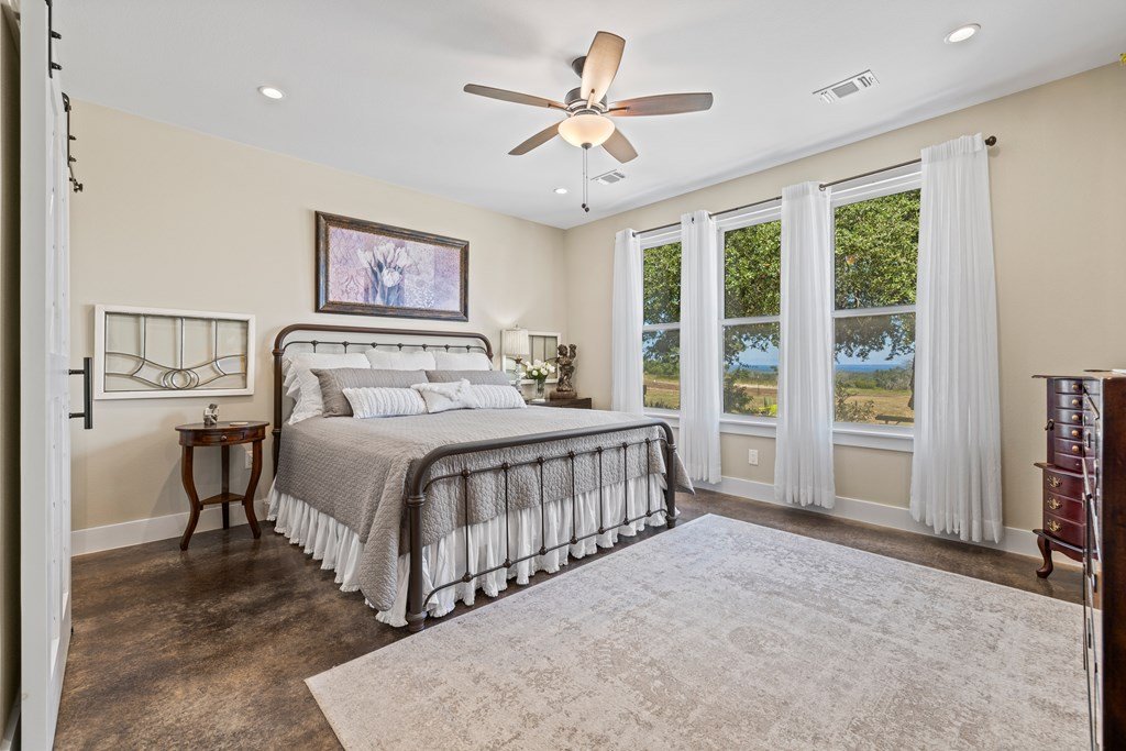 Your dream home awaits in the desirable gated subdivision of Vineyard Ridge! This custom 3 bedroom, 2 bathroom home built by Lemburg House is filled with character and the attention to detail is seen in every part of the home. Upon entering the house, you'll immediately be drawn to the panoramic views seen through the large windows. The kitchen contains floating walnut shelving, farmhouse sink, and large walk in panty. The oversized island is open to the dining and living room. The covered porches are perfect for watching the wildlife while taking in the breathtaking views. The backyard is set up for entertaining with a built-in grill and refrigerator, a mount for a TV, fire pit, and sitting area. The 3.6 acre lot has plenty of room to add a guest house, RV storage, or large barn/workshop. Ag exemption in place gives this property appealing tax reduction!
