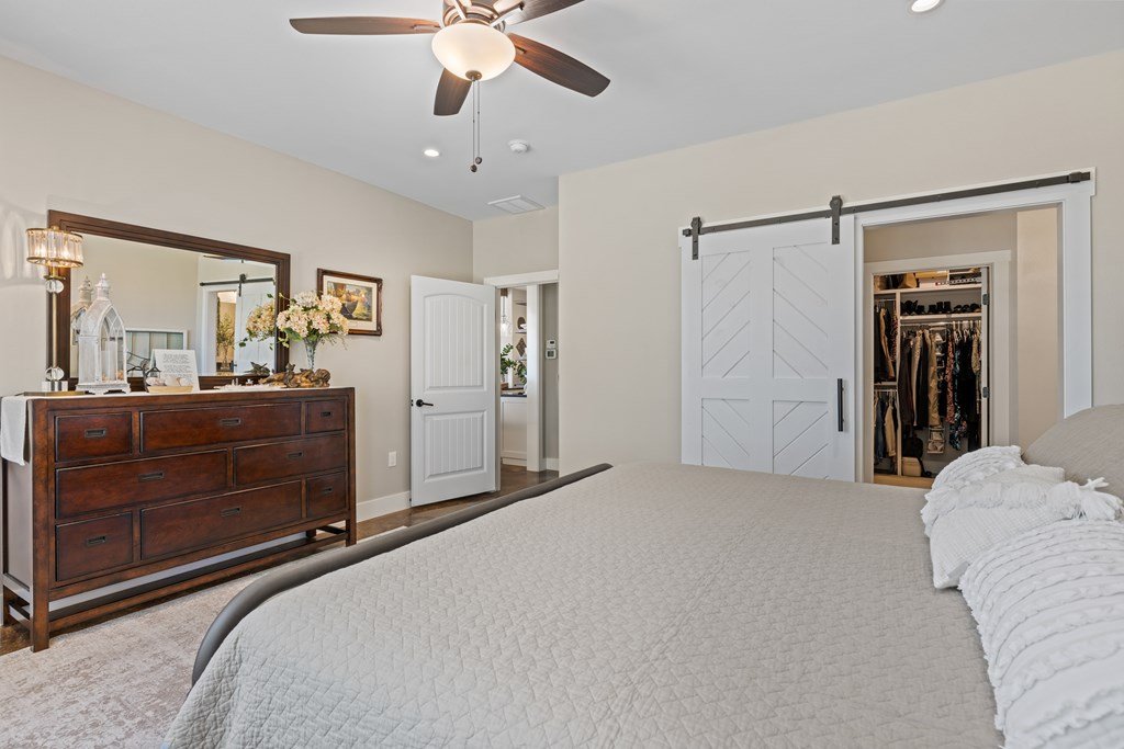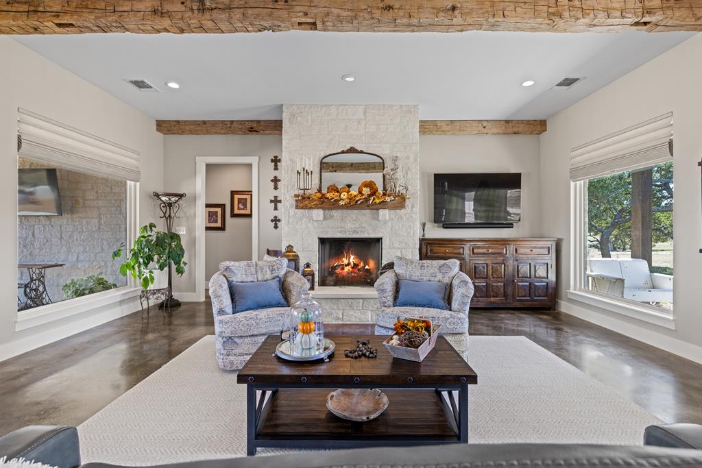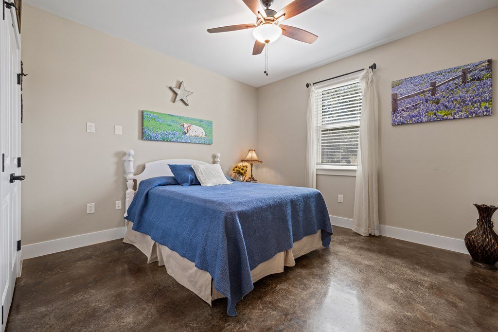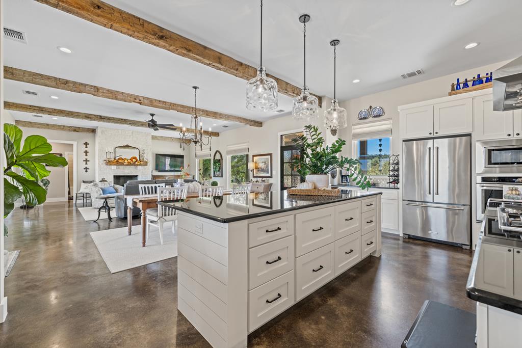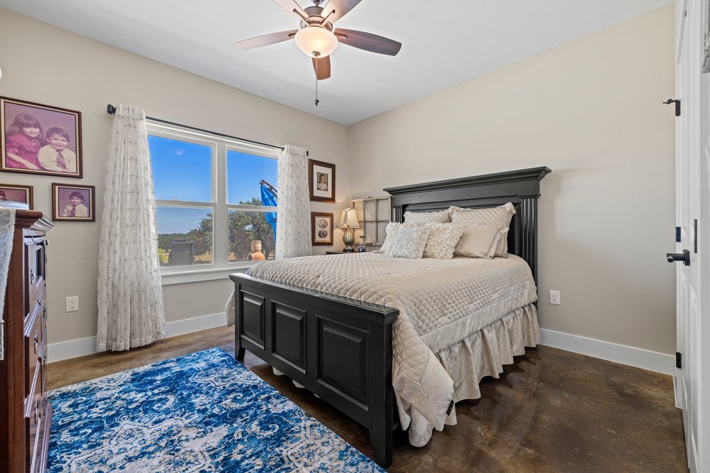 Your dream home awaits in the desirable gated subdivision of Vineyard Ridge! This custom 3 bedroom, 2 bathroom home built by Lemburg House is filled with character and the attention to detail is seen in every part of the home. Upon entering the house, you'll immediately be drawn to the panoramic views seen through the large windows. The kitchen contains floating walnut shelving, farmhouse sink, and large walk in panty. The oversized island is open to the dining and living room. The covered porches are perfect for watching the wildlife while taking in the breathtaking views. The backyard is set up for entertaining with a built-in grill and refrigerator, a mount for a TV, fire pit, and sitting area. The 3.6 acre lot has plenty of room to add a guest house, RV storage, or large barn/workshop. Ag exemption in place gives this property appealing tax reduction!